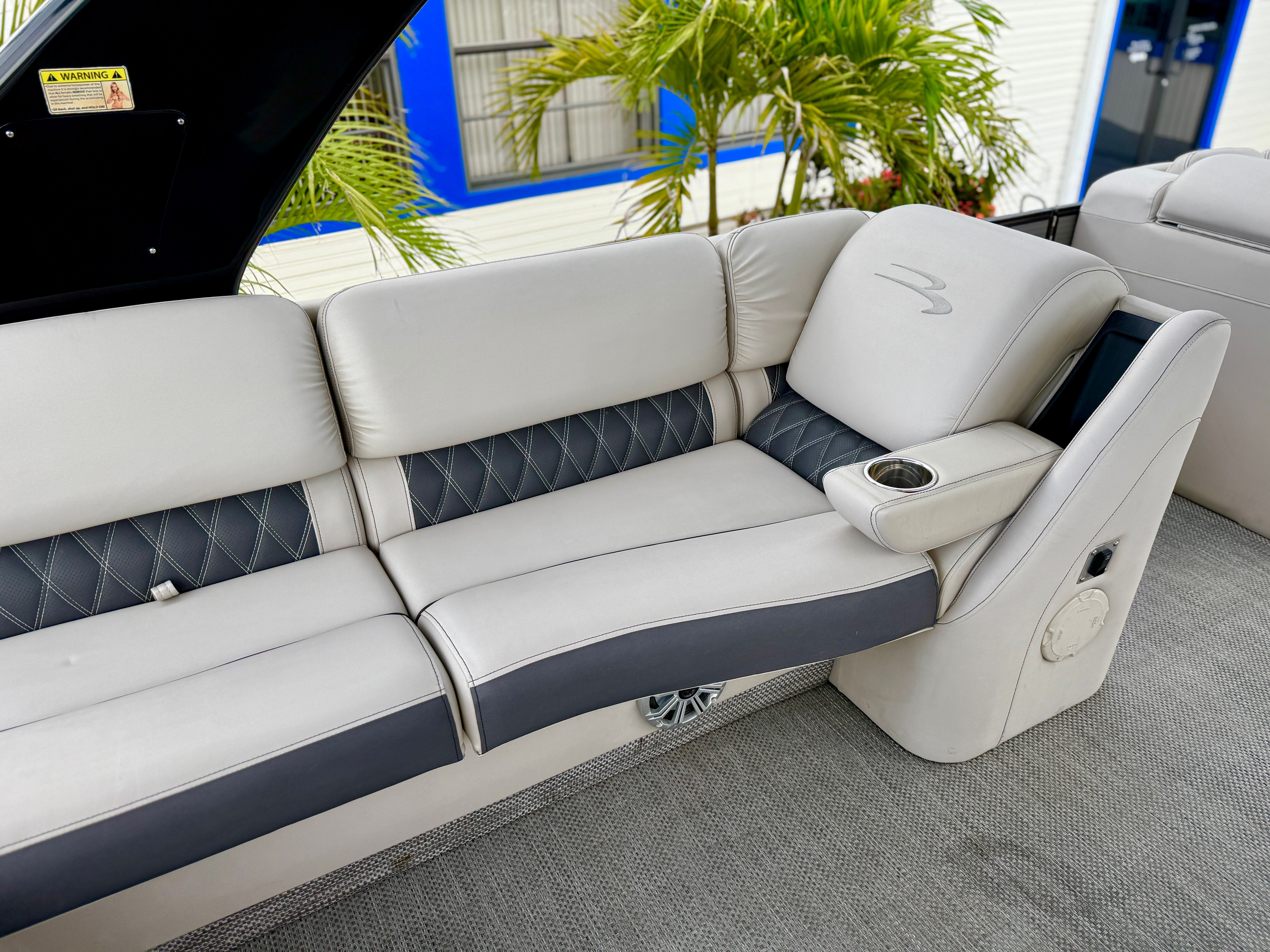 This 2019 Bennington 28 QSRFBX1 3T pontoon boat stands out with its impressive 28-foot length, providing ample space for guests and gear. As a used pontoon boat, it has been meticulously maintained and is in excellent condition, ensuring many more seasons of enjoyment ahead. The sleek and modern design of the Bennington 28 QSRFBX1 3T not only turns heads at the marina but also offers a spacious and inviting layout, perfect for social gatherings, family outings, or simply soaking up the sun in style.