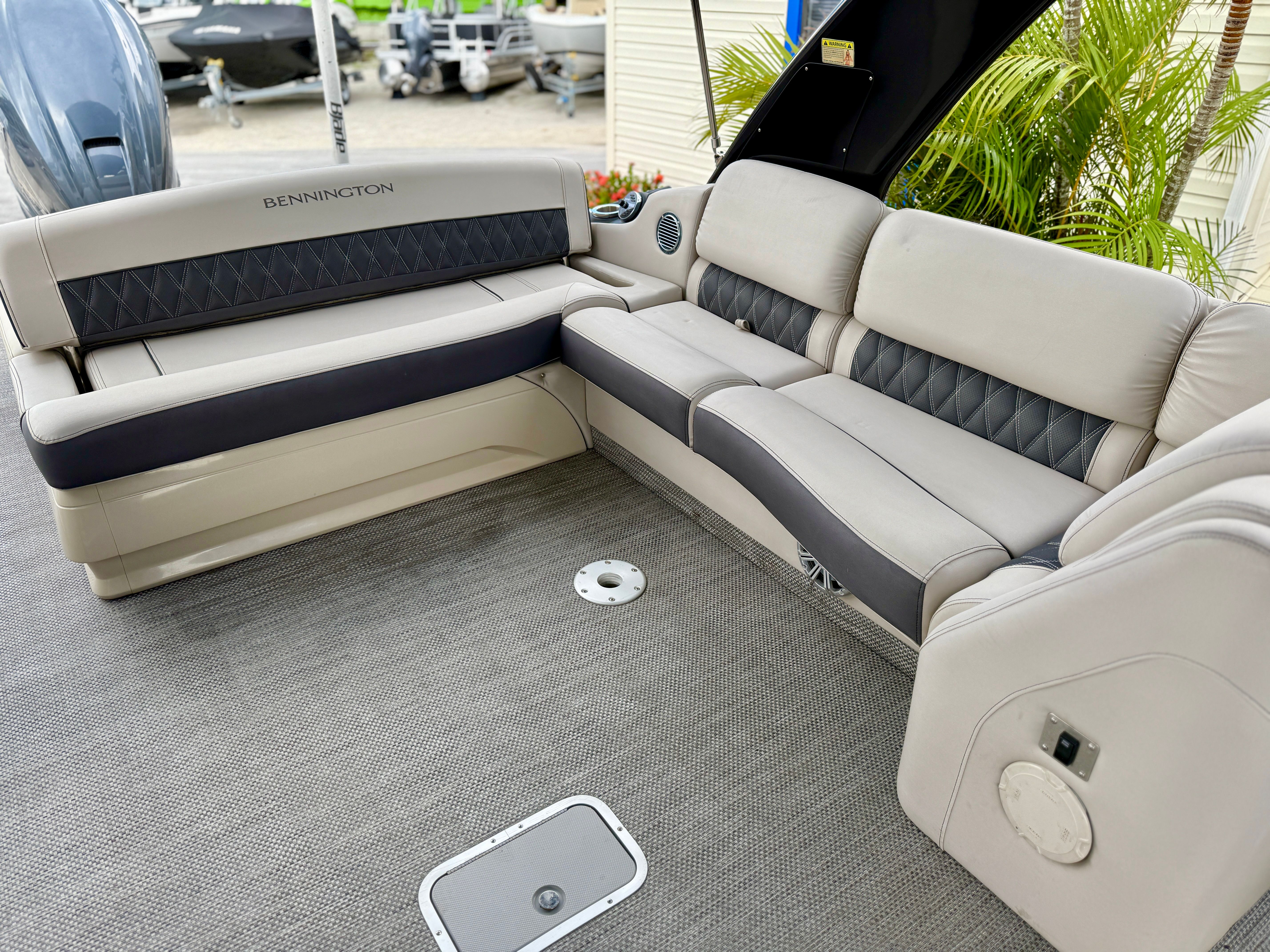 Owning a Bennington 28 QSRFBX1 3T pontoon boat opens up a world of fun and relaxation on the water. The spacious layout and comfortable seating make it perfect for socializing with friends and family, hosting parties, or simply enjoying a peaceful day on the lake. The powerful engine allows for a variety of water activities, from leisurely cruises to thrilling water sports, ensuring that every outing is filled with excitement and adventure.The pontoon’s design emphasizes both comfort and functionality, making it easy to transition from sunbathing to swimming, dining, or entertaining. The stable platform and smooth ride provide peace of mind, allowing everyone on board to relax and enjoy the journey. Whether you are seeking a quiet escape or a lively gathering, this Bennington boat for sale delivers the perfect balance of luxury and performance.