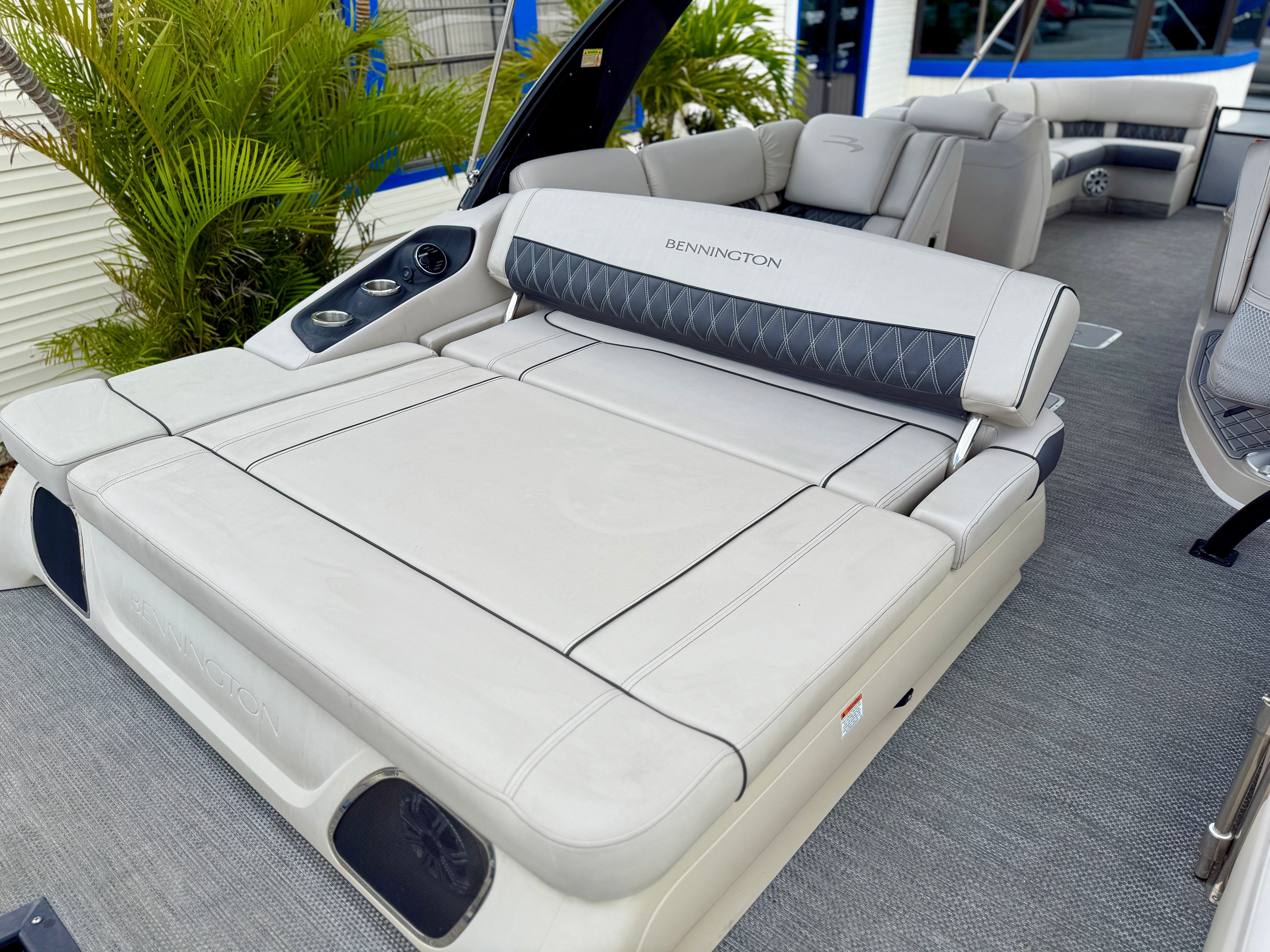 In addition to its recreational benefits, the Bennington 28 QSRFBX1 3T pontoon boat offers a range of practical features that make ownership a breeze. The ample storage compartments provide plenty of space for life jackets, water toys, and other essentials, keeping the deck clutter-free and organized. The boat’s design makes docking and maneuvering simple, even for those new to boating, while the efficient engine ensures you can enjoy longer days on the water without frequent refueling stops.The durable construction and quality materials used in this Bennington pontoon ensure that it can withstand the rigors of regular use, providing years of reliable performance. The easy-to-clean surfaces and low-maintenance design make it simple to keep your boat looking its best, so you can spend more time enjoying the water and less time on upkeep.
