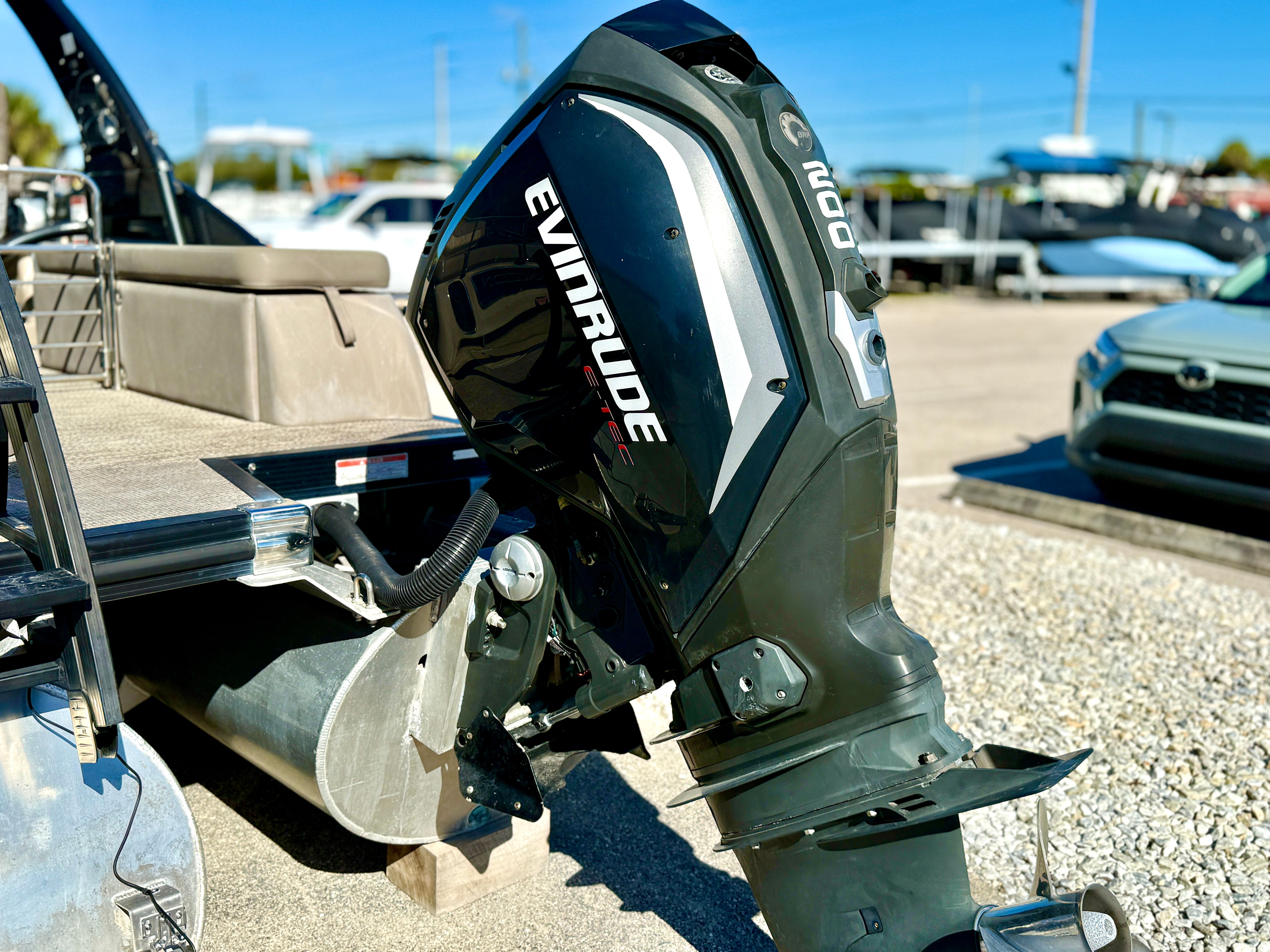 Power and performance are at the heart of the Bennington 28 RSB. Equipped with twin engines delivering a combined 400 horsepower, this pontoon boat is built to thrill. The dual-engine setup provides impressive acceleration, smooth handling, and the confidence to navigate a variety of water conditions. Whether you’re cruising at a leisurely pace or opening up the throttle for an exhilarating ride, the Bennington 28 RSB offers a responsive and enjoyable experience. The robust horsepower ensures you have the power needed for watersports, towing, or simply making a statement on the water.