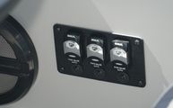 At the helm, the Commander dashboard offers complete control, featuring a large multi-function display, precision toggle switches, digital Yamaha controls, and full instrumentation. A Rockford Fosgate PMX-2 audio system paired with premium Kicker marine speakers fills the boat with crisp sound, whether underway or rafted up.
