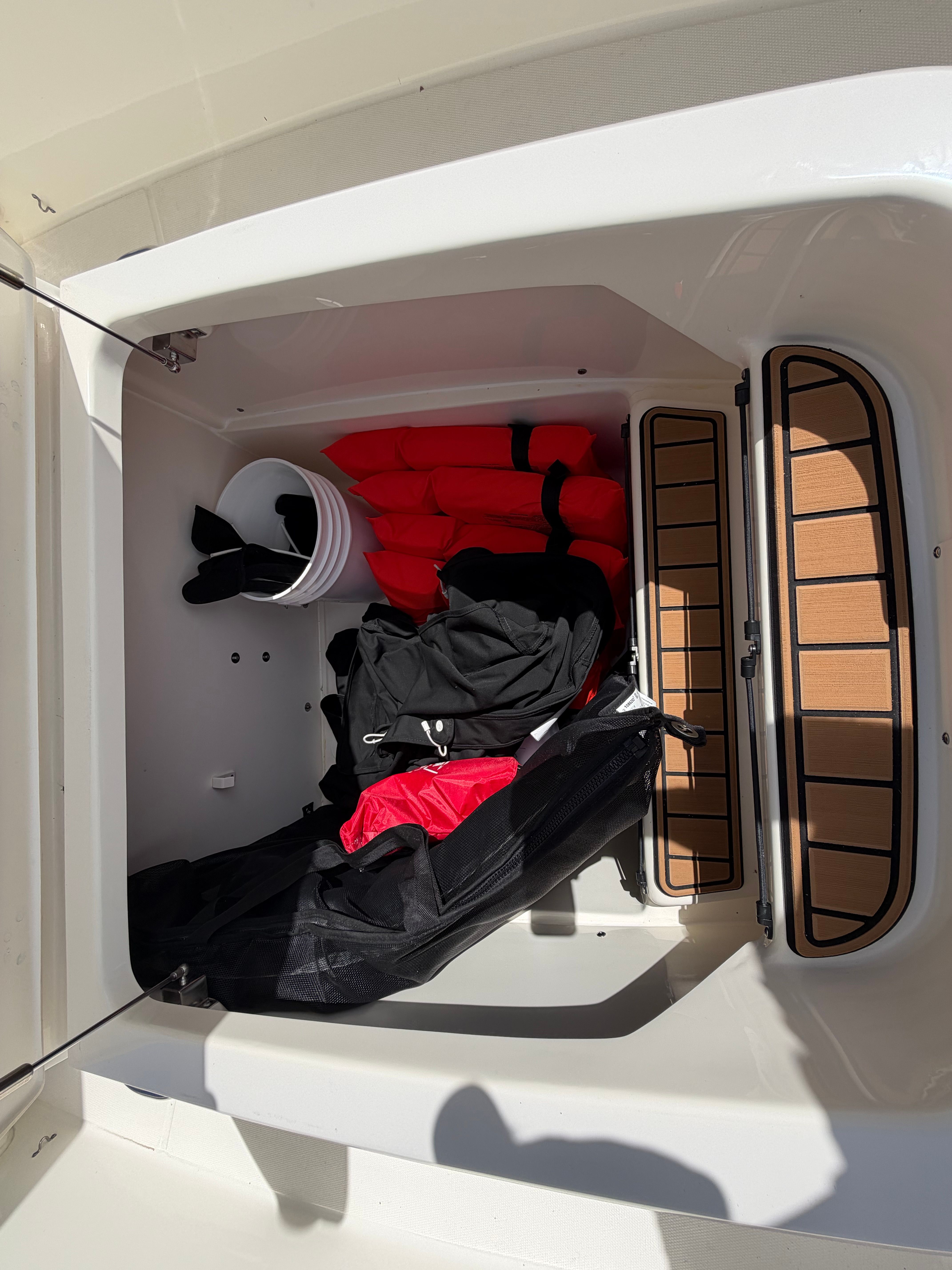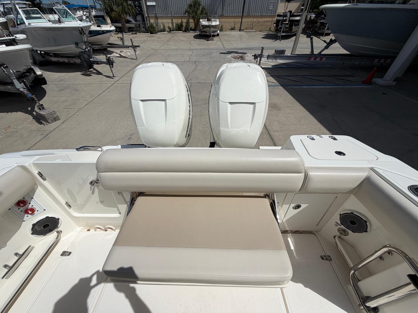 This center console boat for sale is as practical as it is enjoyable. The 28-foot length strikes the perfect balance between spaciousness and ease of handling, making it suitable for both seasoned captains and those new to boating. The dual-engine configuration enhances maneuverability, simplifying docking and close-quarters navigation. Ample storage throughout the boat ensures that all your gear, from fishing tackle to water toys, is organized and within reach. The efficient design also contributes to better fuel economy, allowing for longer days on the water without frequent stops at the fuel dock.