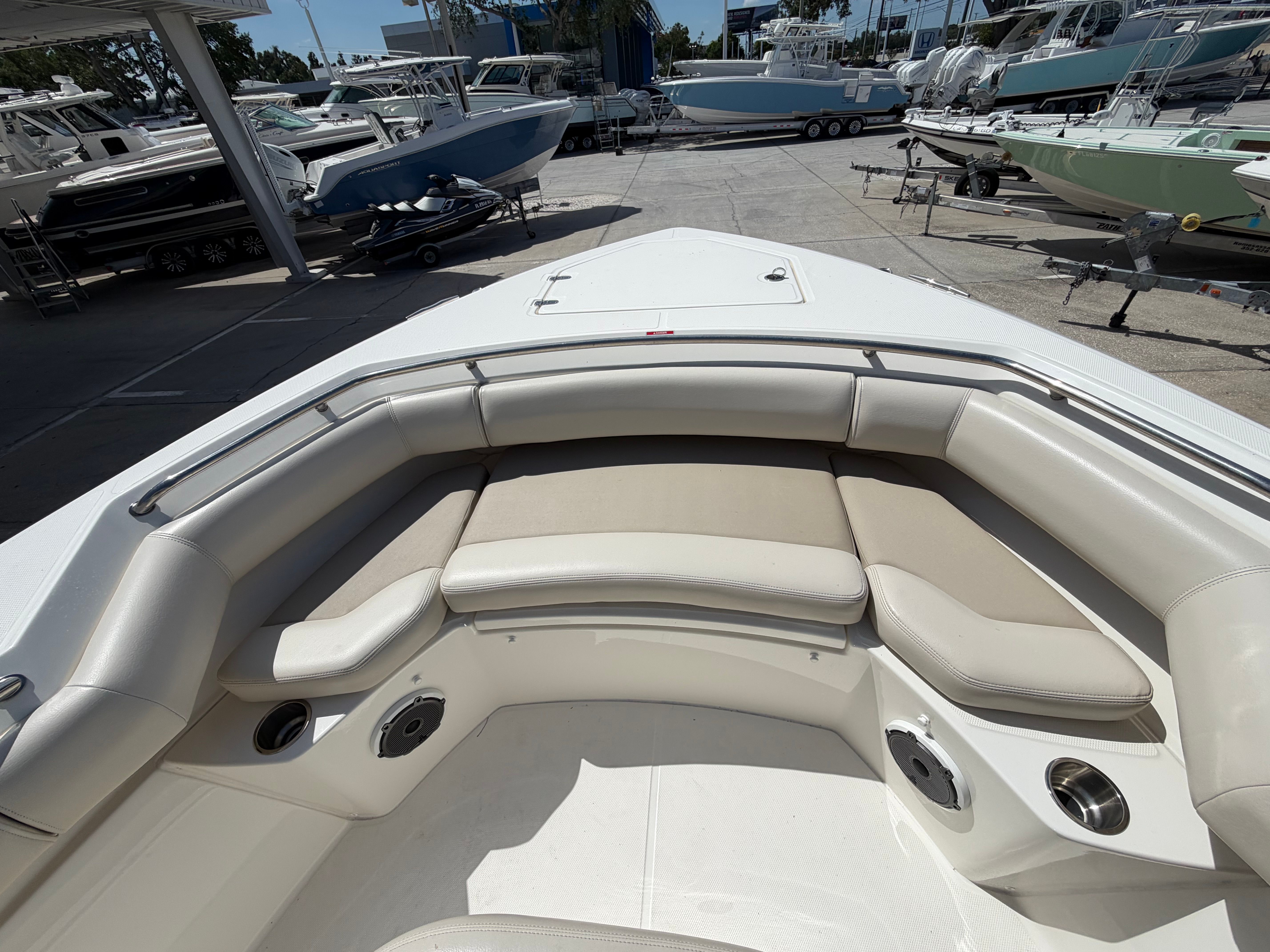 The 2022 Boston Whaler 280 Outrage is a used center console boat that measures 28 feet in length, offering ample space for both relaxation and adventure. With only 117 engine hours, this vessel is in excellent condition, providing peace of mind and lasting value for its next owner. The 280 Outrage is celebrated for its robust construction, sleek lines, and thoughtful layout, making it a standout option among center console boats for sale. Its reputation for durability and performance ensures that every journey is as safe as it is exhilarating.