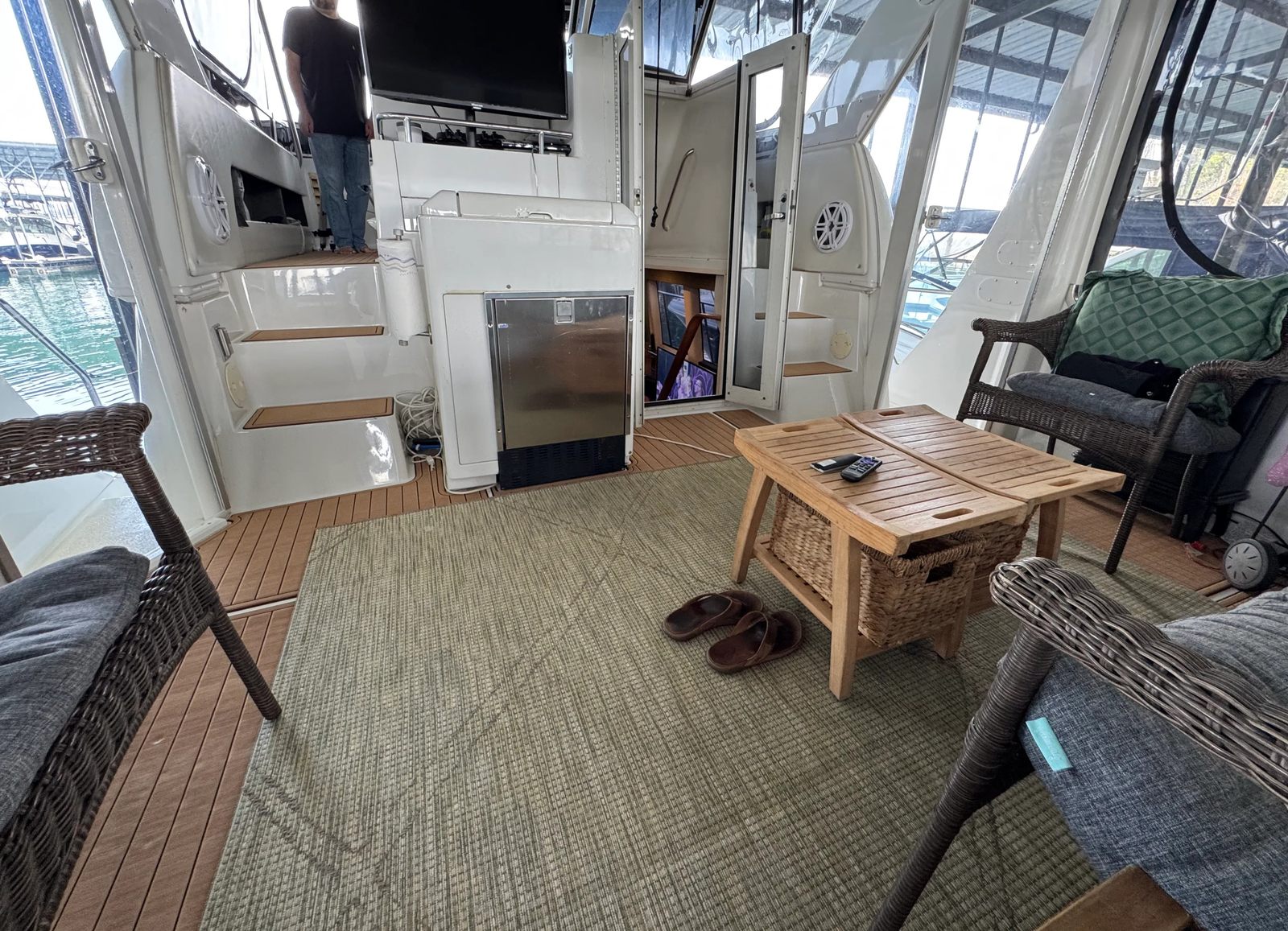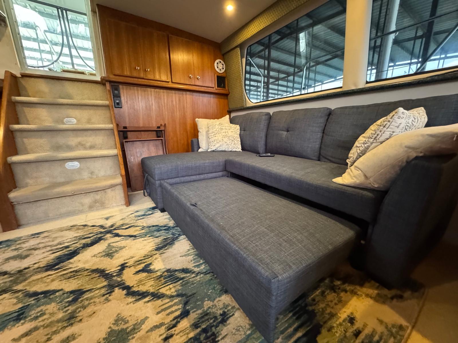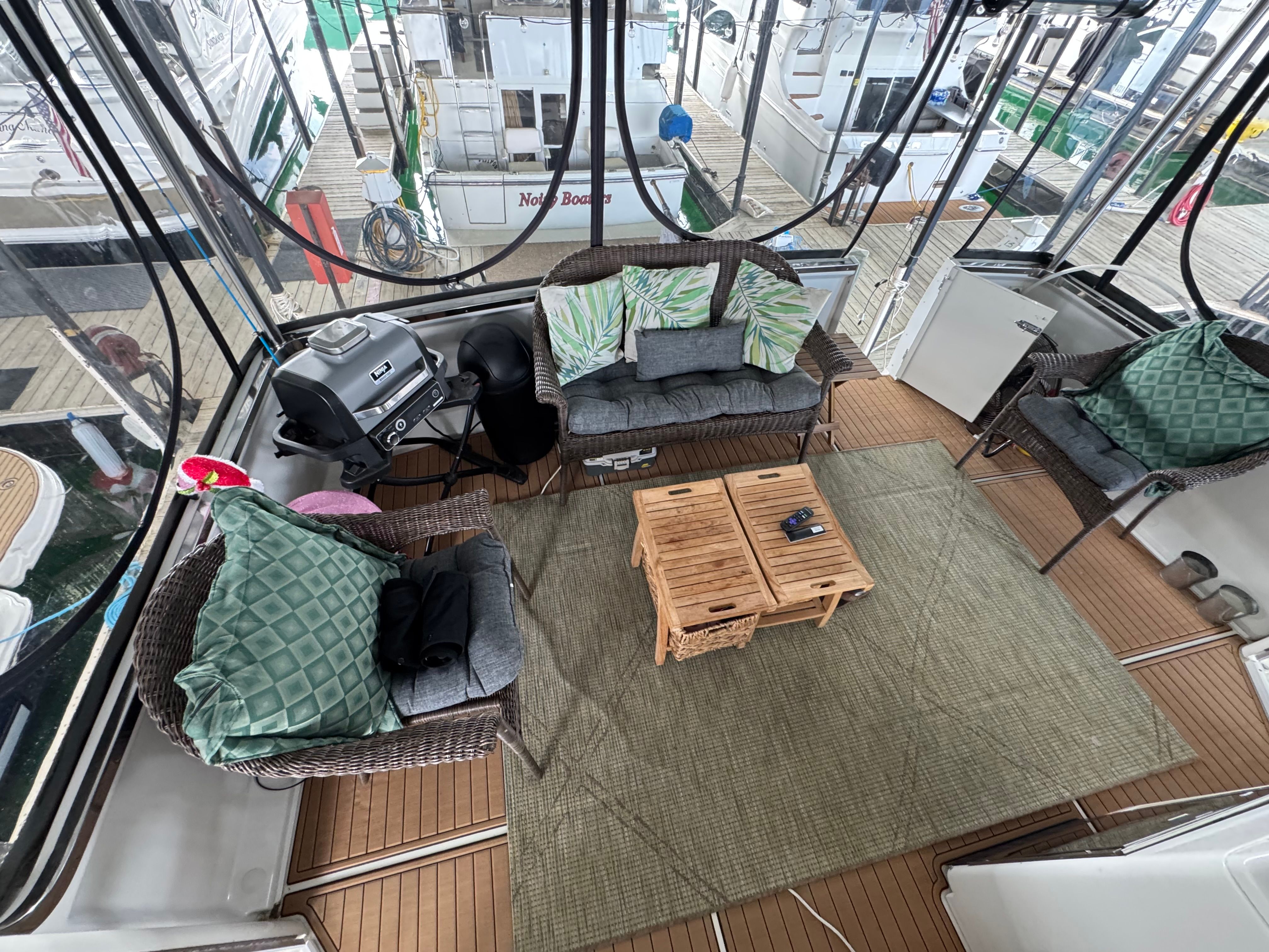✅ Expansive flybridge with seating & helm