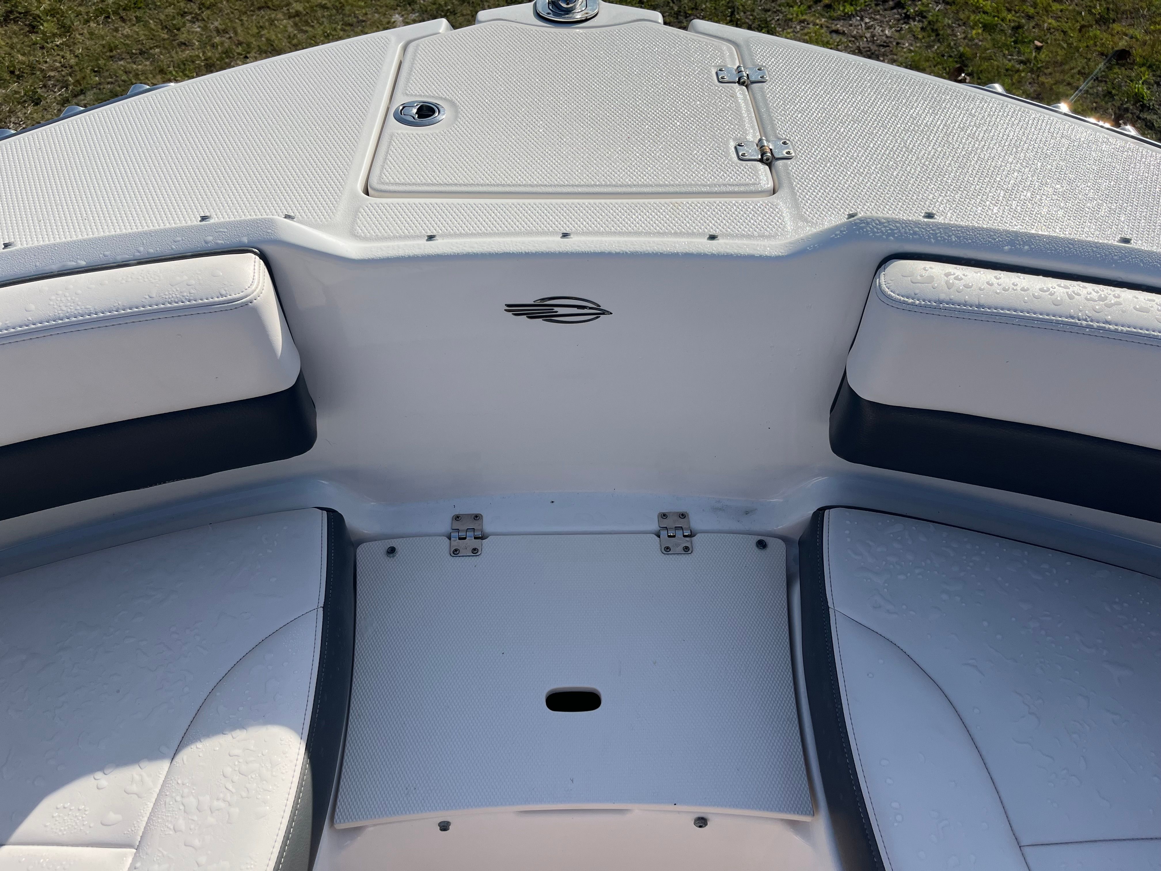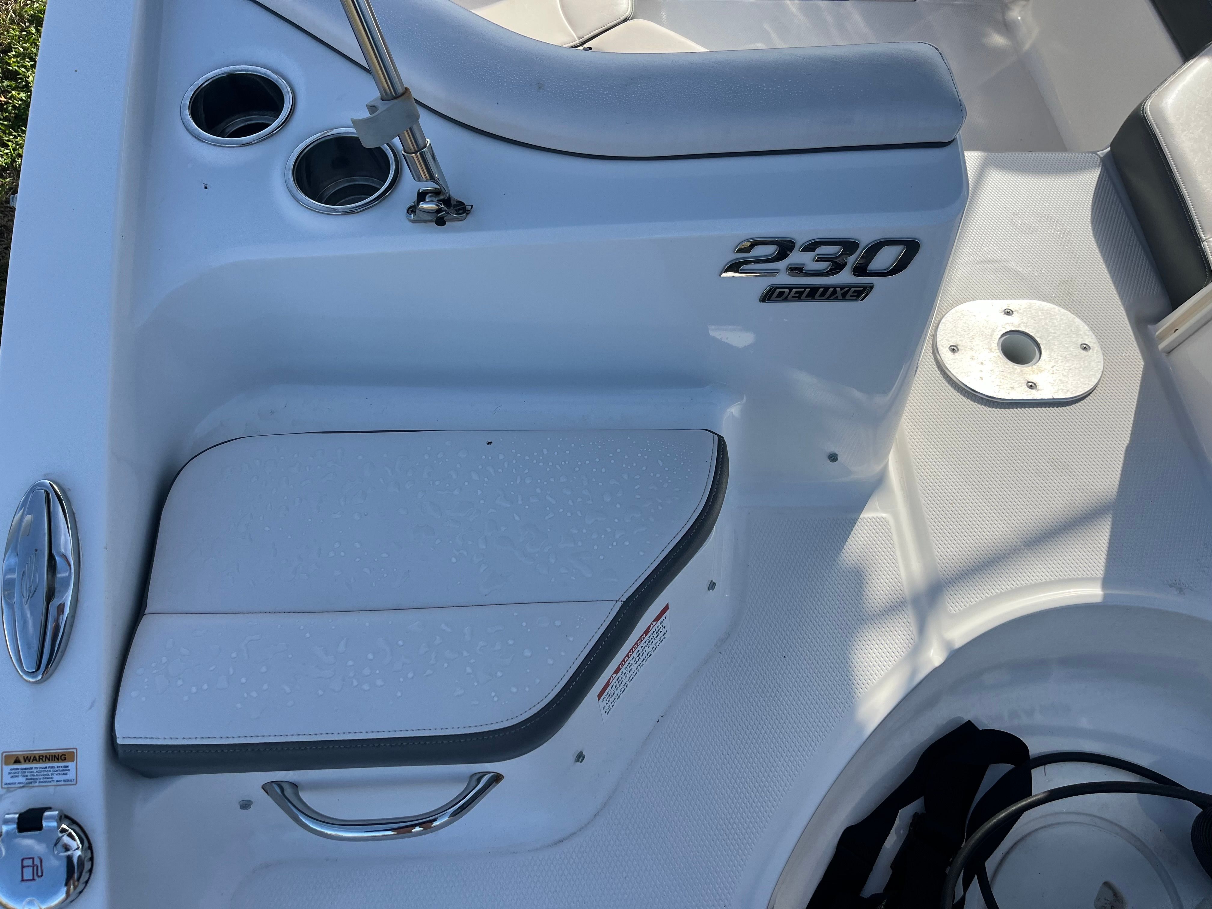 The Chaparral 230 Deluxe is packed with features that enhance your time on the water. The center console layout maximizes deck space, allowing for easy movement around the boat and providing unobstructed access to all areas. This design is ideal for fishing enthusiasts, as it offers plenty of room for casting and reeling in your catch. The spacious bow area is perfect for relaxing in the sun or socializing with friends, while the well-designed helm puts all controls within easy reach for the captain.This used center console boat also boasts thoughtful storage solutions, ensuring your gear stays organized and out of the way. The 23-foot length provides a stable and comfortable platform, whether you’re anchored in a quiet cove or cruising along the coastline. With its durable construction and high-quality materials, the Chaparral 230 Deluxe is built to withstand the rigors of both saltwater and freshwater environments.