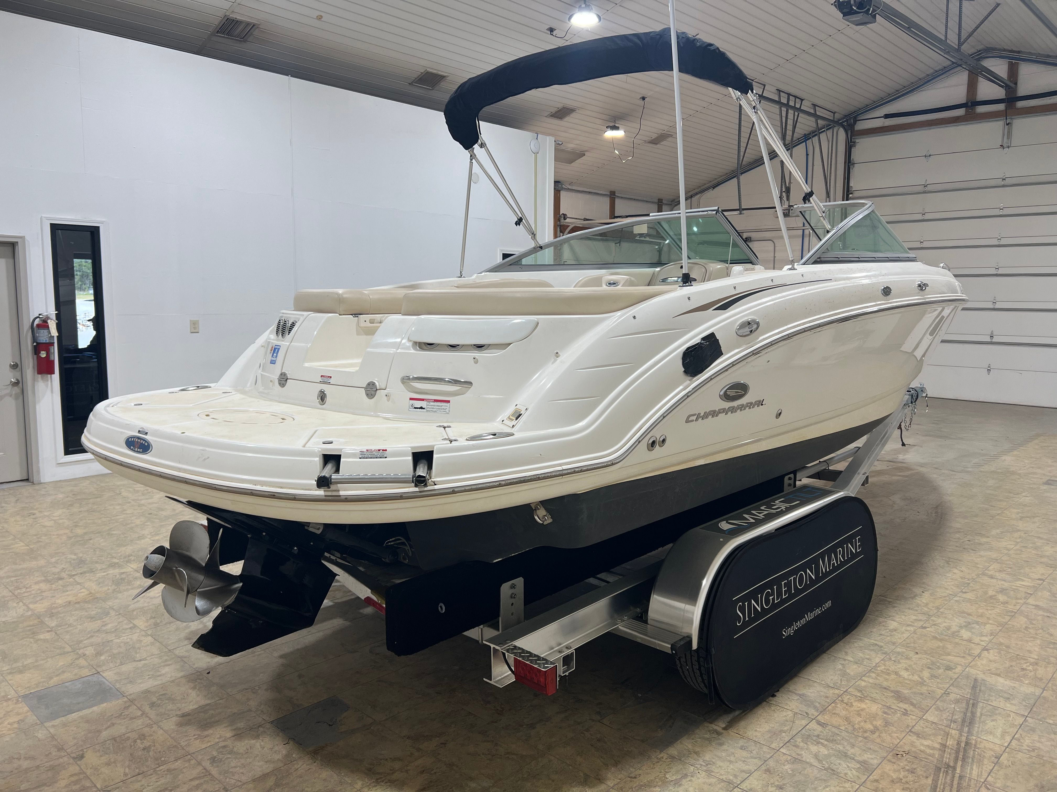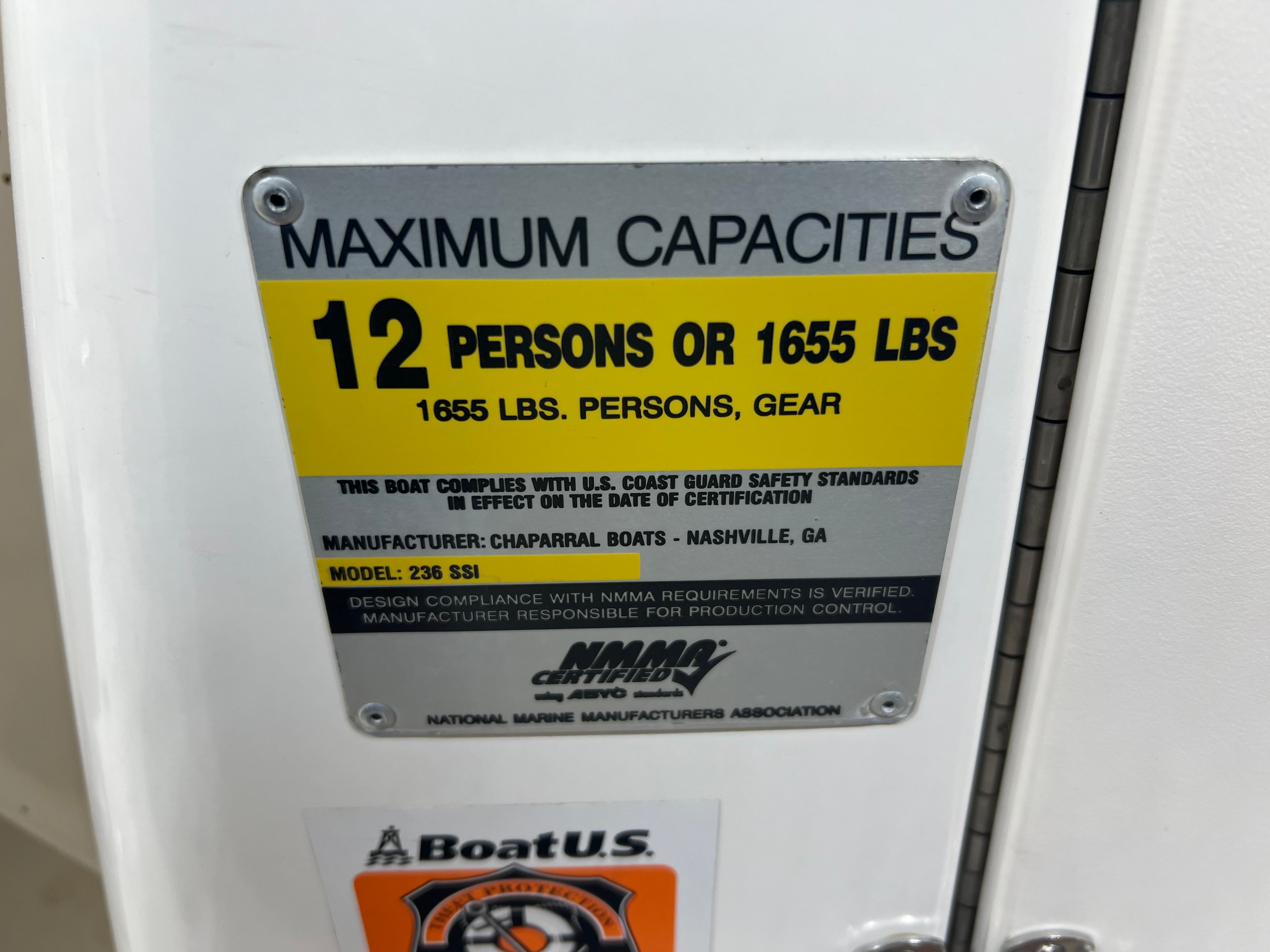 The Chaparral 236 SSI is packed with features that enhance both its functionality and enjoyment. As a 23-foot bowrider, it offers generous seating in both the bow and cockpit areas, allowing guests to spread out and enjoy the ride. The open bow design is perfect for sunbathing or taking in the views, while the wraparound seating in the cockpit provides a comfortable space for conversation and relaxation. The helm is thoughtfully laid out, with intuitive controls and clear instrumentation that make navigation a breeze.This used Chaparral boat for sale is built with quality materials and attention to detail, ensuring durability and a premium feel throughout. The hull design is optimized for stability and efficiency, delivering a smooth ride even in choppier waters. Storage compartments are strategically placed to keep your gear organized and out of the way, so you can make the most of your time on the water.