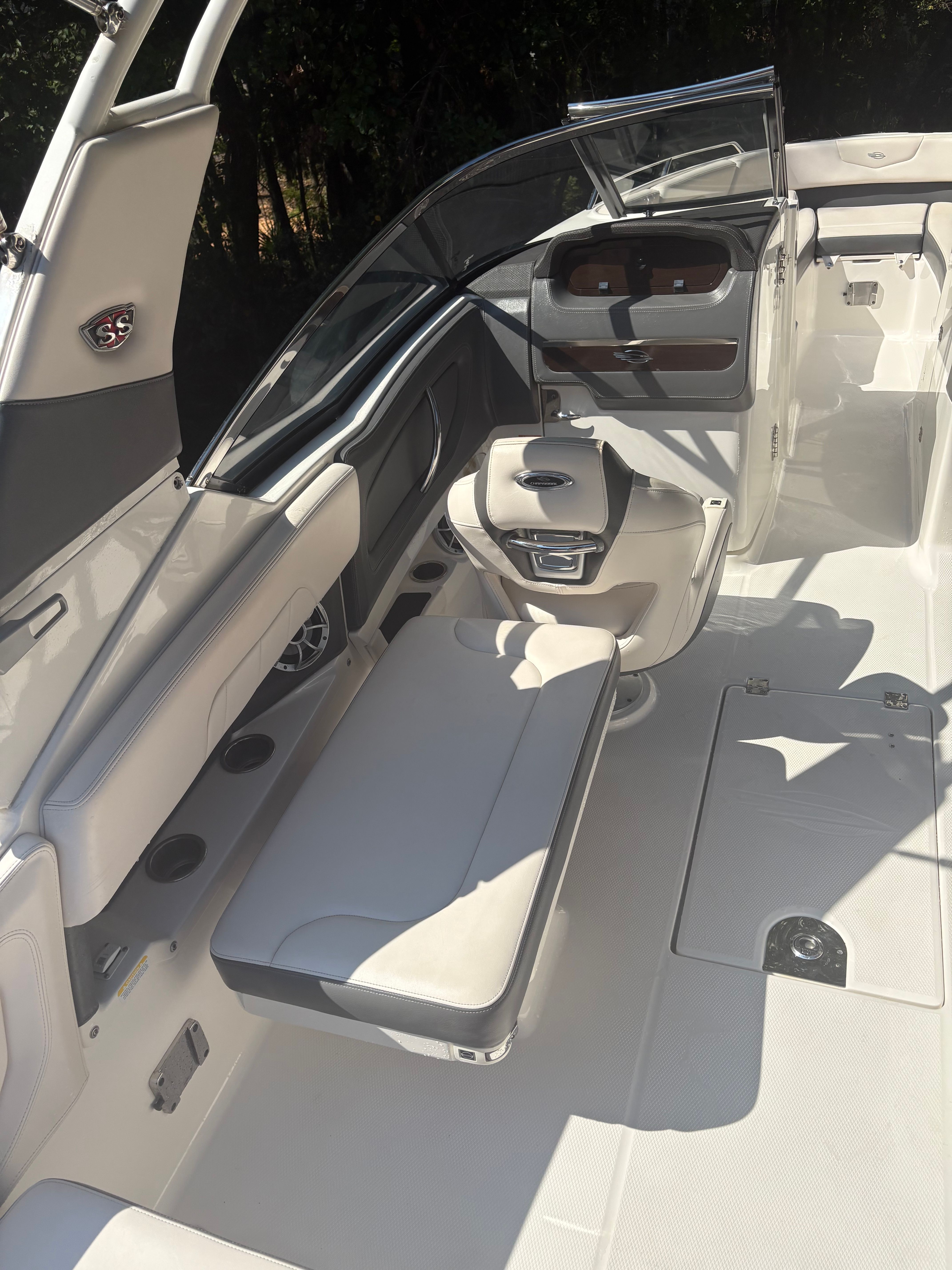 Under the hood, the 2017 Chaparral 257 is powered by a robust single engine delivering an exhilarating 350 horsepower. This powerful setup ensures that you have all the muscle you need for thrilling rides, quick acceleration, and smooth cruising across lakes, rivers, or coastal waters. The Chaparral 257’s engine is engineered for reliability and efficiency, making it a top choice for boaters who value both performance and peace of mind. Whether you’re towing water skiers, racing across open water, or simply enjoying a leisurely cruise, this bowrider boat for sale offers the kind of responsive handling and impressive speed that Chaparral is known for.