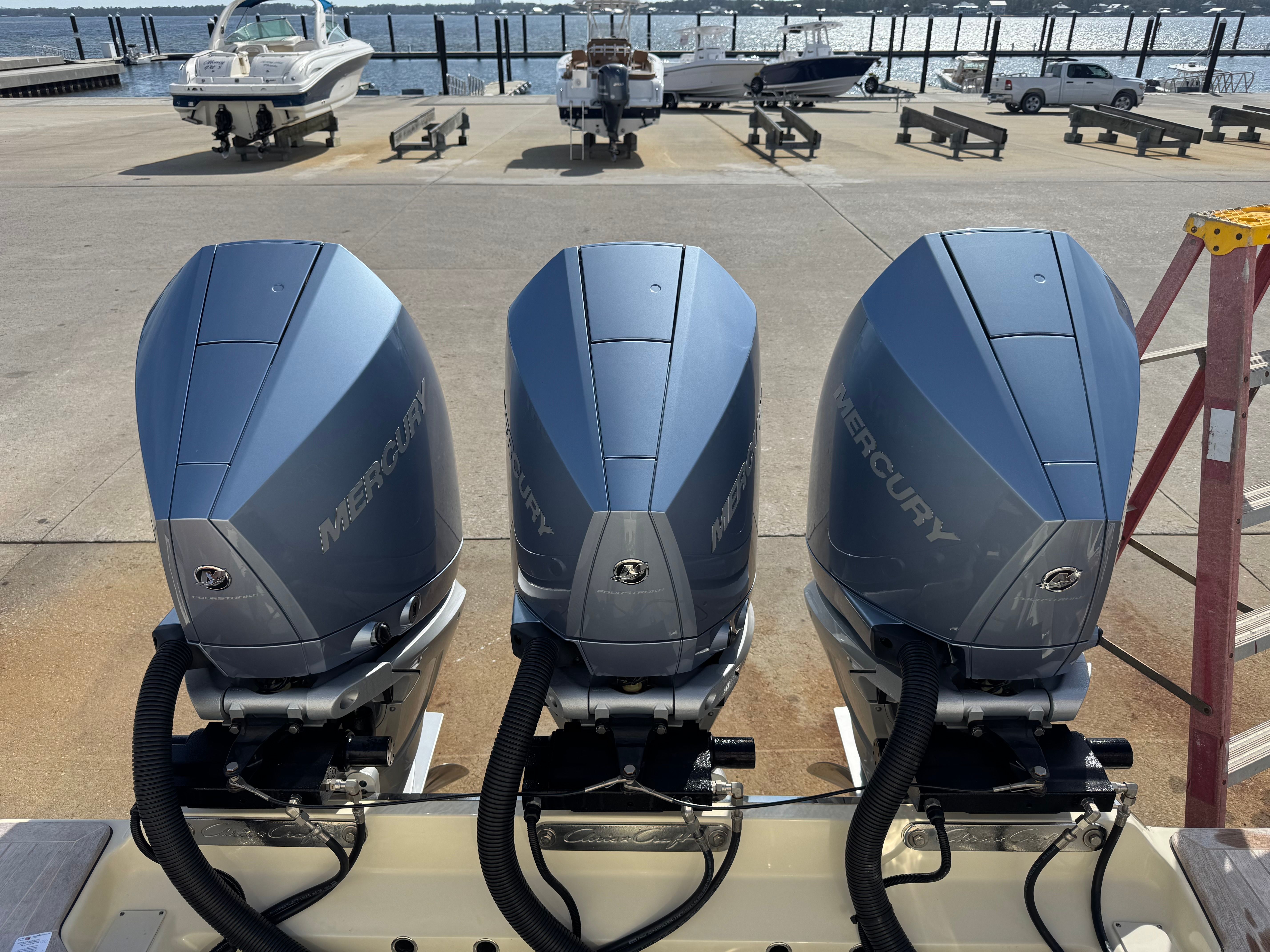 Power and precision define the performance of the Chris-Craft Catalina 34. Equipped with three high-performance engines delivering a combined 900 horsepower, this center console boat is engineered for exhilarating speed, smooth handling, and reliable offshore capability. The triple-engine setup ensures rapid acceleration, impressive top-end speed, and the confidence to tackle a variety of water conditions. With only 62 engine hours, these engines are barely broken in, promising many seasons of reliable enjoyment ahead. Whether you are cruising along the coastline, heading out for a day of fishing, or making a quick run to your favorite waterfront destination, the Catalina 34 delivers a responsive and thrilling ride every time.