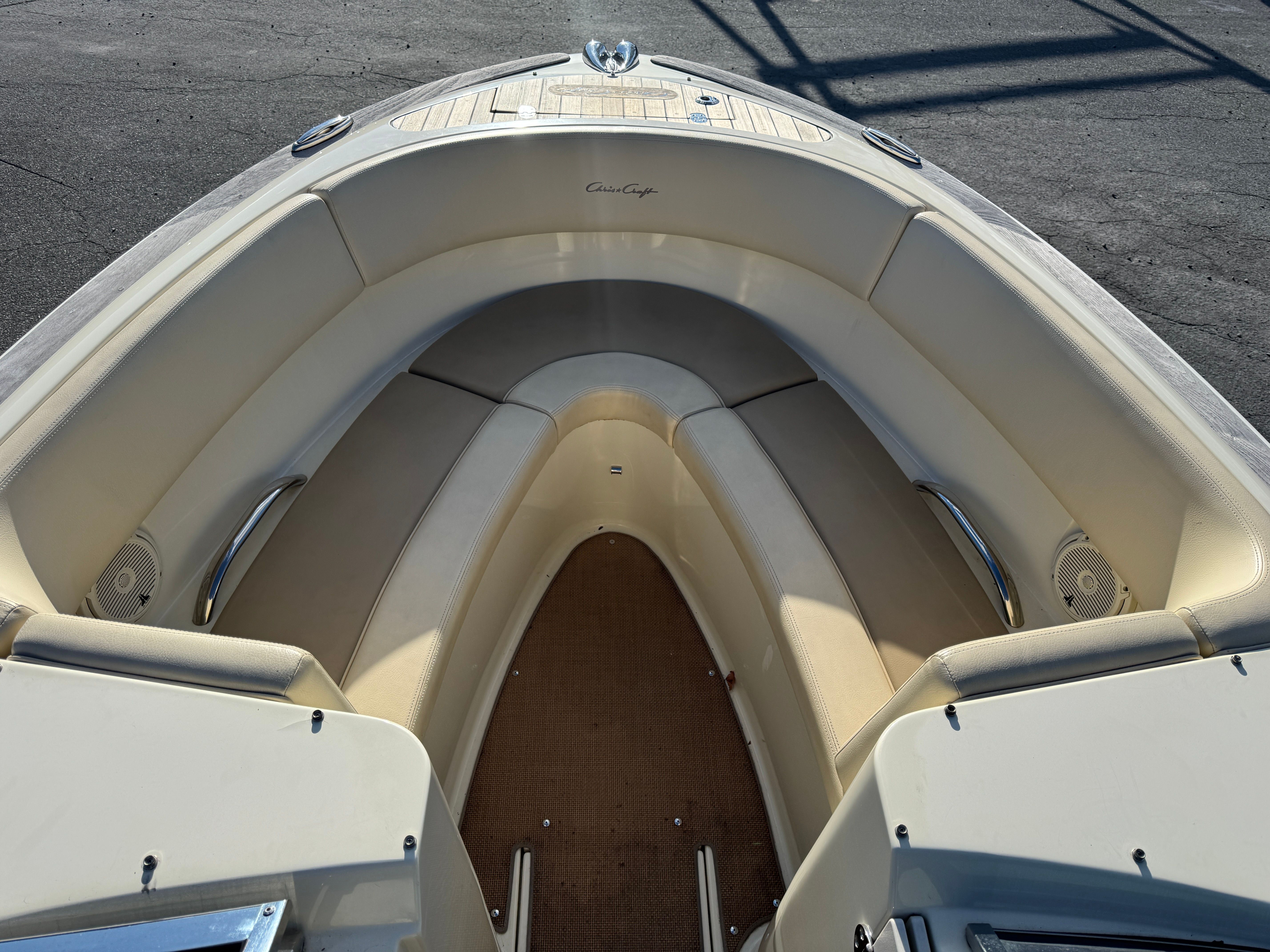 The versatility of the Chris-Craft 25 Launch makes it an excellent choice for a wide range of activities. It is perfect for family outings, offering a safe and comfortable environment for children and adults alike. The spacious bow and cockpit areas are ideal for socializing, making this bowrider a great platform for hosting friends or celebrating special occasions. For those who love water sports, the powerful engine provides plenty of thrust for tubing, wakeboarding, or skiing. The boat’s elegant design and luxurious touches also make it a standout choice for romantic sunset cruises or leisurely days exploring new waterways. Whether you are seeking adventure, relaxation, or a bit of both, the 25 Launch adapts effortlessly to your needs.