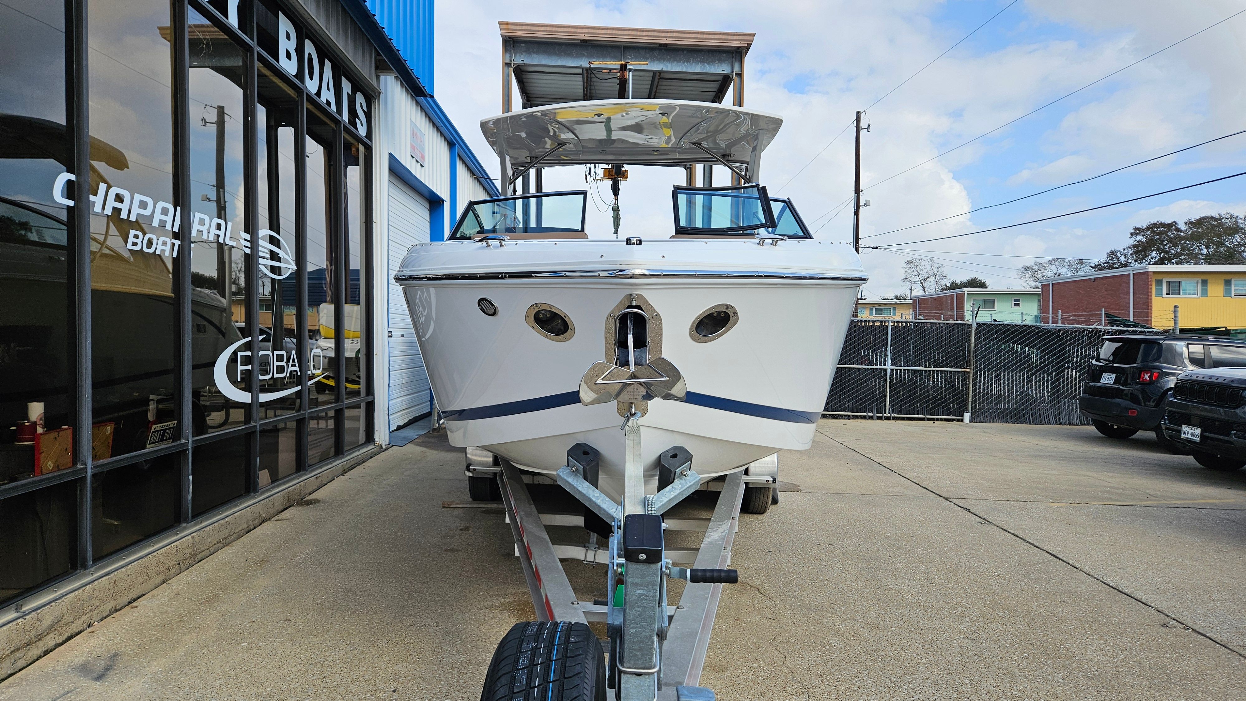 This Bowrider boat for sale is packed with premium features designed to enhance your boating experience. The hard top offers protection from the sun and elements, allowing you to enjoy your time on the water in comfort regardless of the weather. The windlass anchor system makes anchoring effortless, so you can quickly secure your boat and start enjoying your favorite spot. The aluminum triple axle trailer ensures easy transport and storage, giving you the flexibility to explore new waterways or conveniently store your boat when not in use. Snap-in carpet adds a touch of luxury and comfort underfoot, while JL Audio provides high-quality sound for your favorite tunes, creating the perfect atmosphere for any outing.