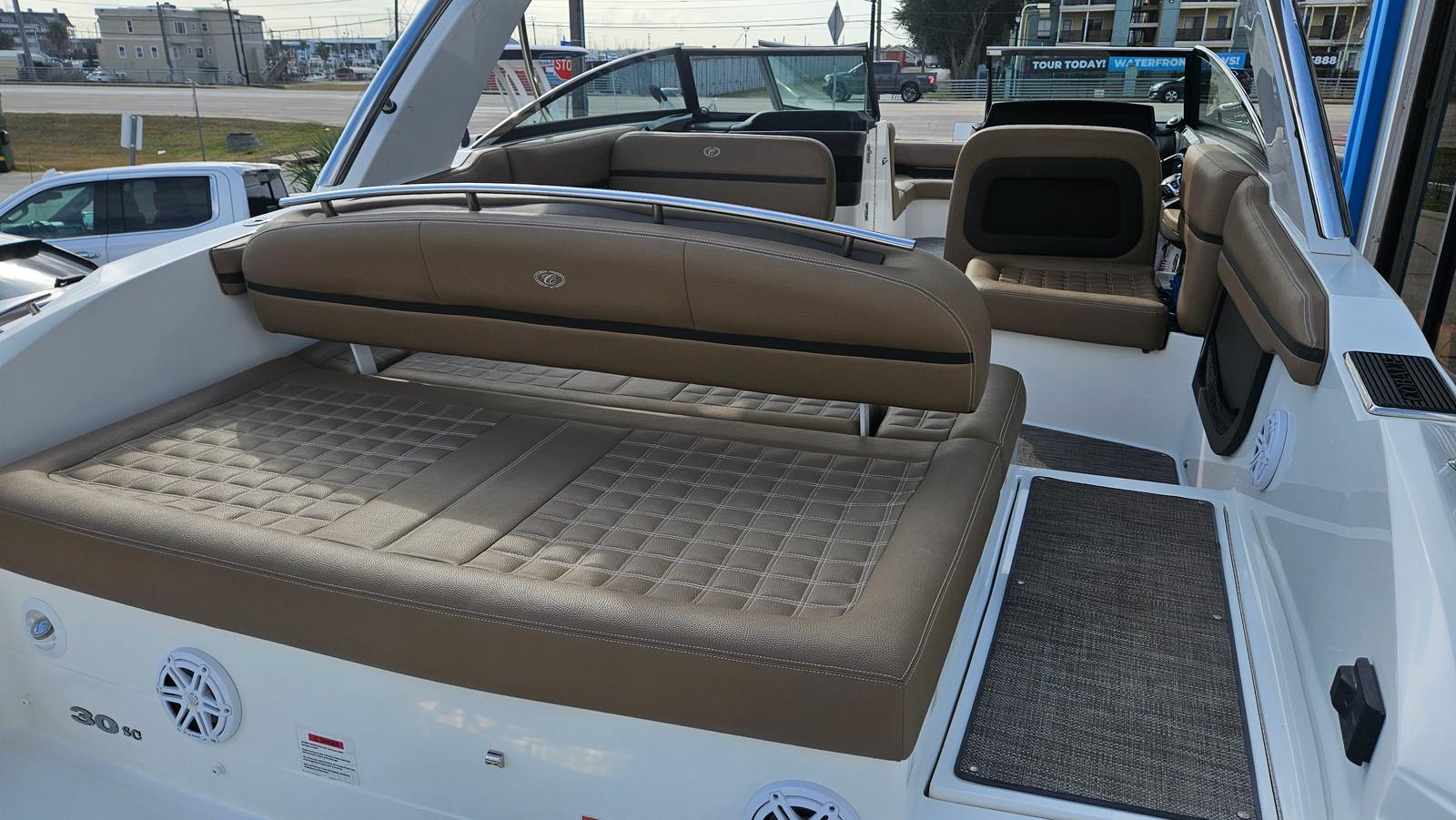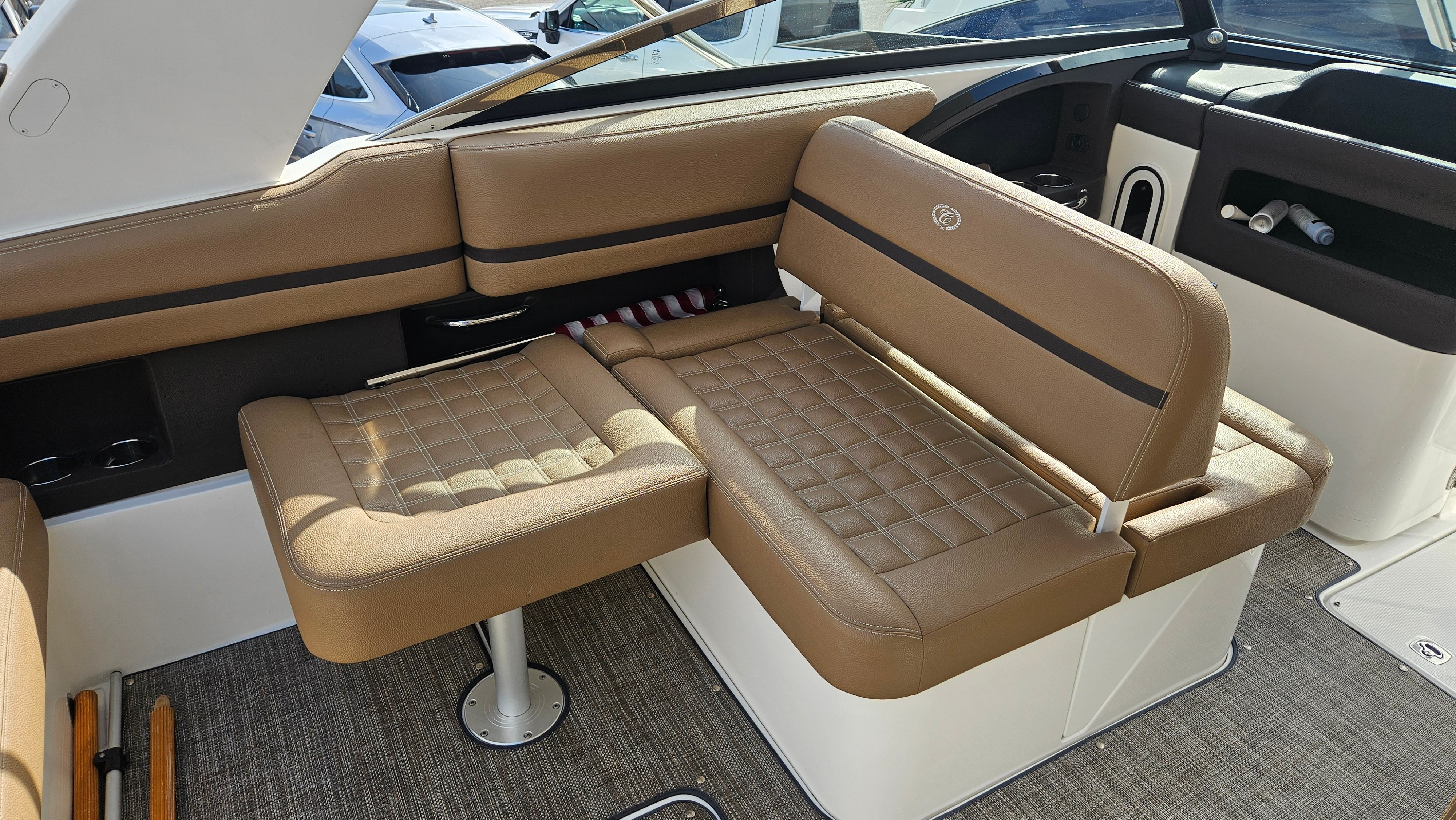 Powering the Cobalt 30 SC are twin Yamaha F300 engines, delivering a combined 600 horsepower for exhilarating performance. These engines are engineered for smooth acceleration, responsive handling, and impressive speed, making every ride a thrill. Whether you’re cruising along the coastline or heading out for a day of water sports, the Cobalt 30 SC’s powerful twin engines ensure you have the muscle to get where you want to go quickly and efficiently. The dual-engine setup also provides added reliability and maneuverability, making docking and navigating tight spaces easier and safer.
