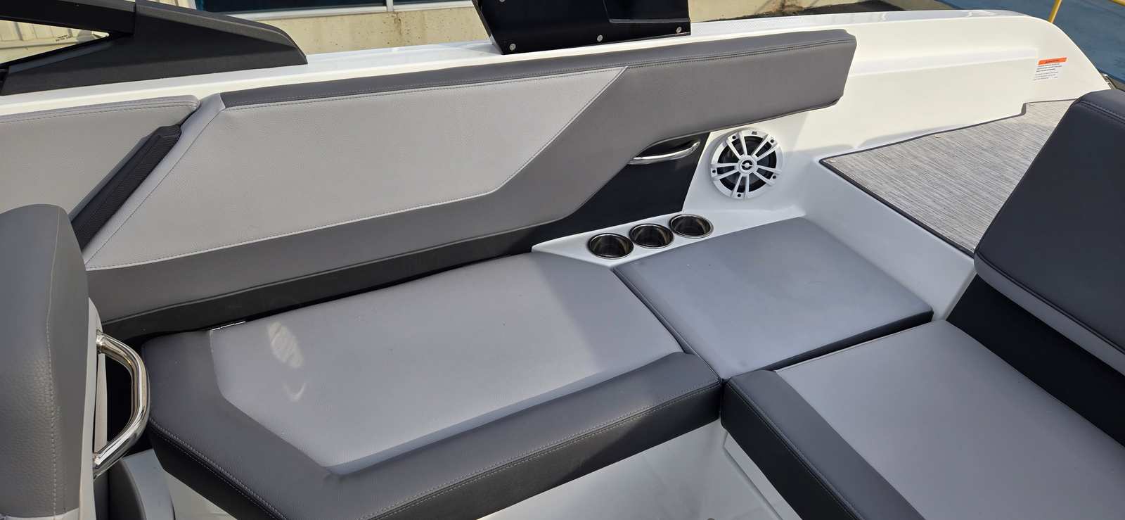 Owning a Cobalt CS23 Bowrider means embracing a lifestyle of fun, relaxation, and adventure. The spacious layout and plush seating invite you to unwind with friends and family, while the innovative features ensure every outing is effortless and enjoyable. The aft-facing rumble seat is perfect for lounging at anchor or watching swimmers and water sports enthusiasts in action. The swim platform with flip-down step makes water access safe and easy for all ages, encouraging everyone to dive in and make the most of sunny days.The folding tower and Bimini provide flexible shade options, so you can stay cool during midday heat or enjoy unobstructed views when the sun sets. With the wireless phone charger/holder, you can capture and share every moment without worrying about battery life. The CS23’s thoughtful design ensures that every trip is comfortable, convenient, and filled with possibilities.