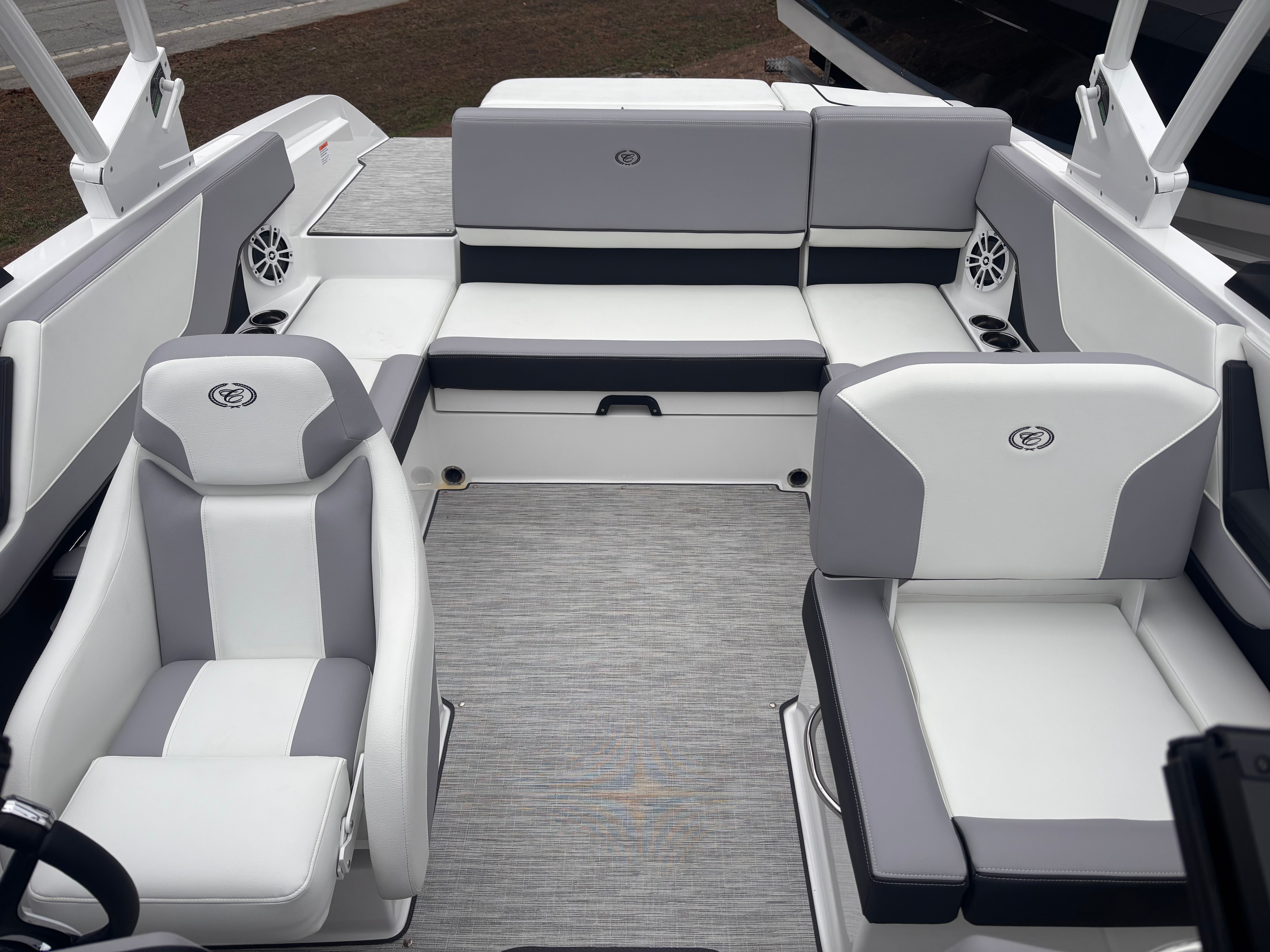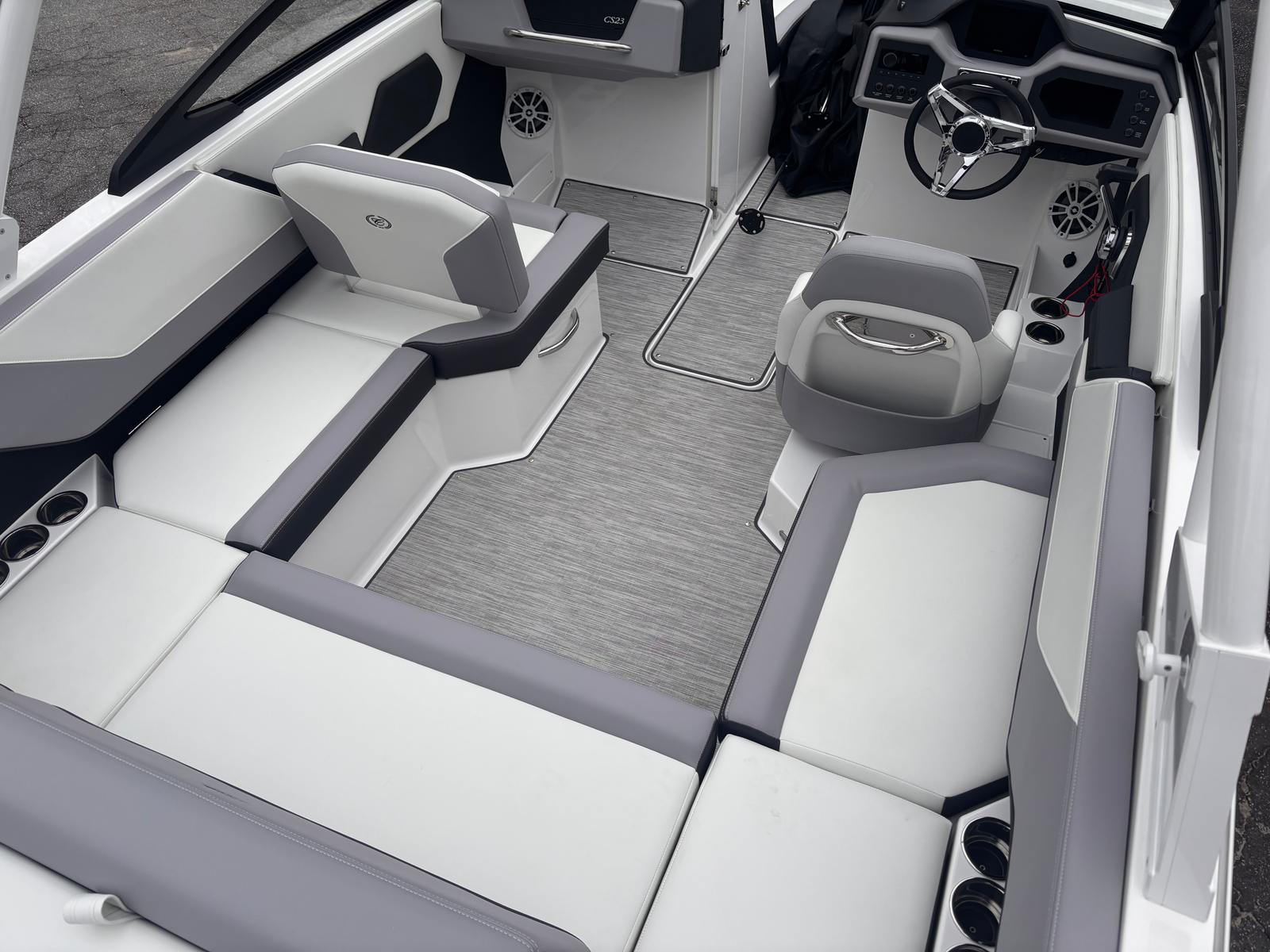 Practicality is at the core of the Cobalt CS23’s design. The included fender clips with line make docking and undocking a breeze, reducing stress and protecting your boat from bumps and scrapes. The mooring cover with arch keeps your boat clean and ready for your next adventure, while the durable seagrass floor covering is easy to clean and stands up to heavy use.The compact yet spacious design of this 23.42-foot bowrider makes it easy to maneuver and dock, even in tighter spaces. The efficient Volvo V6 engine helps you make the most of every gallon of fuel, so you can spend more time enjoying the water and less time at the pump. With its combination of style, performance, and user-friendly features, the Cobalt CS23 is a smart choice for both new and experienced boaters.