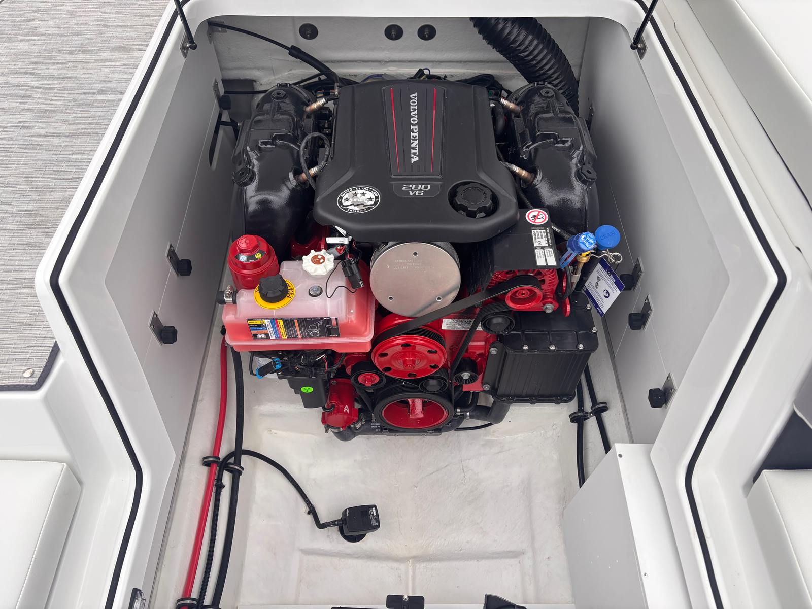 At the heart of the Cobalt CS23 is a powerful Volvo V6 280C DP engine, delivering a robust 280 horsepower. This single-engine setup ensures smooth, responsive handling and exhilarating acceleration, making every outing a thrill. Whether you are cruising across the lake, towing water toys, or simply enjoying a leisurely ride, the CS23’s performance is both reliable and exciting. The advanced engineering behind the Volvo V6 280C DP means you can expect efficient fuel consumption and a quiet, comfortable ride, enhancing your time on the water.