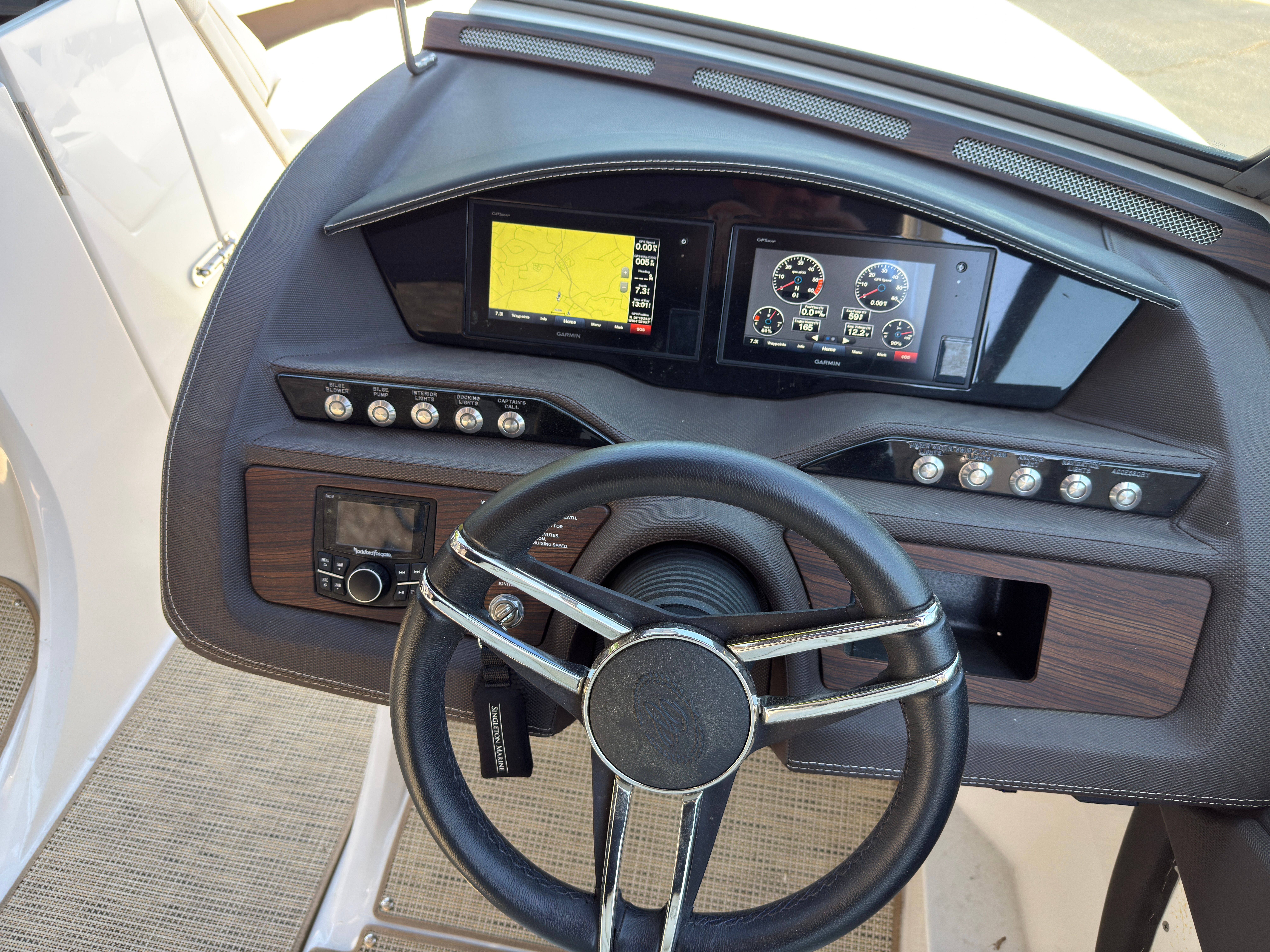Under the hood, the Cobalt R3 is powered by a single engine delivering an impressive 350 horsepower. This robust powerplant ensures exhilarating acceleration, smooth cruising, and responsive handling, whether you’re slicing through open water or navigating busy marinas. The single-engine configuration not only simplifies maintenance but also enhances fuel efficiency, allowing you to spend more time enjoying the water and less time at the pump. With its agile hull design and powerful engine, this bowrider boat for sale is built for those who love the thrill of boating without compromising on reliability or ease of use.