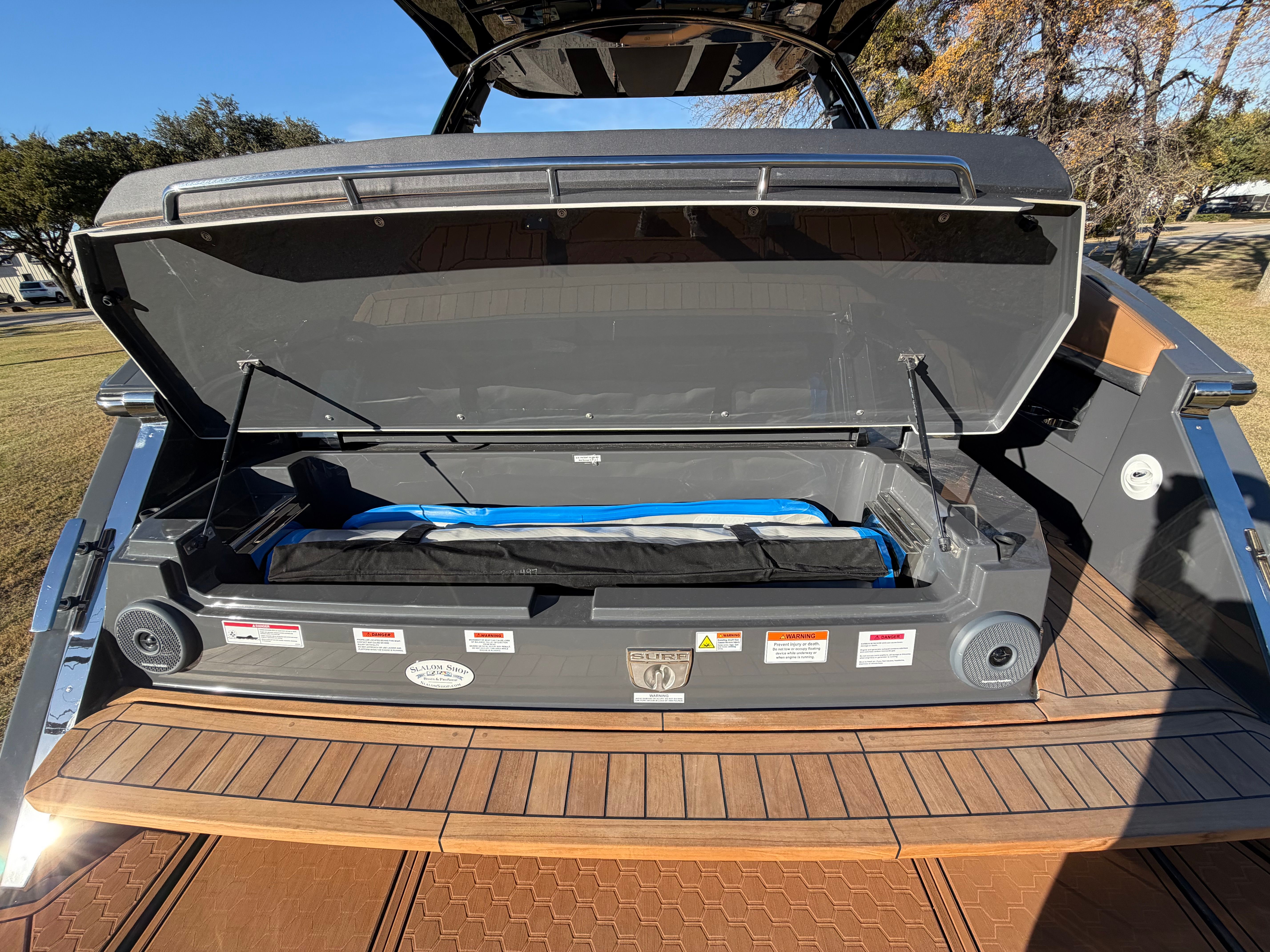 Owning the Cobalt R33 Surf Bowrider means embracing a lifestyle of fun, freedom, and connection. The spacious deck and thoughtfully designed seating arrangements make it easy to host gatherings, celebrate special occasions, or simply unwind with loved ones. The advanced surf capabilities open up a world of watersports, allowing you to create perfect waves for surfing, boarding, or tubing. With its luxurious interior and high-end finishes, every moment aboard the R33 Surf feels like a retreat, blending comfort and excitement in equal measure.The boat’s innovative features, such as the hard top arch and electric awning, ensure that you can enjoy your time on the water regardless of the weather. The battery maintainer/charger adds peace of mind, keeping your systems ready for spontaneous adventures. The boarding door and bow shade sail enhance accessibility and comfort, making the R33 Surf a welcoming space for guests of all ages.