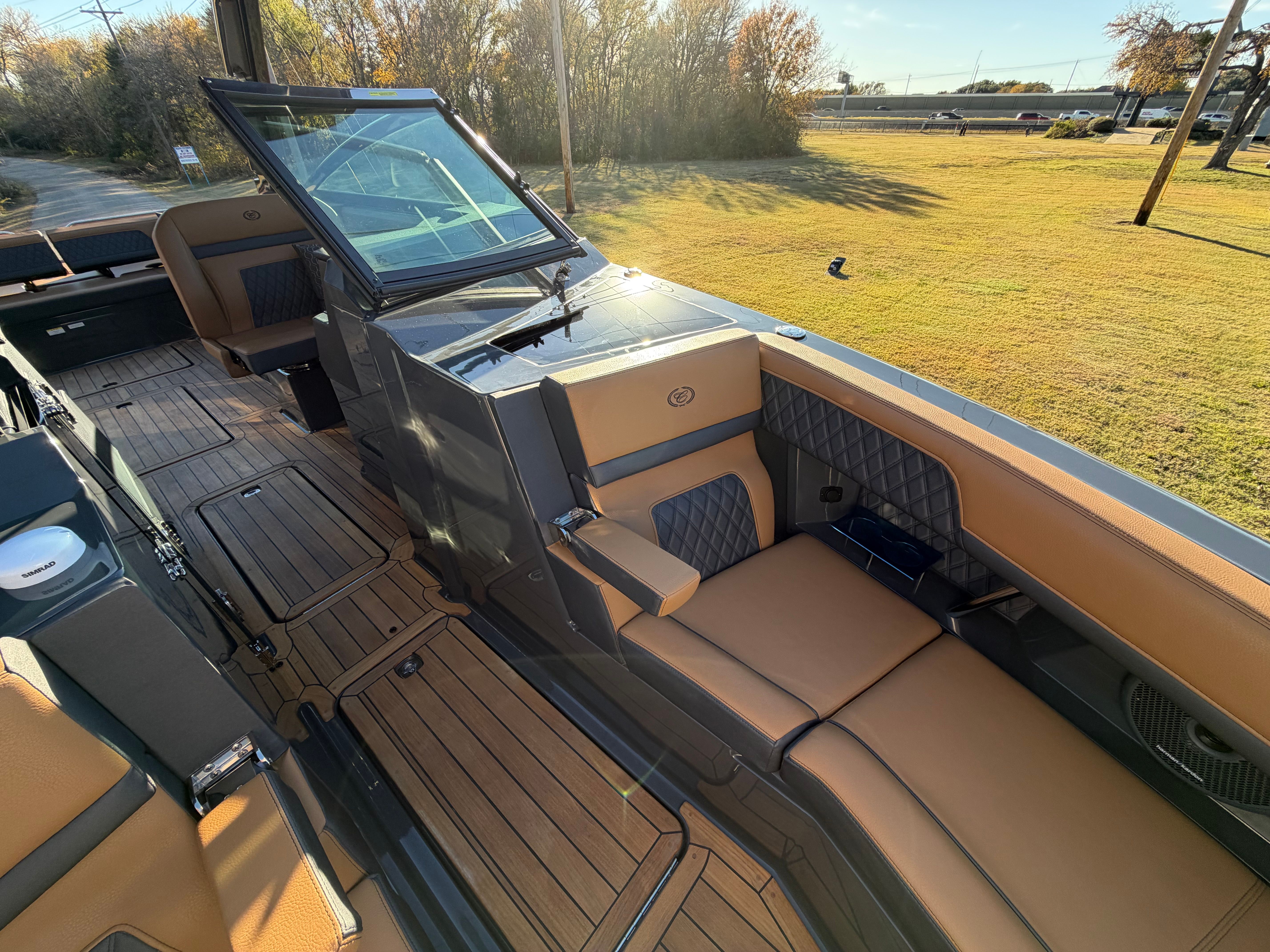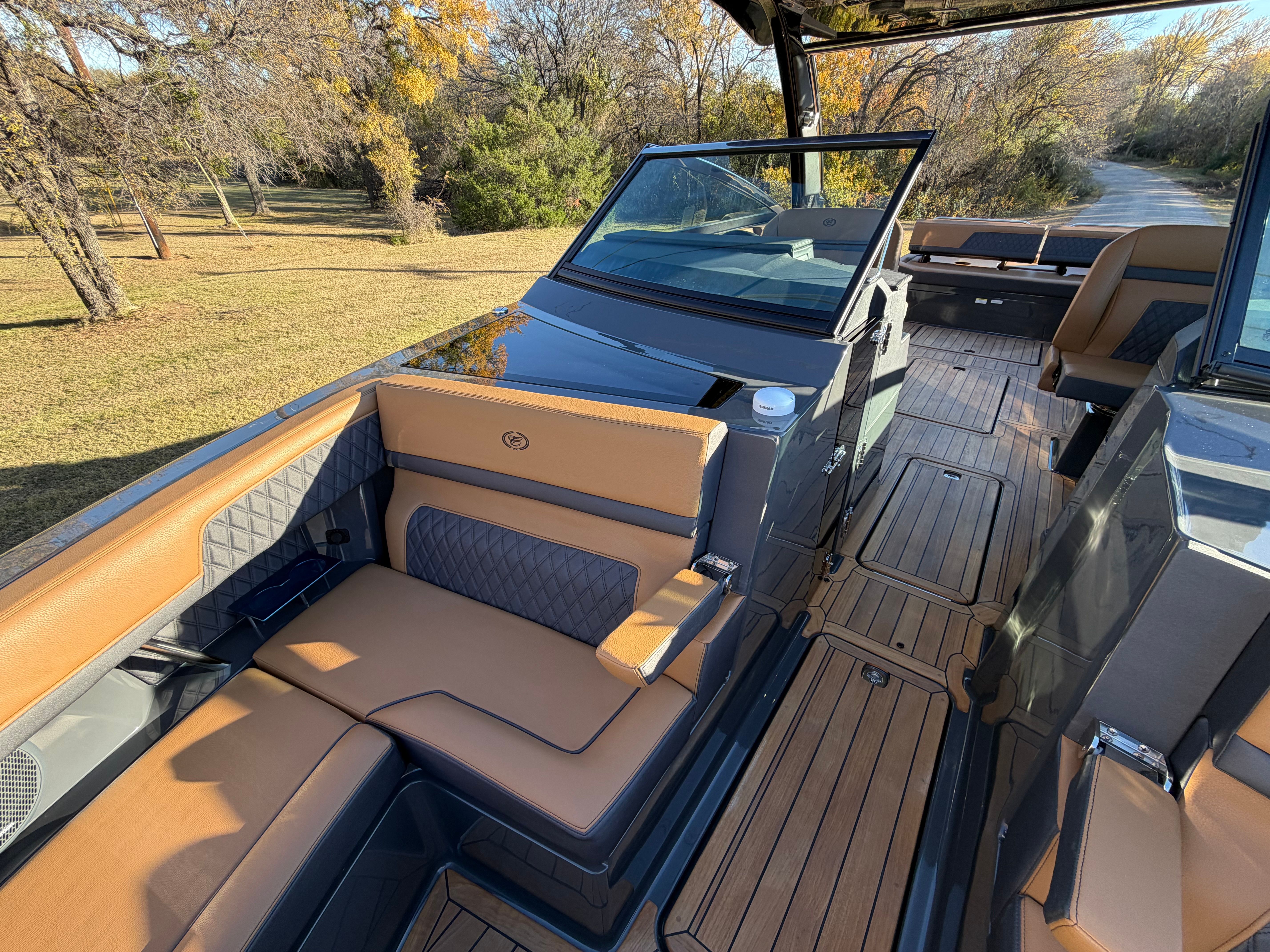 The 2026 Cobalt R33 Surf is packed with premium features designed to enhance every aspect of your boating experience. The striking Accent Stripe and Rich Ebony exterior create a bold visual statement, while the Air Compressor with Holder adds convenience for inflating water toys and equipment. The Arch with Hard Top, finished in Black and complemented by a Black Electric Awning, provides stylish protection from the sun and elements, ensuring comfort throughout your journey. The Battery Maintainer/Charger keeps your boat’s power systems in optimal condition, while the Boarding Door offers easy access for guests of all ages.Inside, the Caramel/Carbon/Ebony interior exudes luxury, with plush seating and elegant finishes that invite relaxation. The Bow Benter Cushion Insert and Bow Shade Sail offer additional comfort and shade, perfect for long days on the water. Signature Cobalt Letters with Flag Emblem showcase the brand’s heritage, while the Dinette Table with Bow and Cockpit Receptacles creates versatile dining and social spaces for entertaining friends and family.