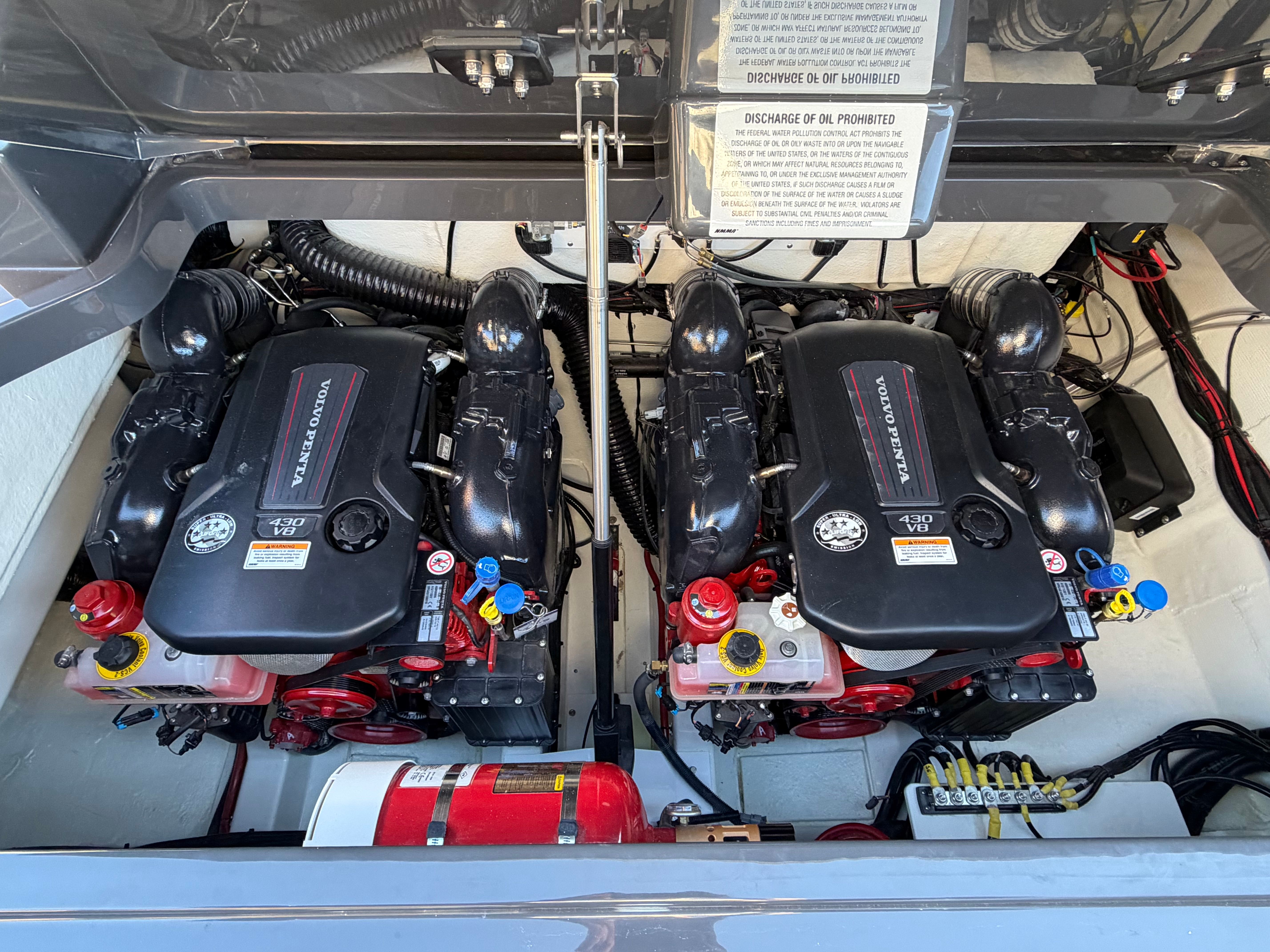 The Cobalt R33 Surf is designed with practicality in mind, offering solutions that make ownership both enjoyable and convenient. The spacious layout provides ample storage for gear, water toys, and personal items, keeping the deck clutter-free and organized. The easy-access boarding door simplifies docking and boarding, while the dual engines offer reliable power and maneuverability for navigating marinas and tight spaces.Fuel efficiency is a hallmark of Cobalt engineering, ensuring that you can spend more time enjoying the water and less time refueling. The battery maintainer/charger supports hassle-free maintenance, so you’re always ready for your next outing. The dinette table with multiple receptacles transforms the cockpit and bow into versatile spaces for dining, games, or socializing, adapting to your needs throughout the day.