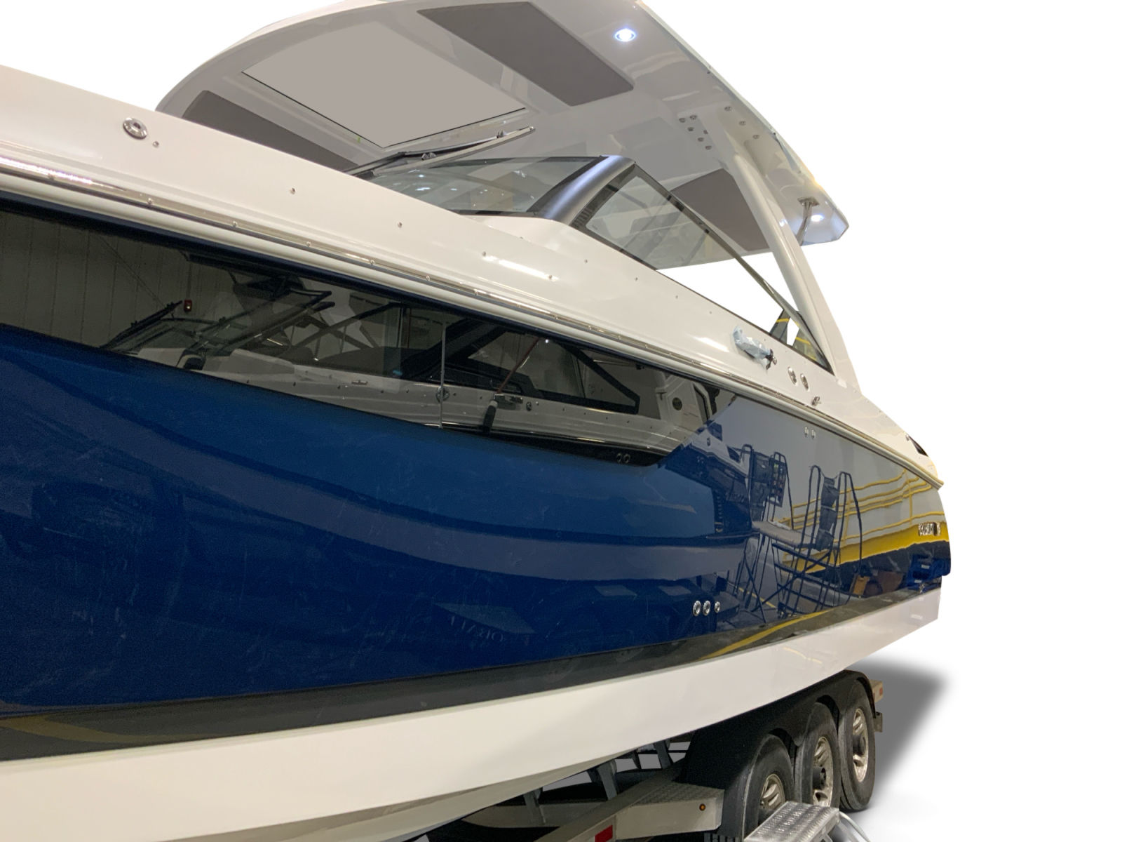 The 2026 Cobalt R35 Surf is a new bowrider that commands attention with its sleek lines and modern design. Measuring 35.33 feet in length, this boat offers ample space for relaxation, entertainment, and water sports. The R35 Surf is meticulously crafted to deliver both elegance and functionality, making it a top contender for those seeking a high-end Cobalt boat for sale. The striking Accent Stripe in Graphite Gray adds a sophisticated touch to its exterior, ensuring you turn heads at every marina and on every waterway.
