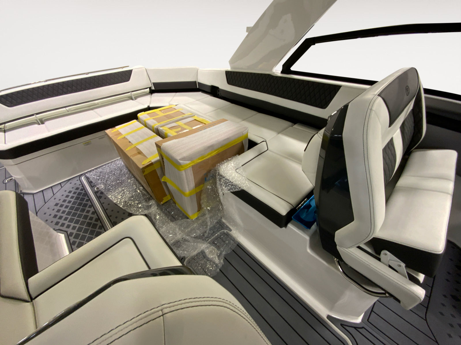 Under the hood, the Cobalt R35 Surf is powered by twin Volvo V8 430CE engines, delivering a combined 860 horsepower. This powerhouse setup ensures exhilarating acceleration, smooth cruising, and the ability to handle a variety of water conditions with confidence. Whether you are carving through waves or enjoying a leisurely cruise, the R35 Surf’s performance is both thrilling and reliable. The advanced propulsion system is engineered for responsive handling, making docking and maneuvering effortless even for less experienced boaters.