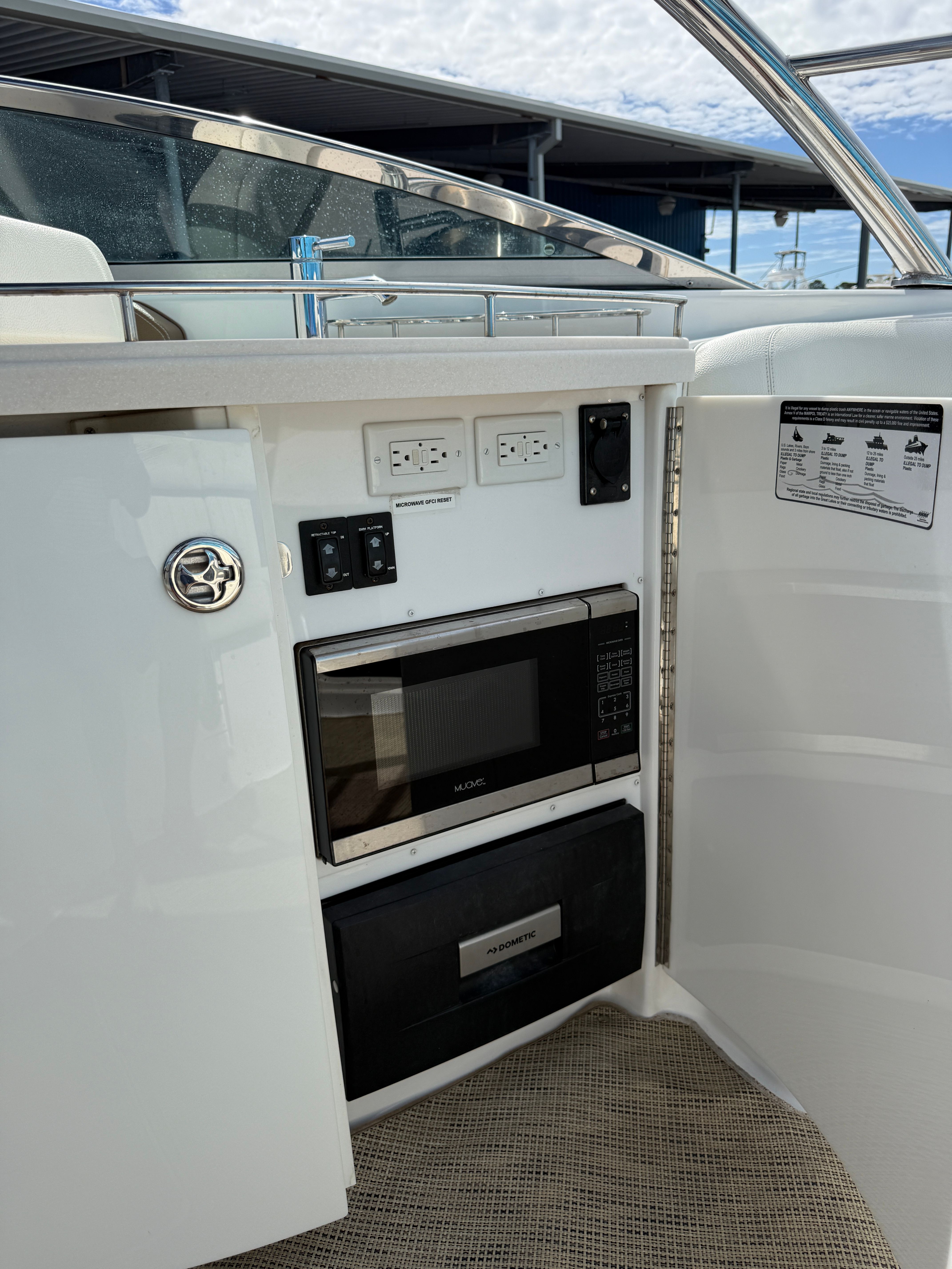 Under the hood, the Cobalt R35 is powered by twin engines, delivering a combined 760 horsepower. With only 315 engine hours, these engines offer robust performance and reliability, ensuring you can enjoy countless hours on the water with confidence. The dual-engine setup provides impressive acceleration, smooth handling, and precise control, making this Bowrider boat for sale a true pleasure to operate. Whether you’re cruising at a leisurely pace or unleashing the full power of the engines, the R35 responds with agility and grace, offering a thrilling yet comfortable ride.