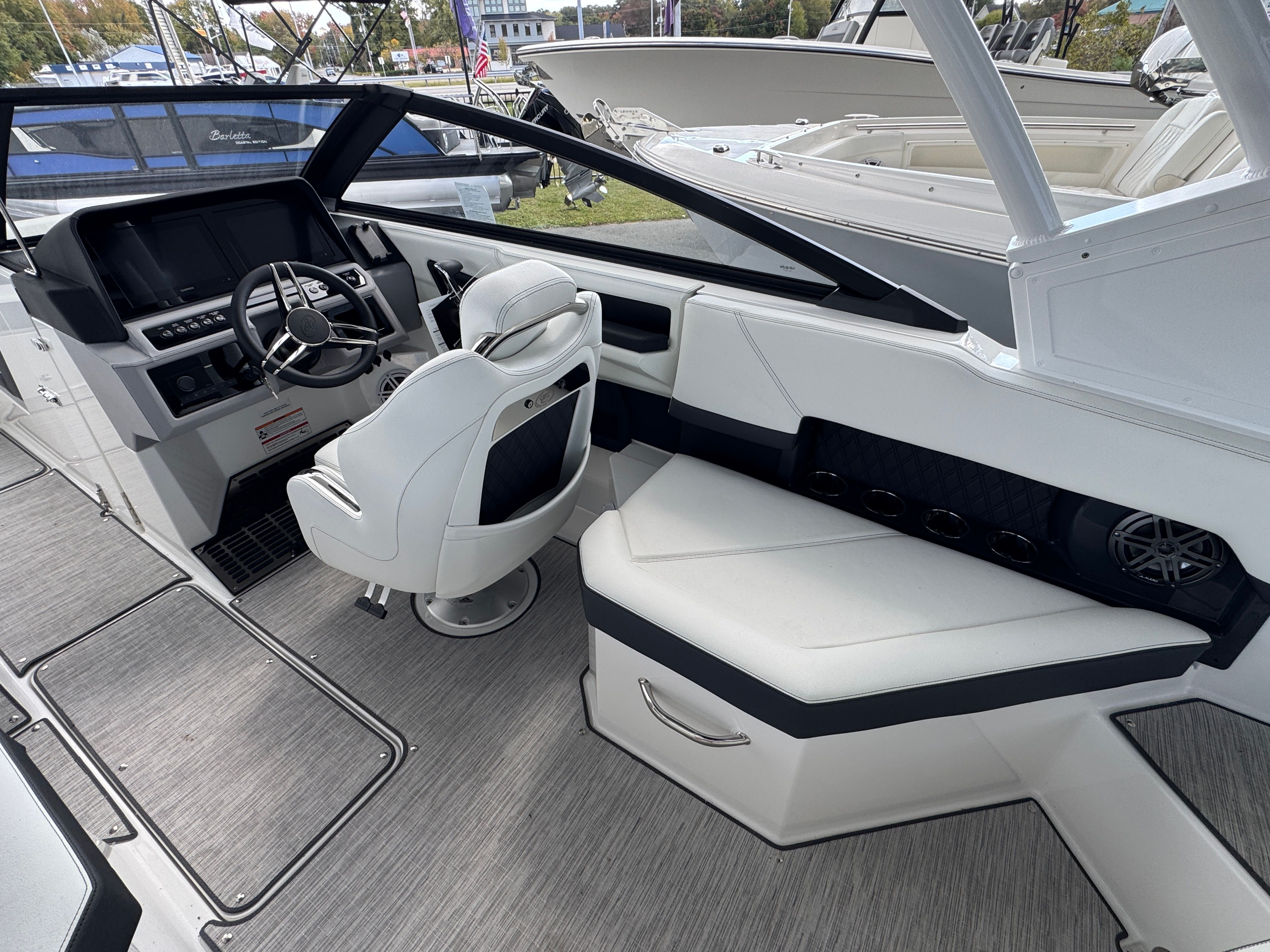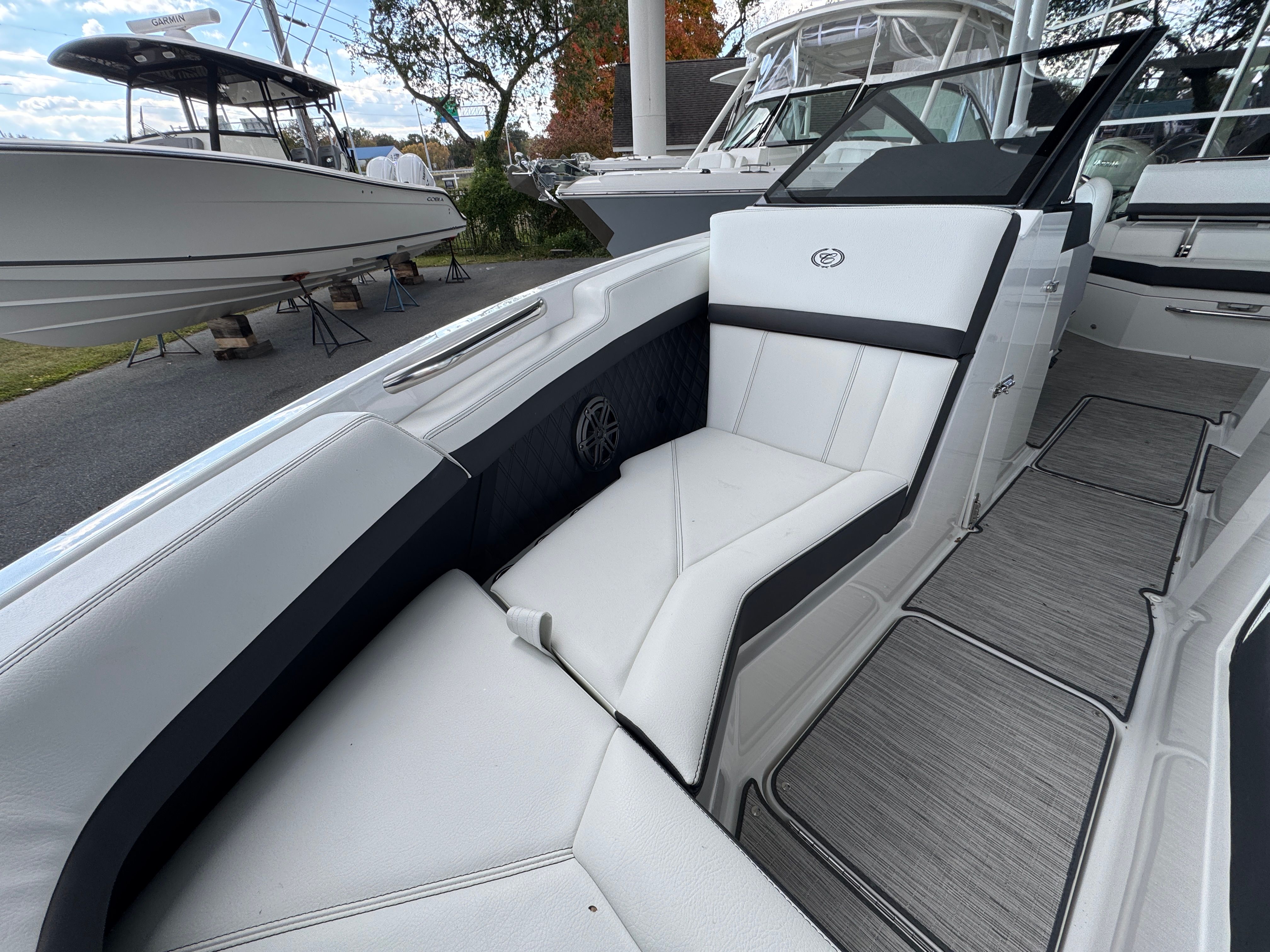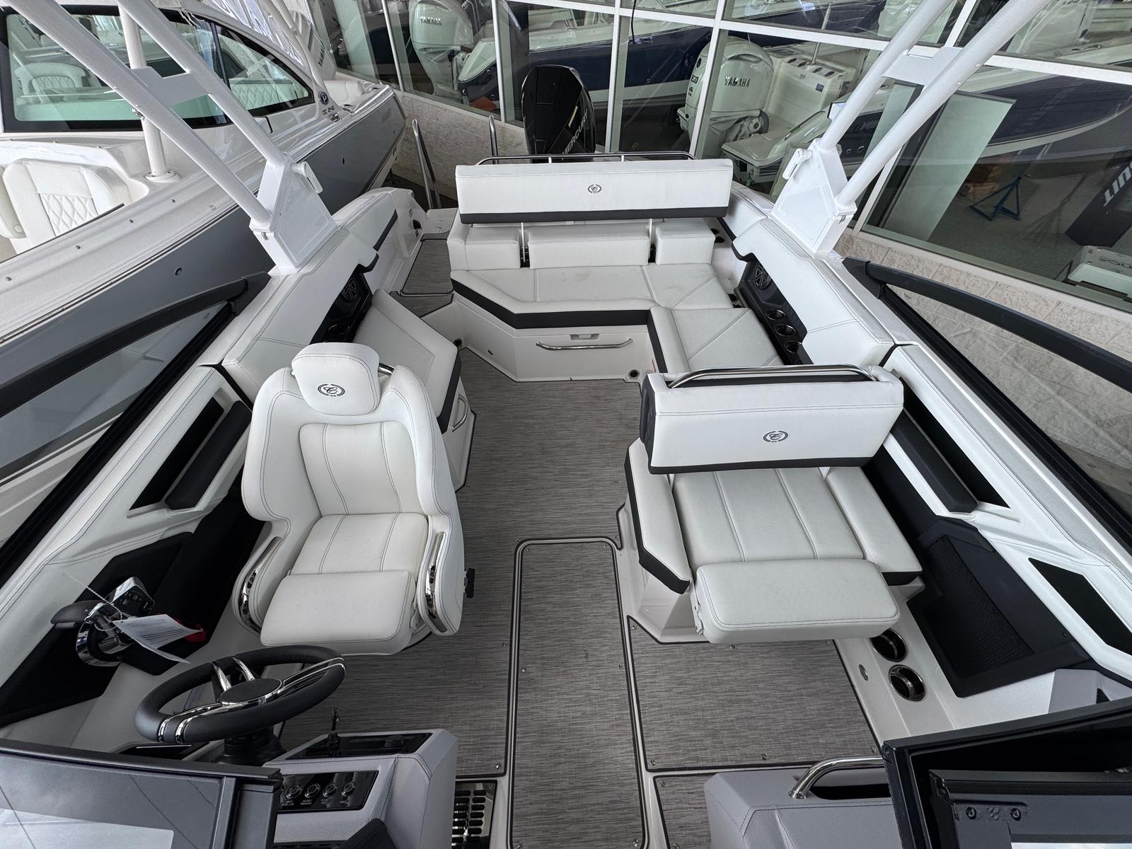 Features and Specifications - The Cobalt R4 OB is packed with features that elevate your boating experience. Its spacious 24.03-foot layout provides ample room for family and friends, ensuring everyone can relax and enjoy the ride. The bowrider design maximizes seating and social space, making it ideal for entertaining or simply soaking up the sun. High-quality materials and attention to detail are evident throughout the boat, from the plush seating to the stylish helm. This new Cobalt boat for sale is designed with both form and function in mind. The ergonomic helm station offers intuitive controls and excellent visibility, allowing you to navigate with confidence. The open bow area is perfect for lounging, while the aft seating provides a comfortable spot to unwind after a swim or a day of water sports. Every inch of the R4 OB is crafted to enhance your time on the water, ensuring you and your guests enjoy every moment.