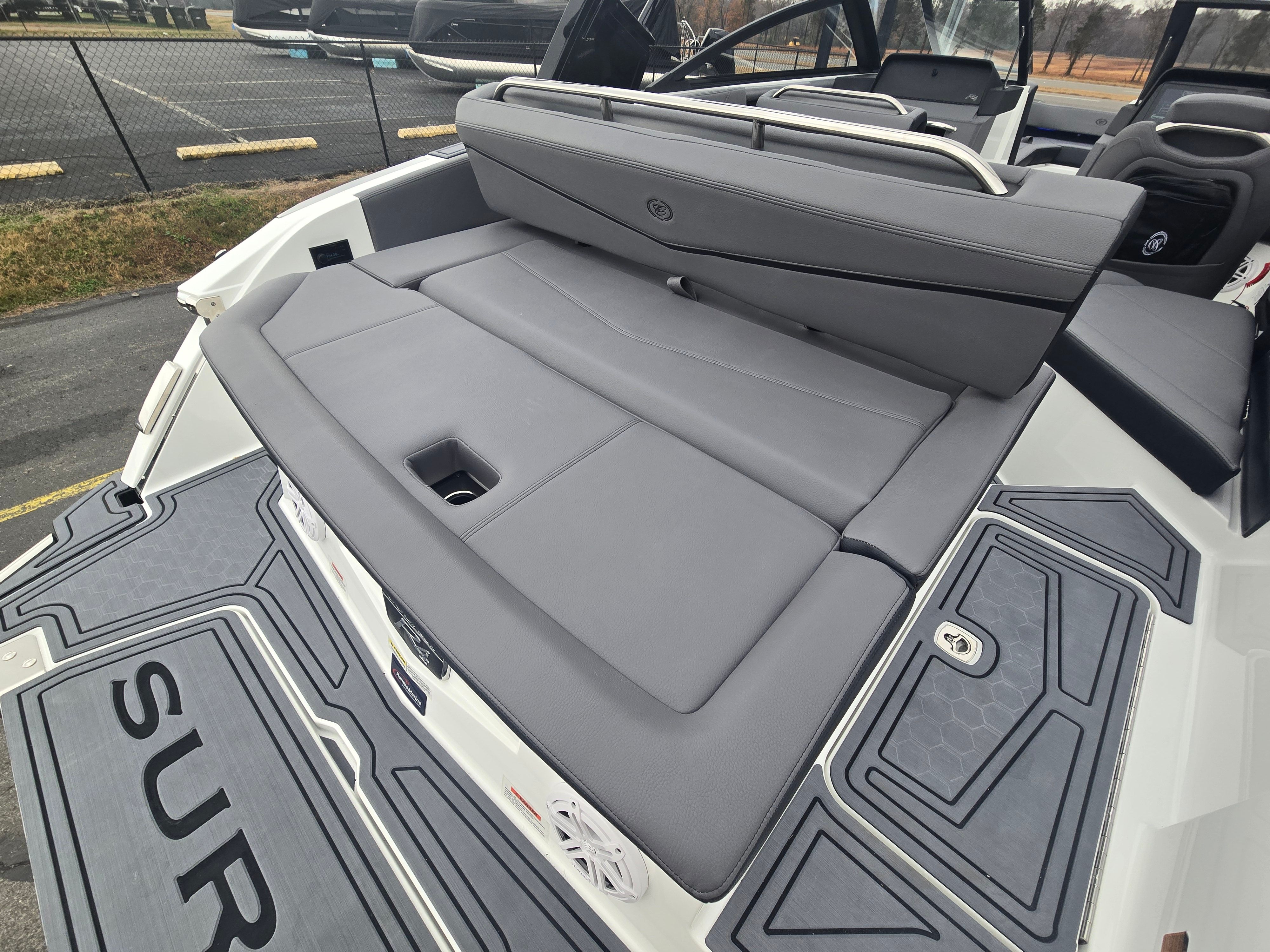 The 2026 Cobalt R4 Surf is loaded with premium features designed to enhance your boating experience. The Upper Surf Accent and Surf Mid Hull Side in White, paired with the Rich Ebony Accent Stripe and Hull Bottom, create a visually stunning exterior that turns heads at every marina. The Swim Platform Extension in Rich Ebony provides additional space for lounging, swimming, or preparing for water sports, while the interior’s Slate and Ebony color scheme adds a touch of luxury and comfort.One of the standout features of the R4 Surf is the Aft Facing Rumble Seat, offering a unique and comfortable spot to relax and enjoy the view. The Battery Maintainer/Charger ensures your boat is always ready for action, providing peace of mind during extended outings. The Cobalt Letters in Black Satin add a distinctive finishing touch, reinforcing the boat’s premium status and attention to detail.