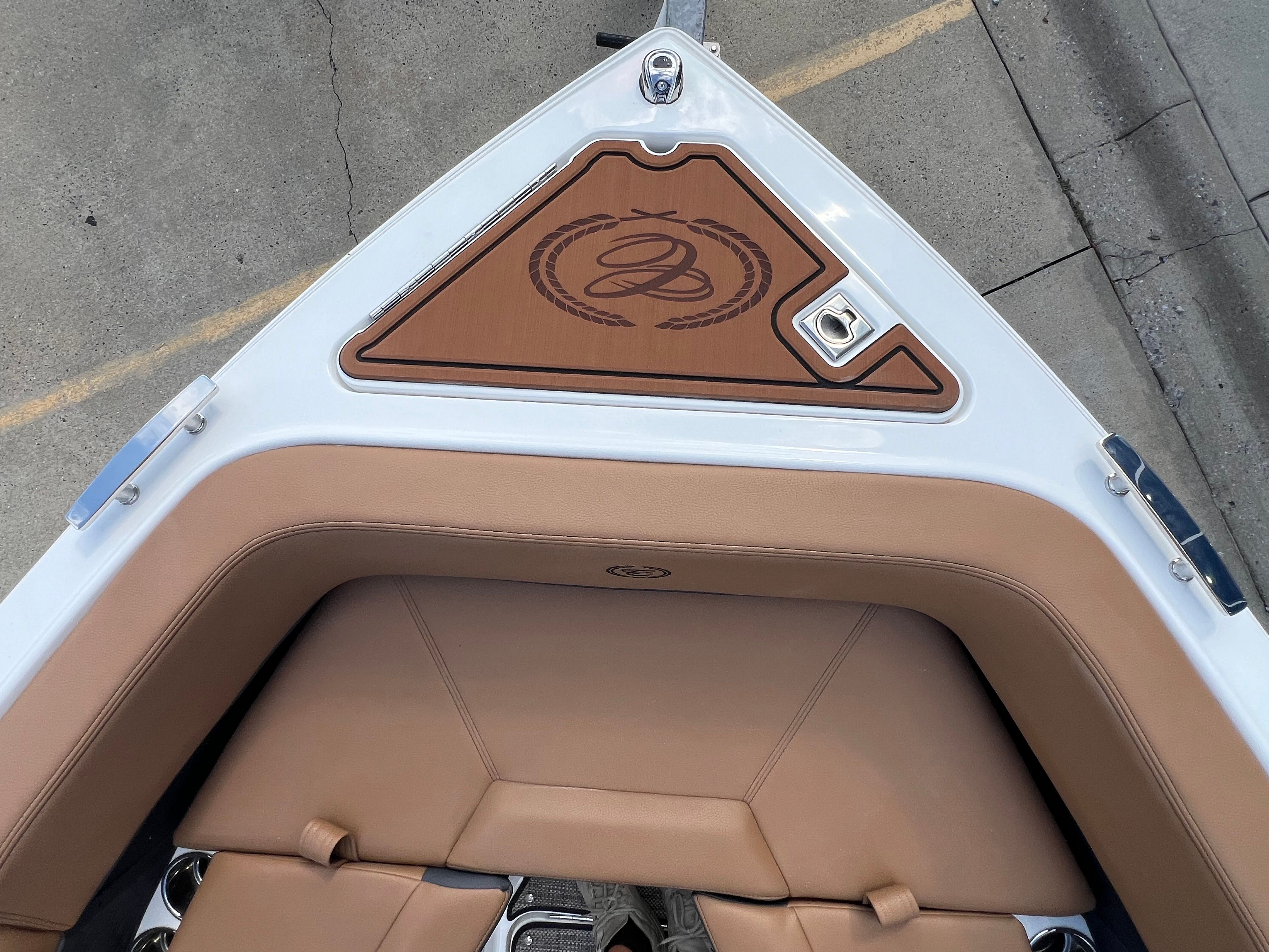 The Cobalt R4 Surf is as practical as it is luxurious. Its efficient engine and streamlined hull design make it easy to maneuver and dock, even in crowded marinas. The included fender clips and docking lights add an extra layer of convenience and safety, ensuring stress-free arrivals and departures. The battery maintainer/charger keeps your boat powered and ready, reducing downtime and maintenance hassles.Storage is ample, allowing you to bring along all the essentials for a day of fun—whether that means water sports gear, picnic supplies, or extra towels for swimming. The durable seagrass flooring stands up to wet feet and active use, while the spacious layout provides plenty of room for everyone to spread out and enjoy the ride. Fuel efficiency is a hallmark of the Volvo V8 350CE DP engine, so you can spend more time on the water and less time at the pump.