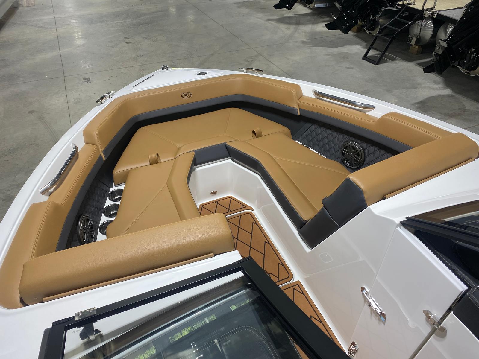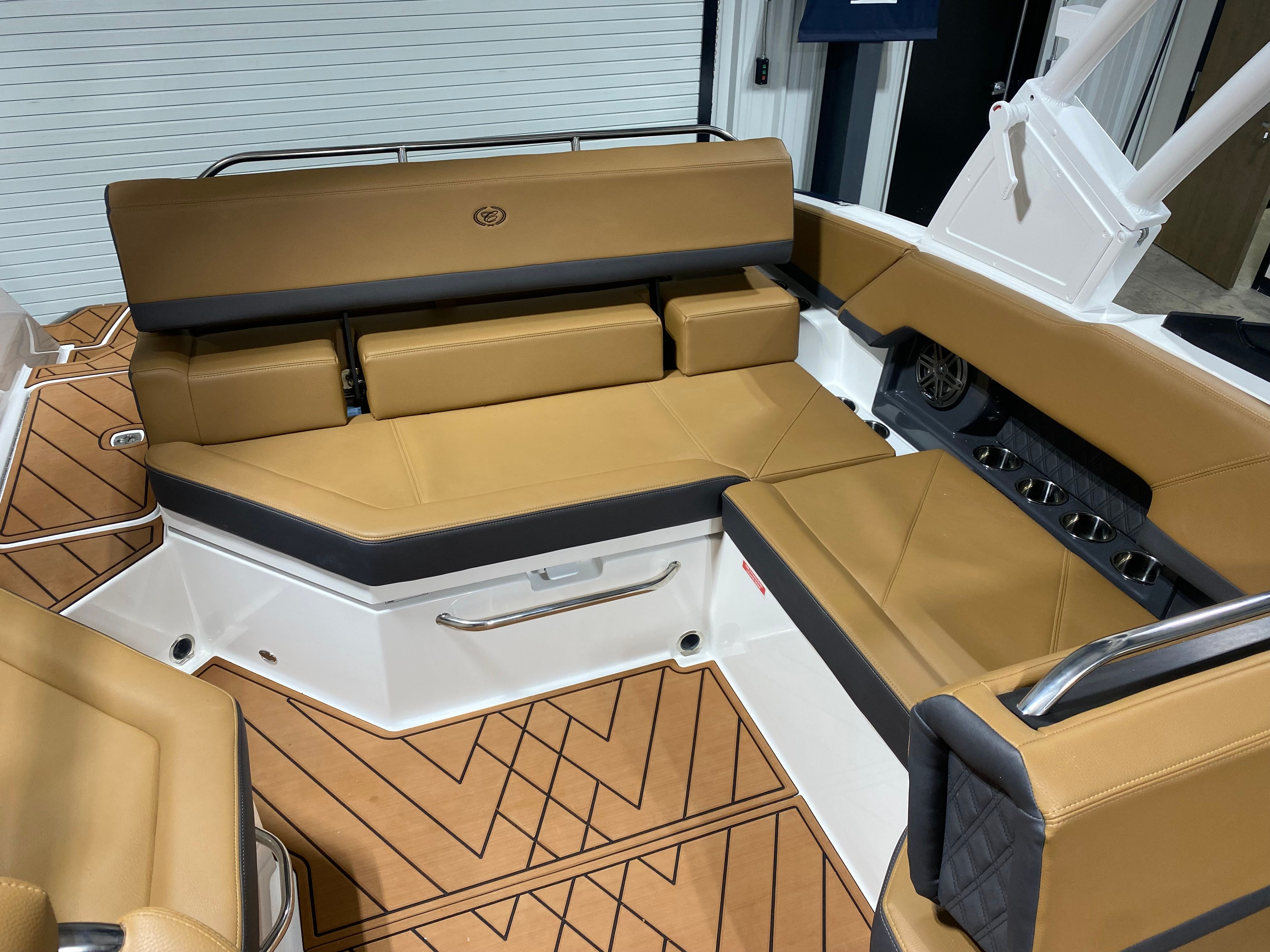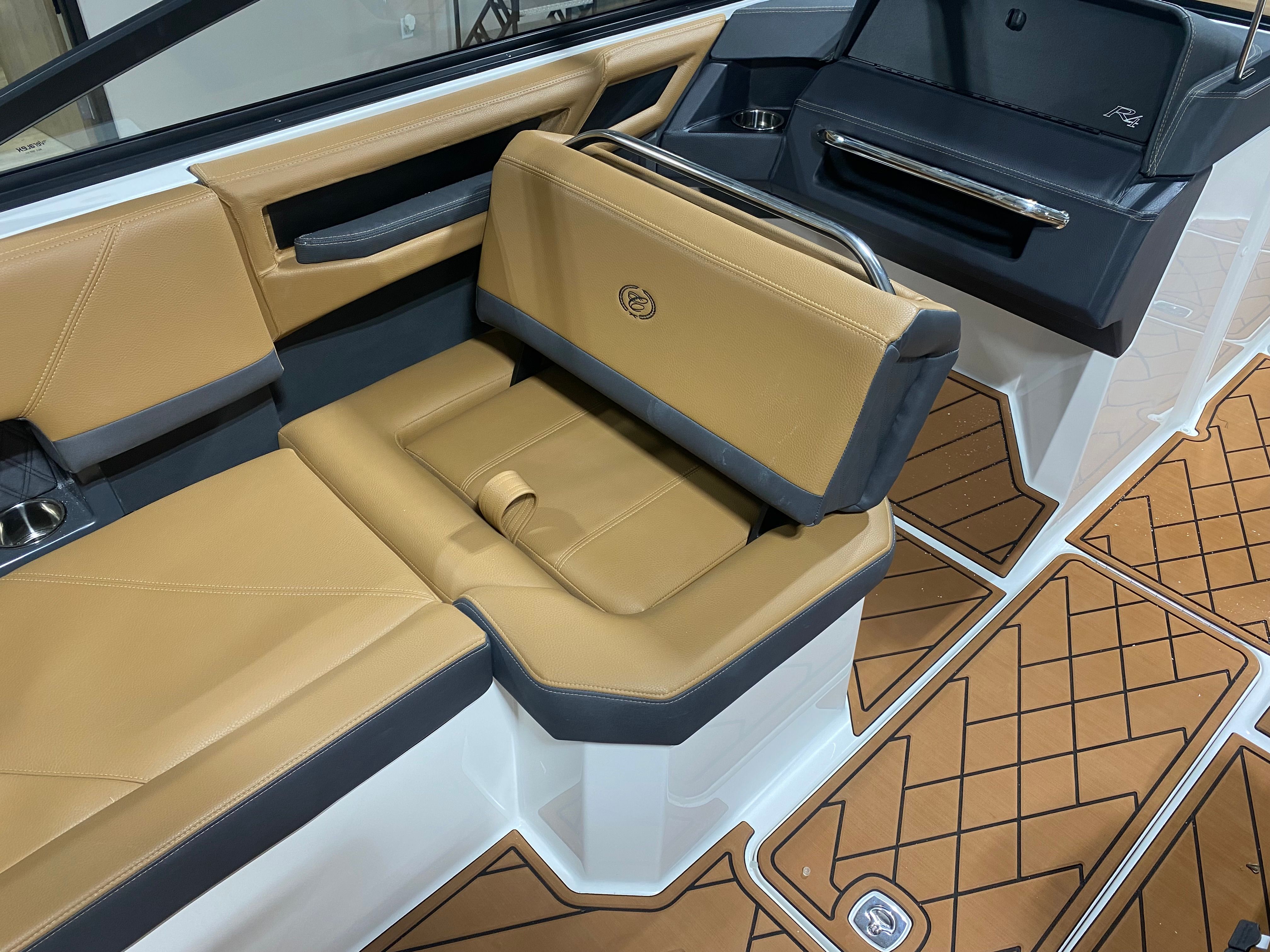 The 2026 Cobalt R4 stands out as a premium bowrider, measuring an impressive 24.25 feet in length. This new model boasts a contemporary profile, highlighted by the striking Accent Stripe in Rich Ebony and the sophisticated Cobalt Letters in Black Satin. The R4’s refined lines and attention to detail make it a head-turner at any marina or dock. Built for both style and substance, this Cobalt boat for sale offers ample space for relaxation and socializing, making it perfect for families and groups who value comfort and versatility on the water.