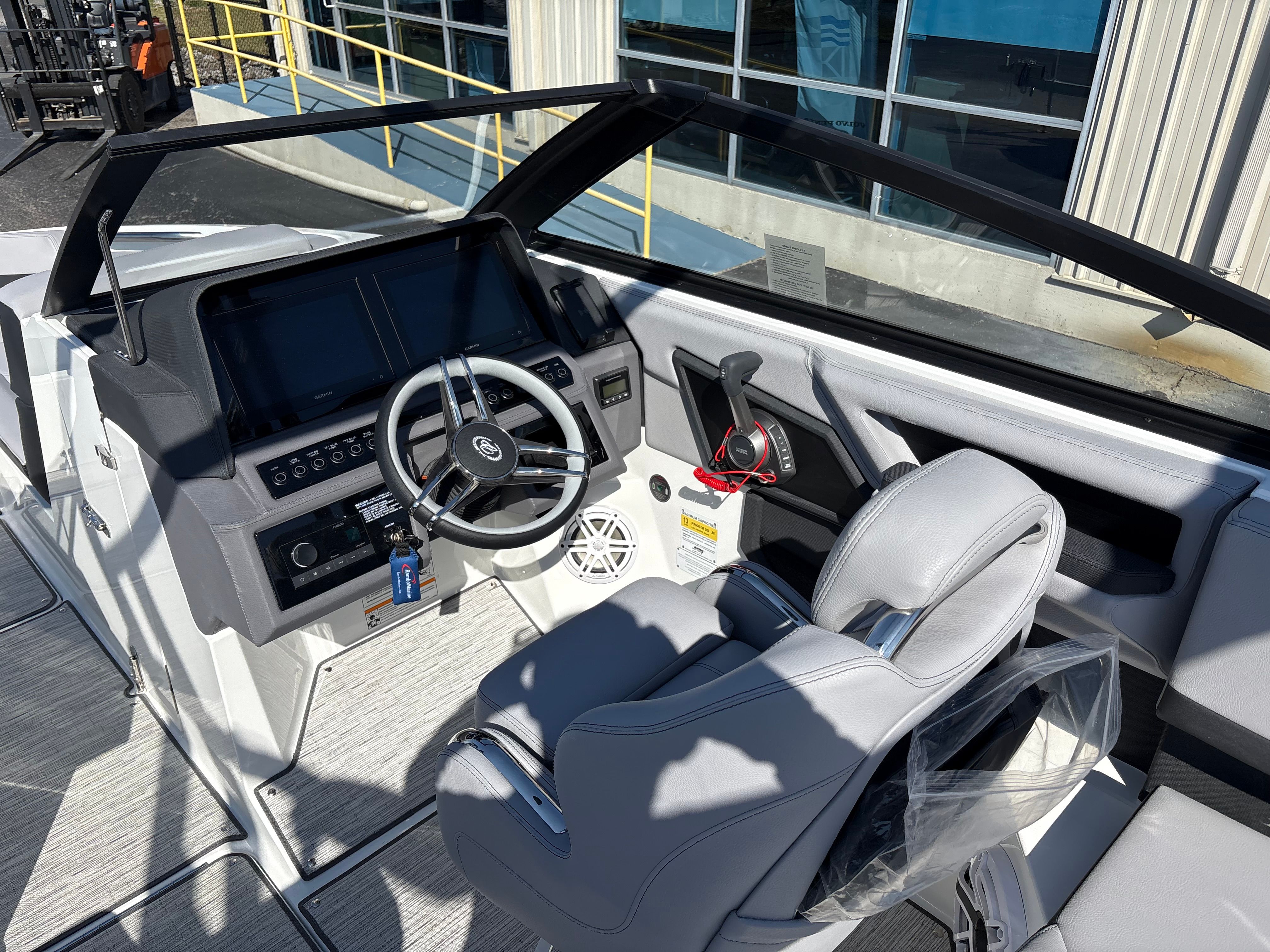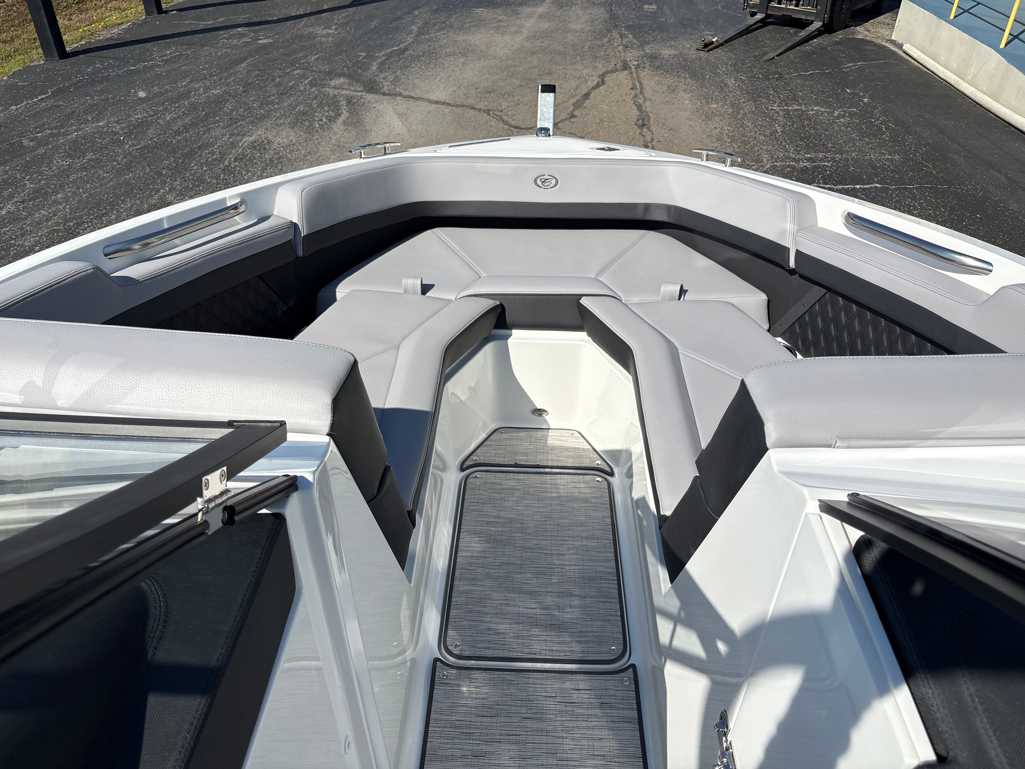 The 2026 Cobalt R4 is a brand-new Bowrider that measures an impressive 24.25 feet in length, offering ample space for family and friends to relax and enjoy the ride. This Cobalt boat for sale is a testament to the brand’s commitment to quality, durability, and modern design. The R4’s striking exterior features a Hull Side in White, an Accent Stripe in Rich Ebony, and a Hull Bottom in White, creating a sophisticated and eye-catching profile that stands out at any marina or on any lake. The interior is finished in Frost and Slate, providing a cool, inviting atmosphere that complements the boat’s elegant exterior.
