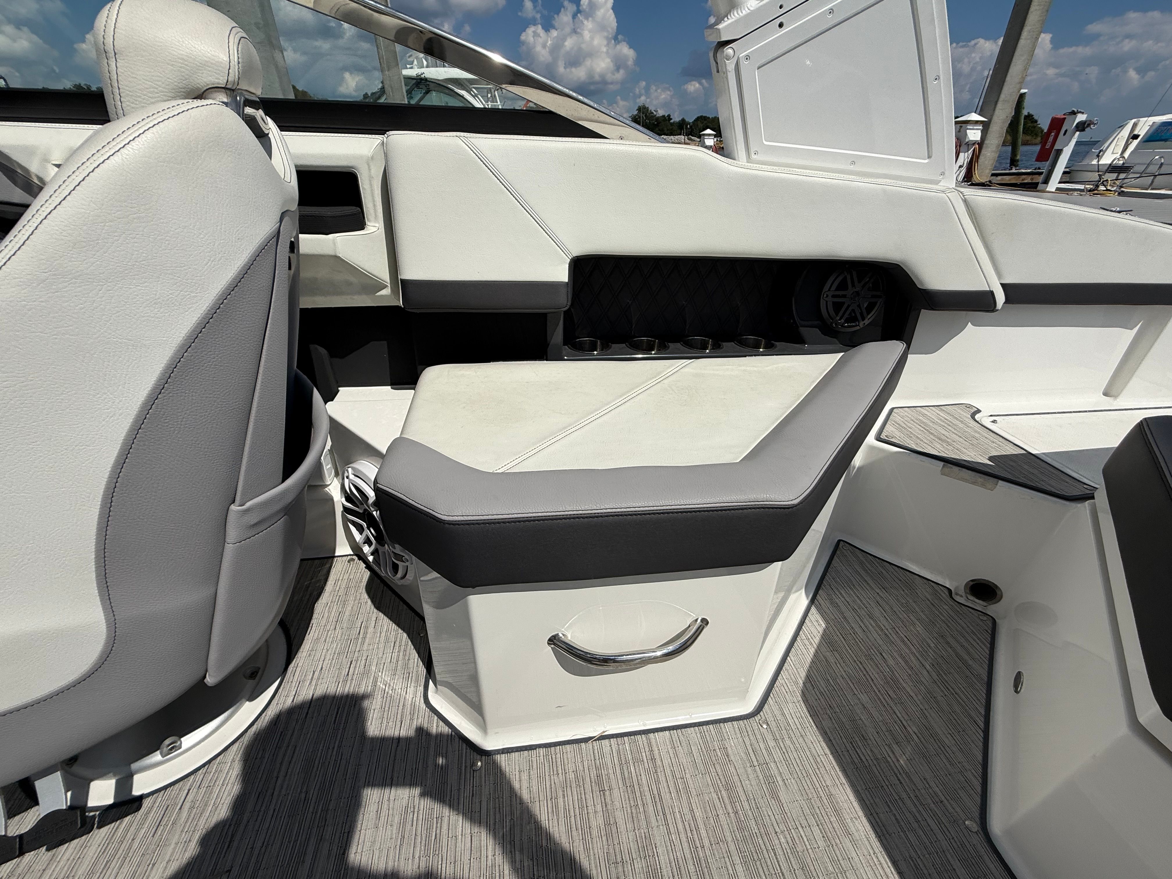 Practicality is at the heart of the Cobalt R4’s design. The boat’s ample storage options make it easy to stow life jackets, water sports equipment, and personal items, keeping the deck clutter-free and safe. The intuitive helm layout and responsive controls simplify docking and maneuvering, even in tight spaces, making this bowrider an excellent choice for both experienced captains and newcomers alike.Fuel efficiency is another key benefit of the R4’s design. The combination of a single, powerful engine and a well-engineered hull means you can enjoy longer days on the water without frequent refueling stops. This efficiency not only saves money but also allows you to explore farther and make the most of every adventure.