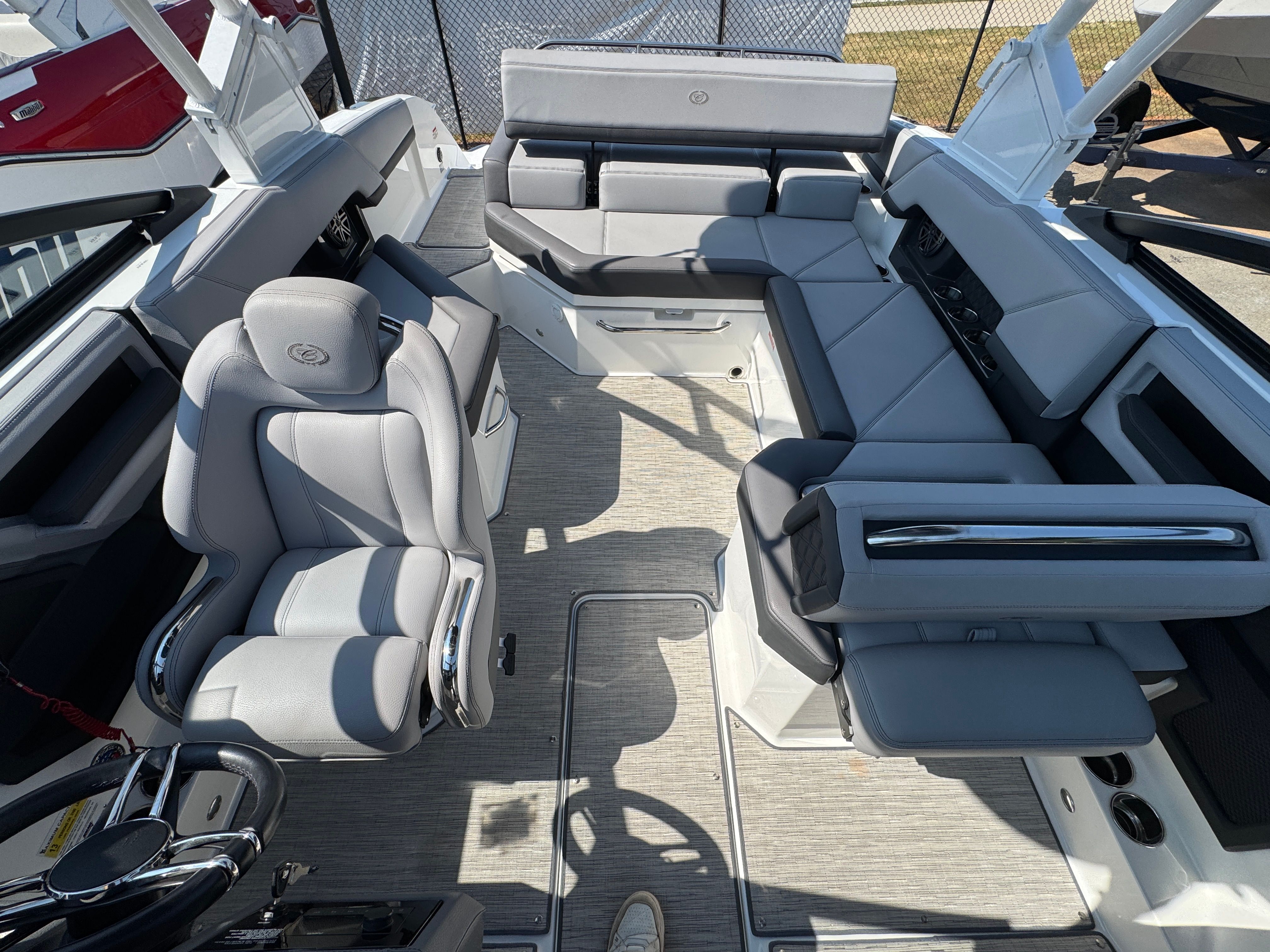 The Cobalt R4 is packed with features that enhance every aspect of your boating experience. Its spacious bowrider layout provides generous seating for guests, allowing everyone to enjoy panoramic views and the refreshing breeze. The ergonomic design ensures that every seat is comfortable, while the open deck plan makes it easy to move about the boat. The R4’s attention to detail is evident in its high-quality materials and thoughtful touches throughout the vessel.This 2024 Cobalt boat for sale also boasts a user-friendly helm, designed for intuitive control and easy access to all essential functions. The well-appointed cockpit offers both style and functionality, ensuring that the captain and passengers alike can enjoy the journey in comfort. With its 24.25-foot length, the R4 provides plenty of room for socializing, sunbathing, or simply stretching out and relaxing.