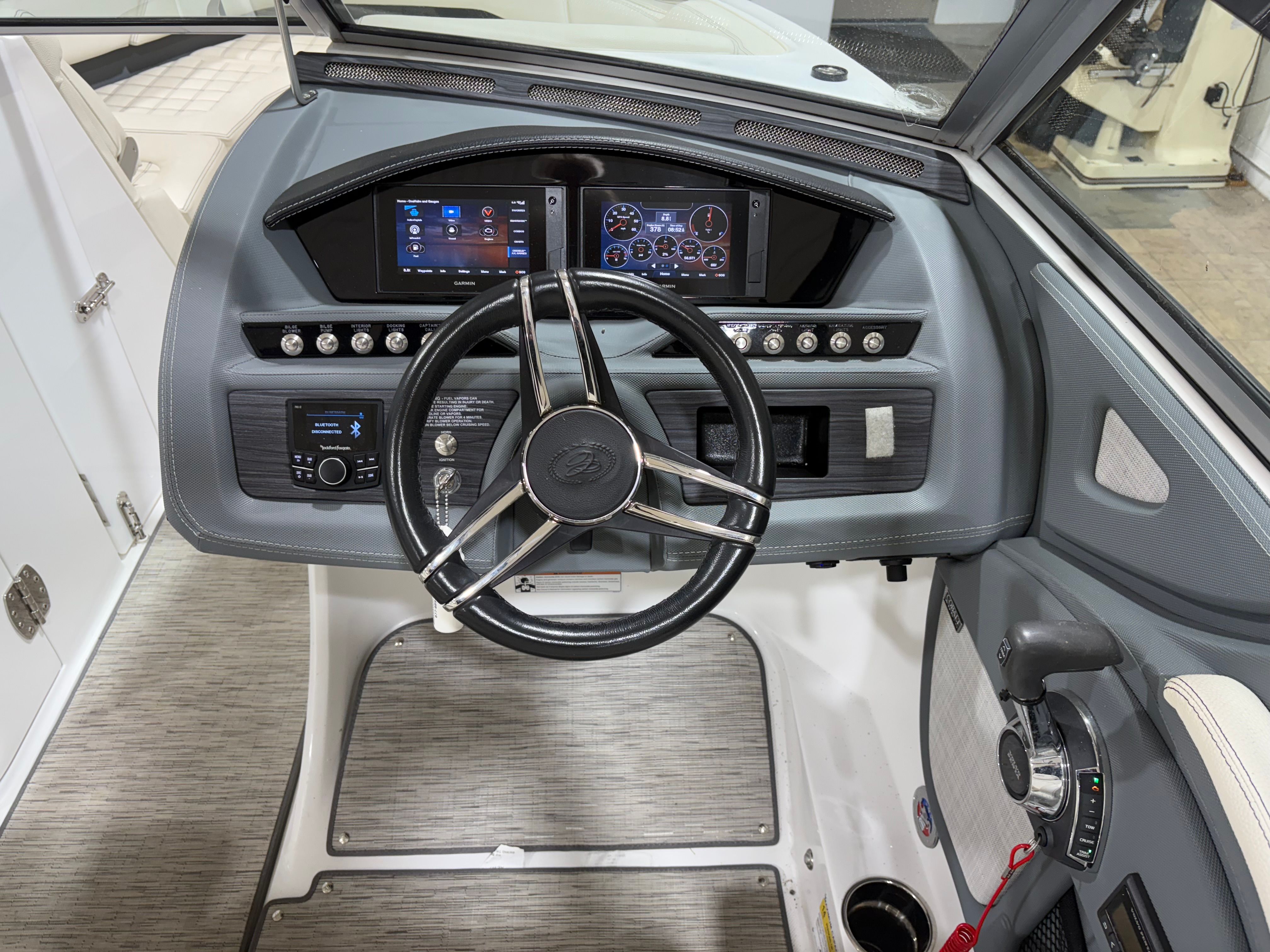 The 2021 Cobalt R5 Bowrider is packed with features designed to elevate your boating experience. Its spacious 25.67-foot layout provides generous seating and lounging areas, making it ideal for entertaining guests or relaxing with family. The ergonomic helm station offers intuitive controls and excellent visibility, ensuring a safe and enjoyable journey every time you set out.The open bow configuration is a hallmark of Bowrider boats, offering easy access to the water and a versatile space for sunbathing, socializing, or simply enjoying the view. The cockpit is designed for comfort, with plush seating and ample legroom. Storage compartments are strategically placed throughout the boat, allowing you to stow gear, snacks, and personal items securely and conveniently.