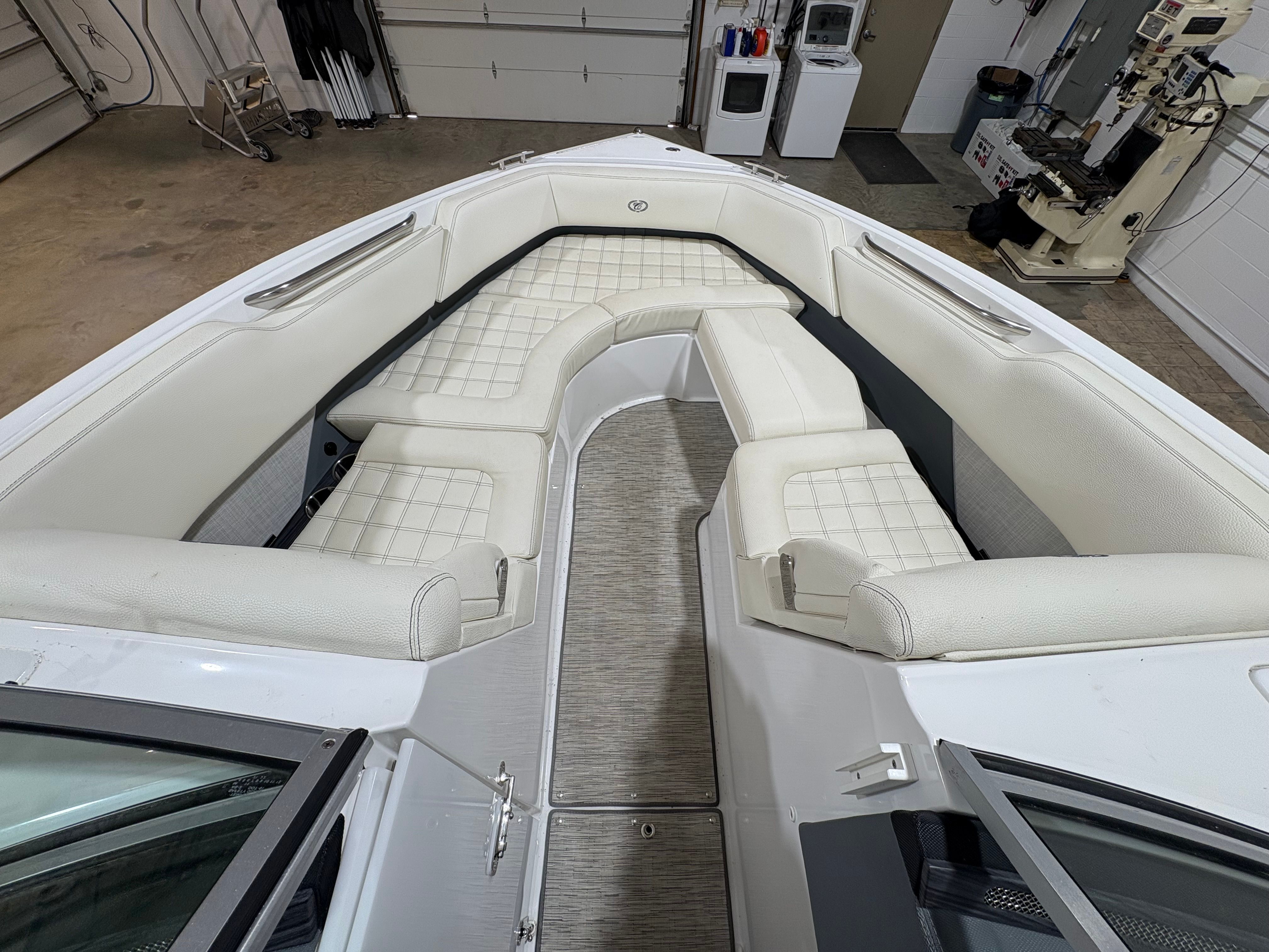 Practicality is another key advantage of the 2021 Cobalt R5. The boat’s thoughtful layout includes ample storage for all your gear, making it easy to keep the deck clutter-free and organized. Docking is a breeze thanks to the boat’s responsive handling and manageable size, allowing you to navigate marinas and tight spaces with confidence.Fuel efficiency is enhanced by Cobalt’s advanced hull design, ensuring you can enjoy longer outings without frequent refueling stops. The single-engine setup simplifies maintenance and reduces operating costs, making this used Cobalt boat for sale an economical choice for savvy buyers.