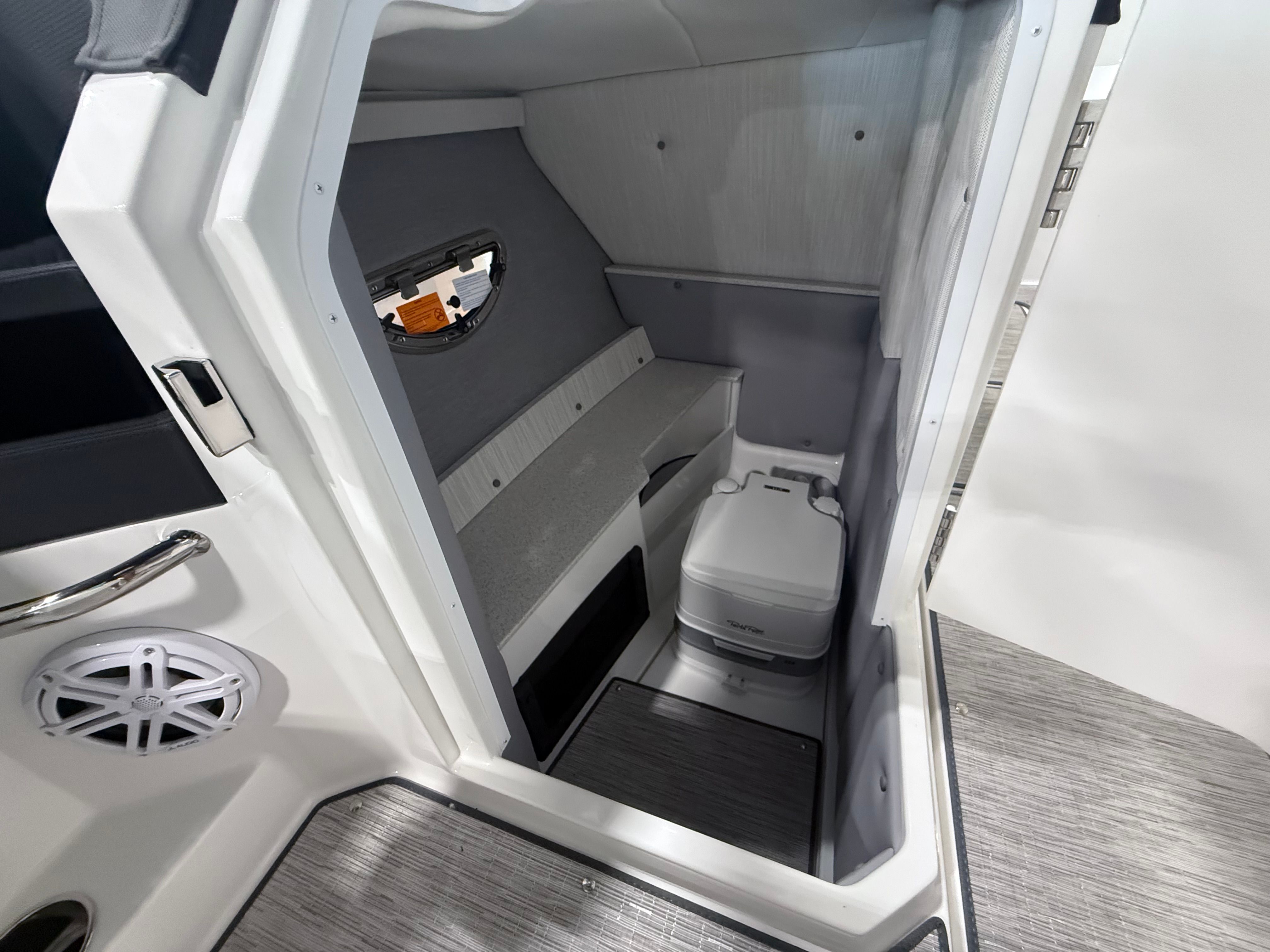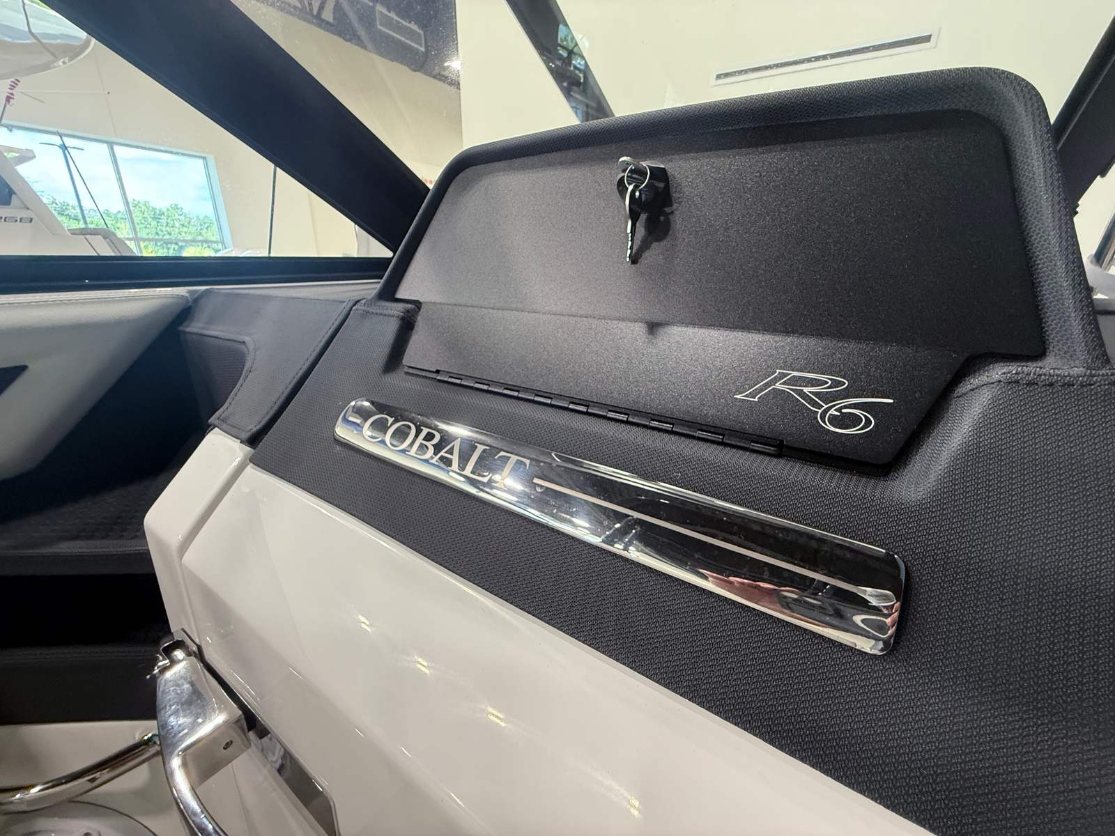 The 2025 Cobalt R6 OB is loaded with special features that elevate your time on the water. The Black Folding Arch with Rotating Shade provides both style and practical sun protection, allowing you to enjoy long days outdoors in comfort. The Ebony Bow Tonneau Cover and Cockpit Tonneau Cover offer protection from the elements and keep your boat looking pristine. The Cobalt Letters in Black Satin add a touch of sophistication, while the stainless steel docking lights ensure safe and stylish arrivals at any dock.Step aboard and you’ll notice the Seagrass Silver Ash floor covering, which combines durability with a luxurious feel underfoot. The dinette table with a teak accent is perfect for onboard meals or socializing, and the cockpit recept provides convenient power access for your devices. The port boarding ladder makes getting in and out of the water effortless, enhancing your swimming and water sports activities. A battery maintainer/charger ensures your boat is always ready to go, so you can focus on fun rather than maintenance.