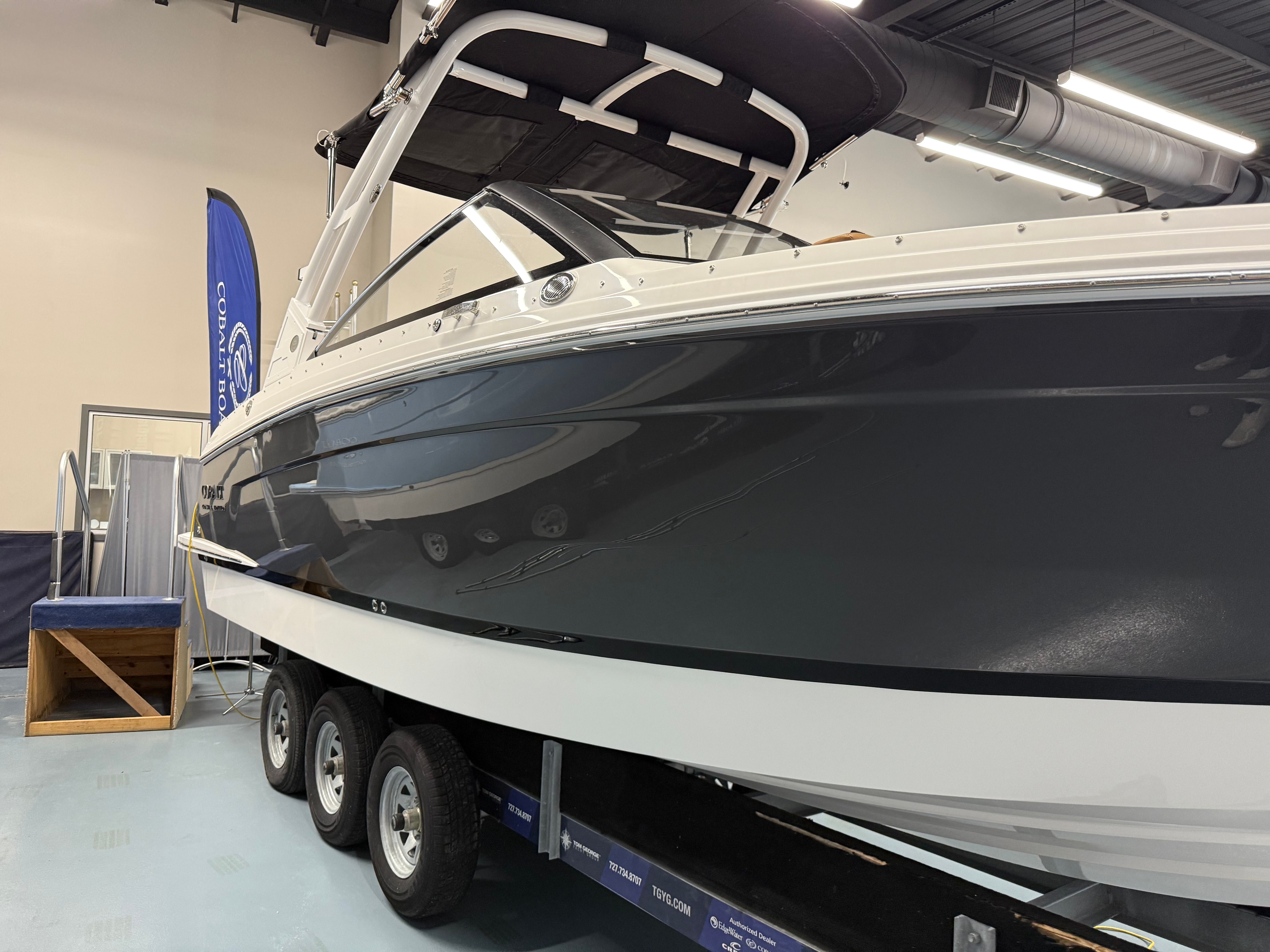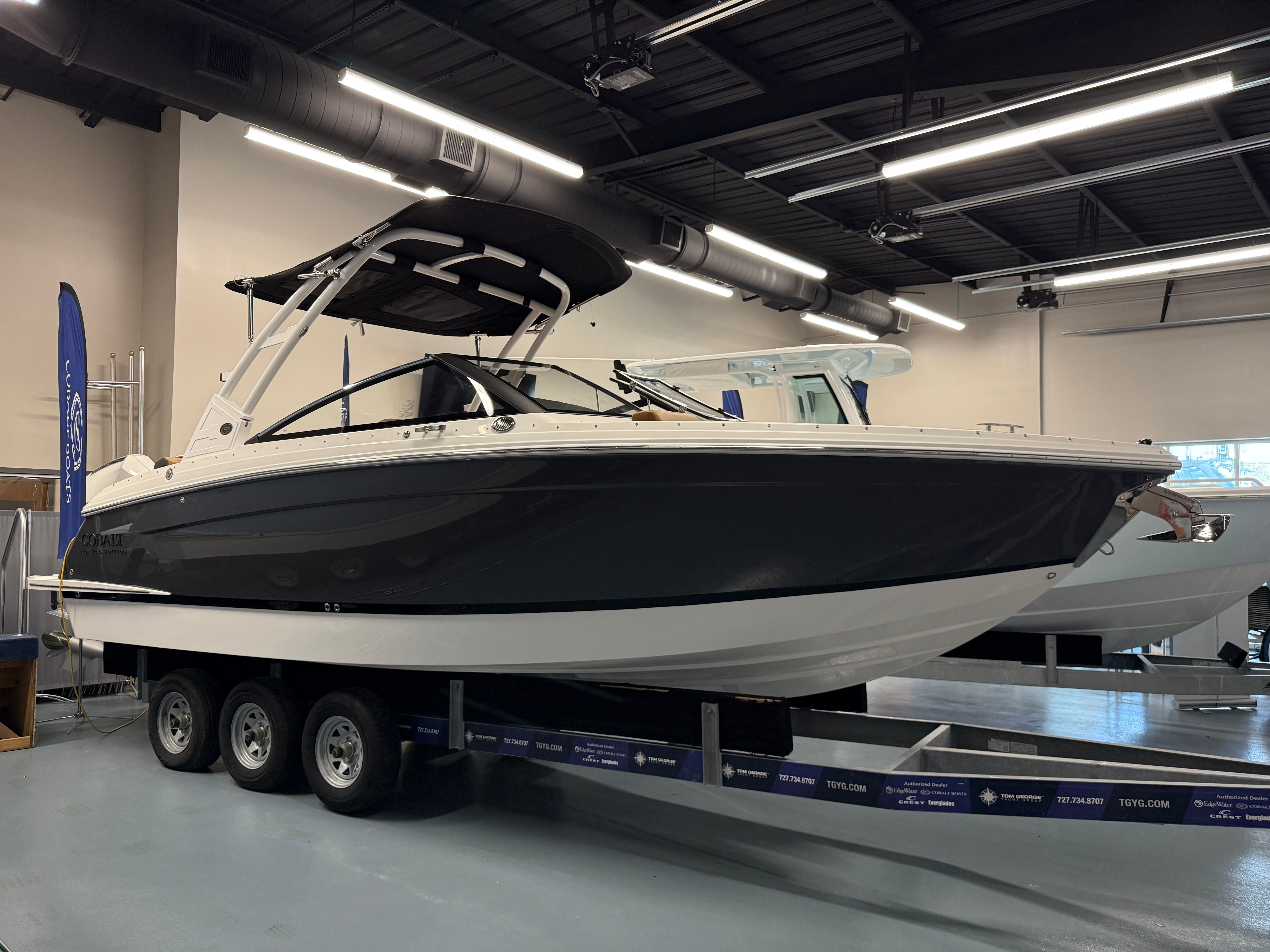 The 2026 Cobalt R6 OB is packed with features that enhance both functionality and enjoyment. The folding Arch, E2, in White with a Bimini top in Ebony, provides shade and protection from the sun while maintaining the boat’s sleek profile. The Battery Maintainer/Charger (110V) ensures your boat is always ready for action, keeping your batteries in peak condition. Boarding is made easy with a convenient Port Boarding Ladder, allowing guests to enter and exit the boat with ease. The Bow Tonneau Cover in Ebony adds an extra layer of protection for your boat’s interior, while the Cobalt Letters in Black Satin offer a touch of signature style and elegance.