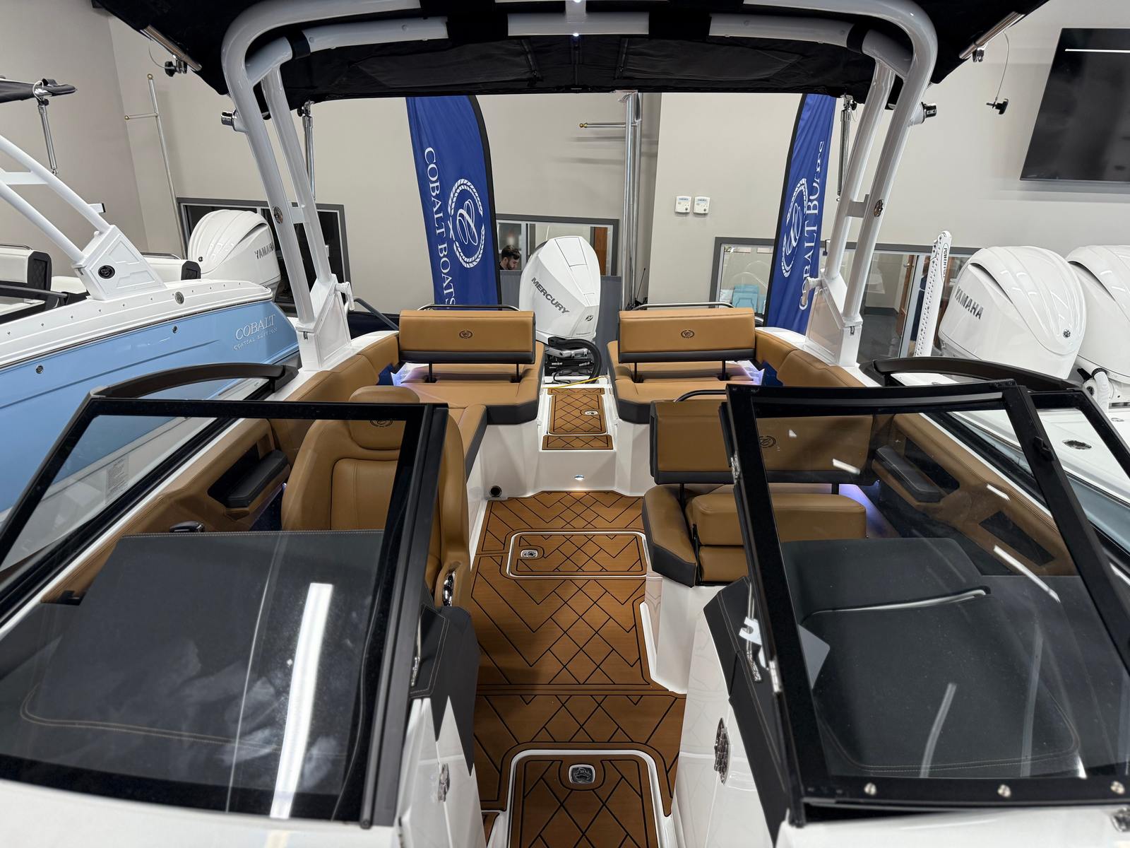 The Cobalt R6 OB is designed with practicality in mind, making ownership as enjoyable as it is effortless. The folding arch and Bimini top provide flexible shade options, adapting to changing weather and your preferred level of sun exposure. The battery maintainer/charger keeps your systems powered up and ready to go, reducing maintenance hassles and ensuring reliability. The boarding ladder on the port side makes swimming and water sports more accessible, while the Bow Tonneau Cover protects your investment from the elements. The outboard engine configuration not only enhances performance but also simplifies maintenance and docking, making this Bowrider a smart choice for both new and experienced boaters.