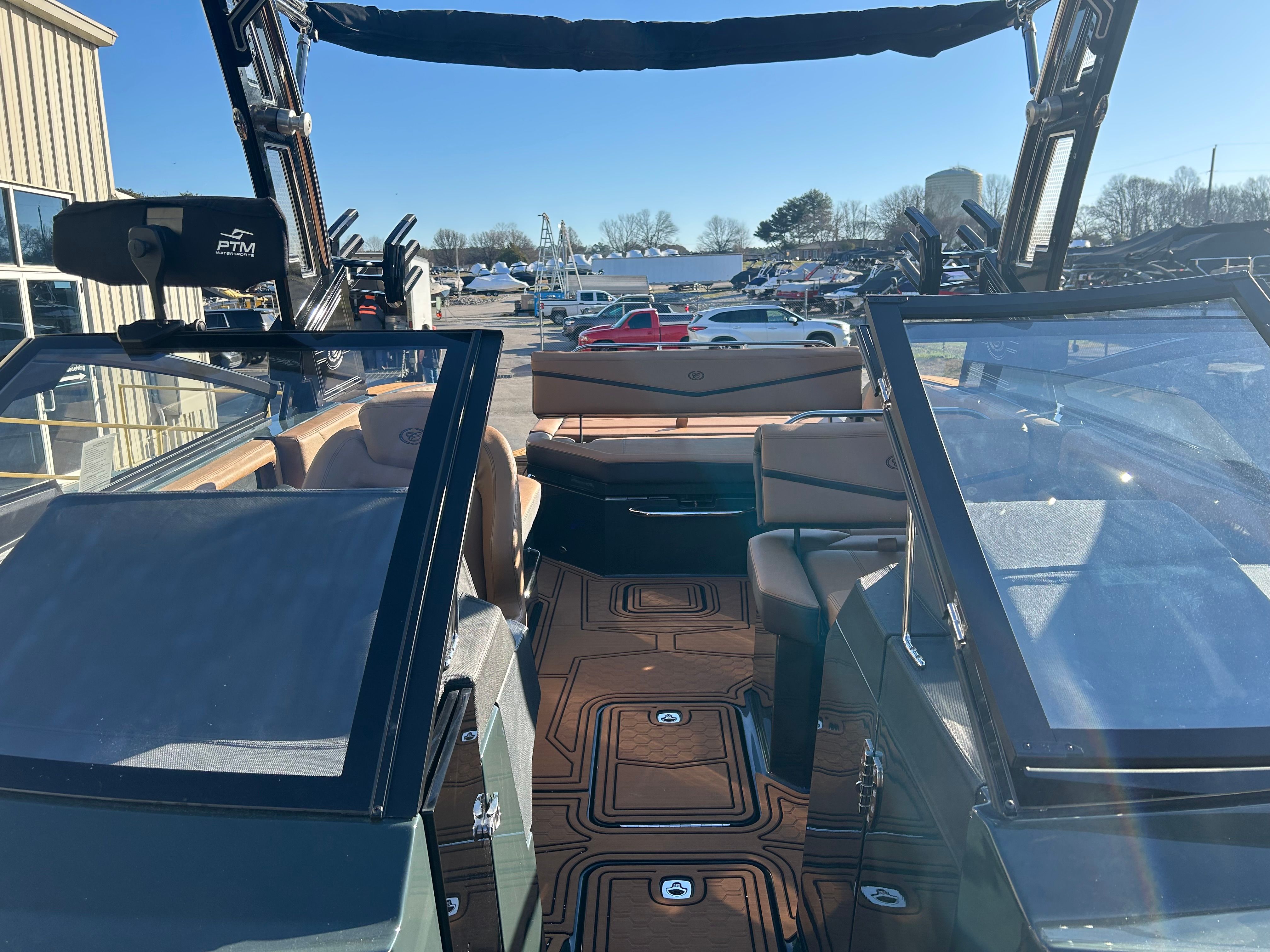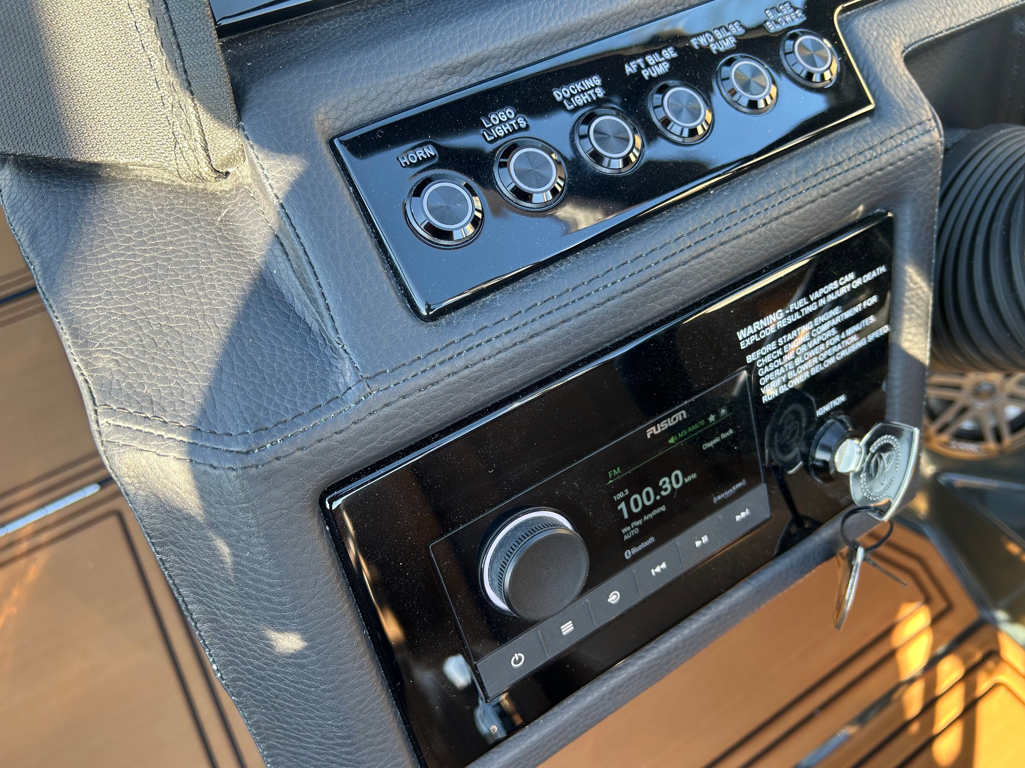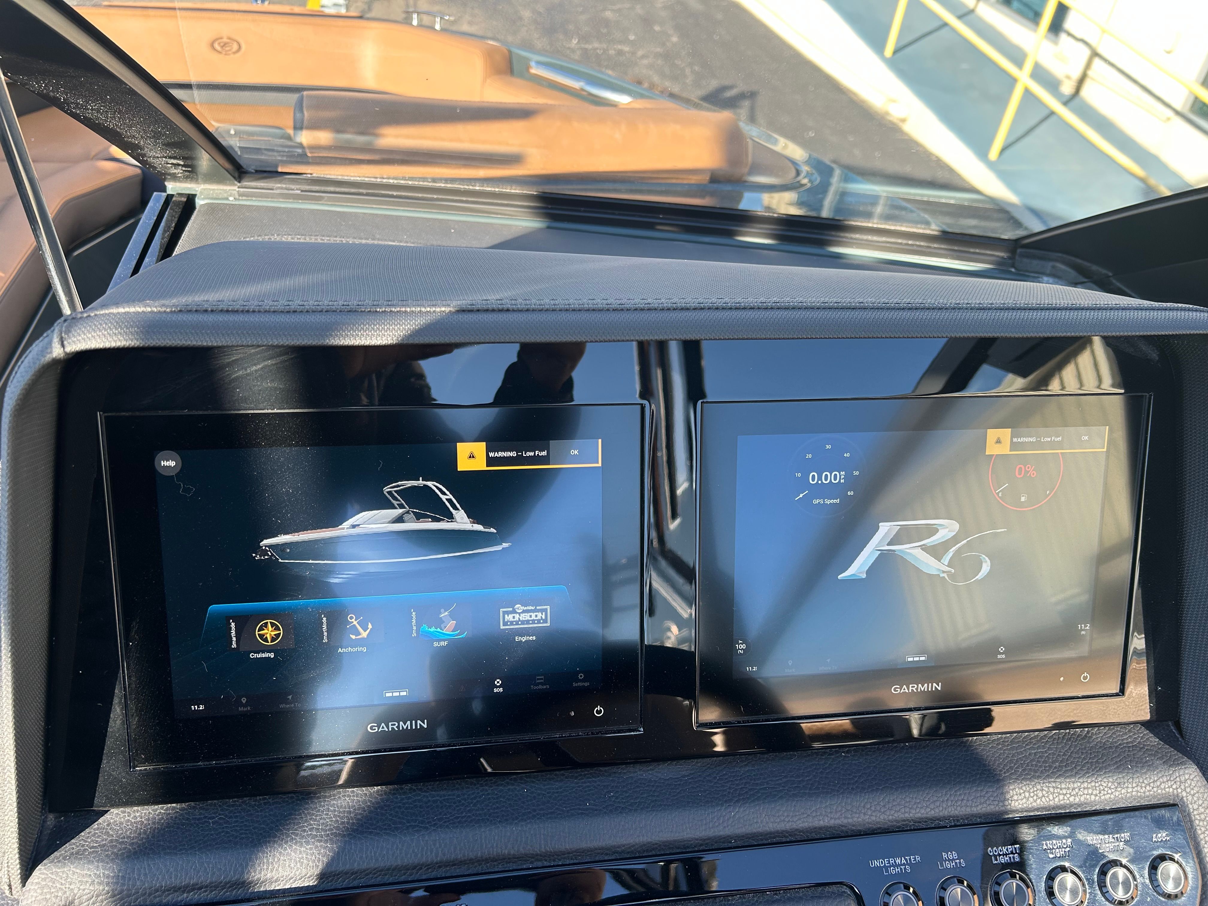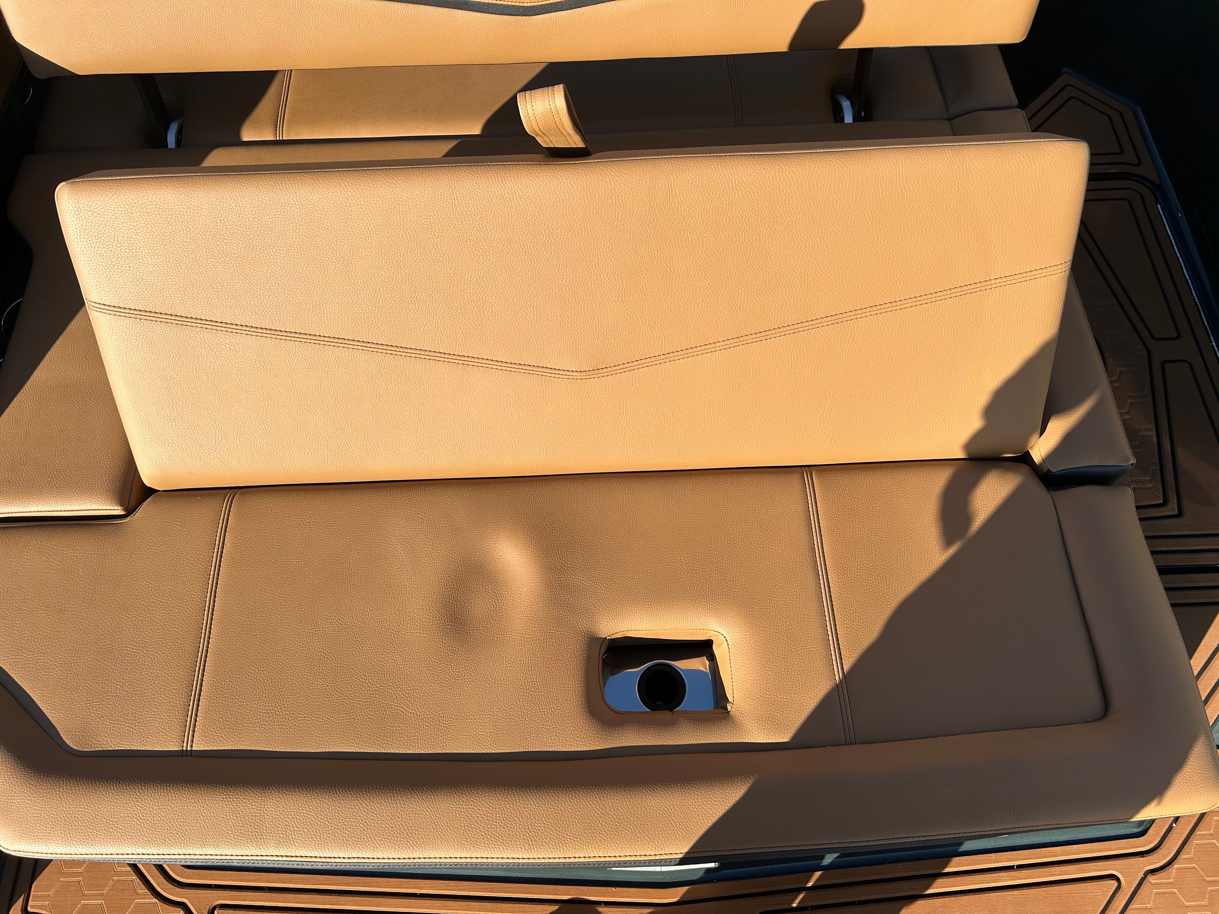 The Cobalt R6 Surf is packed with premium features designed to enhance your boating experience. The Upper Surf Accent and Surf Mid Hull Side in Deep Teal, paired with the Accent Stripe in Rich Ebony and Hull Bottom in Deep Teal, create a striking visual statement. The interior, finished in Caramel, Carbon, and Ebony, offers both comfort and style, making every journey a pleasure.Special features include a Battery Maintainer/Charger, ensuring your boat is always ready for adventure, and Cobalt Letters in Black Satin for a touch of elegance. Stainless Steel Docking Lights provide enhanced visibility during evening outings, while the Electric Arch Prisma Black with Bimini in Ebony offers shade and protection from the sun. These thoughtful additions set the R6 Surf apart from other bowrider boats for sale, making it a standout choice for discerning buyers.