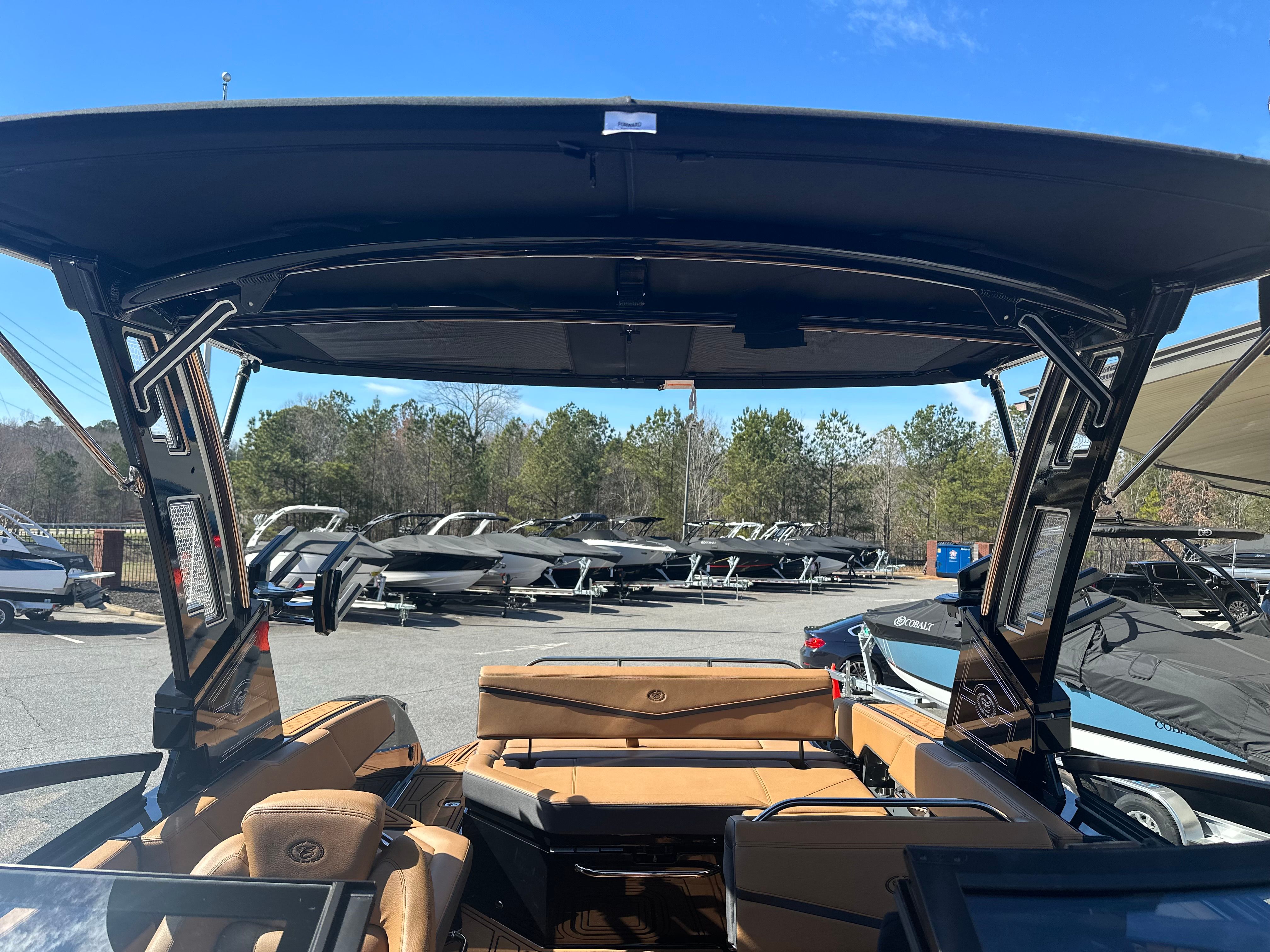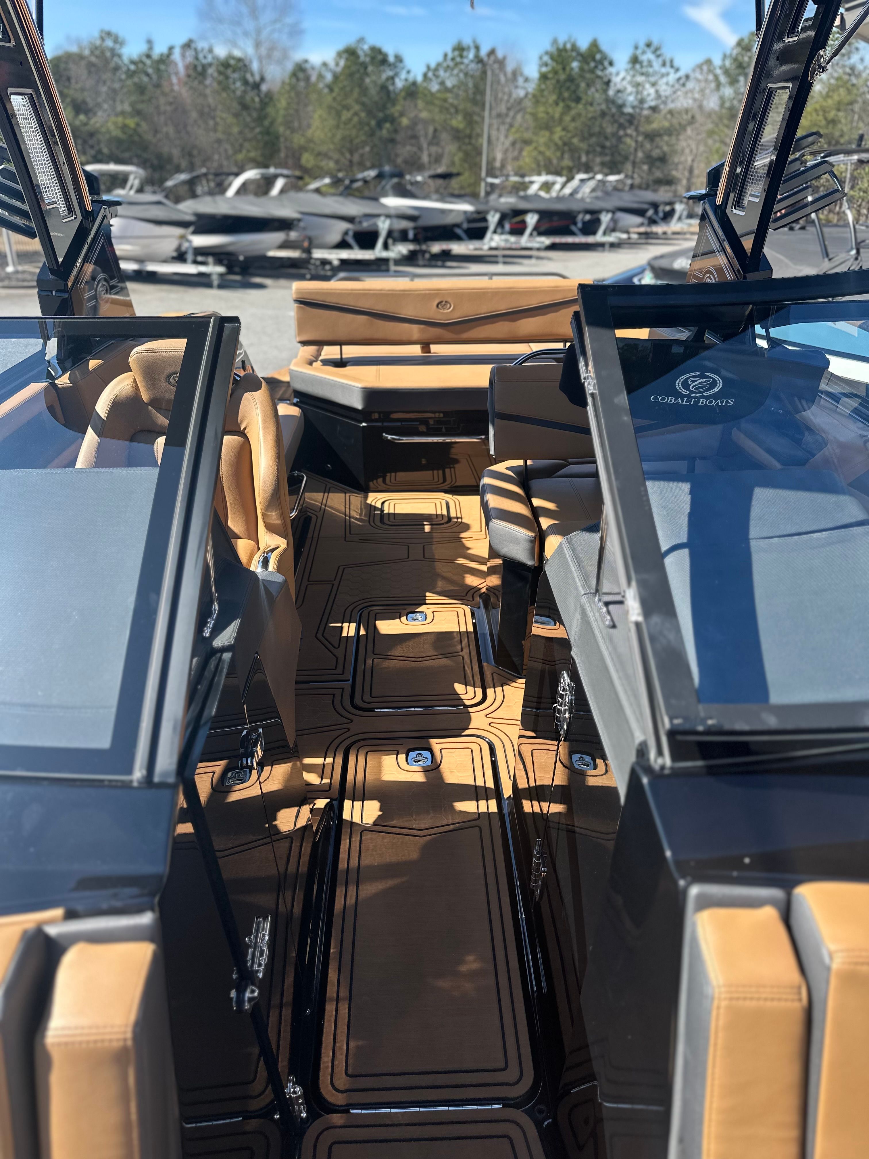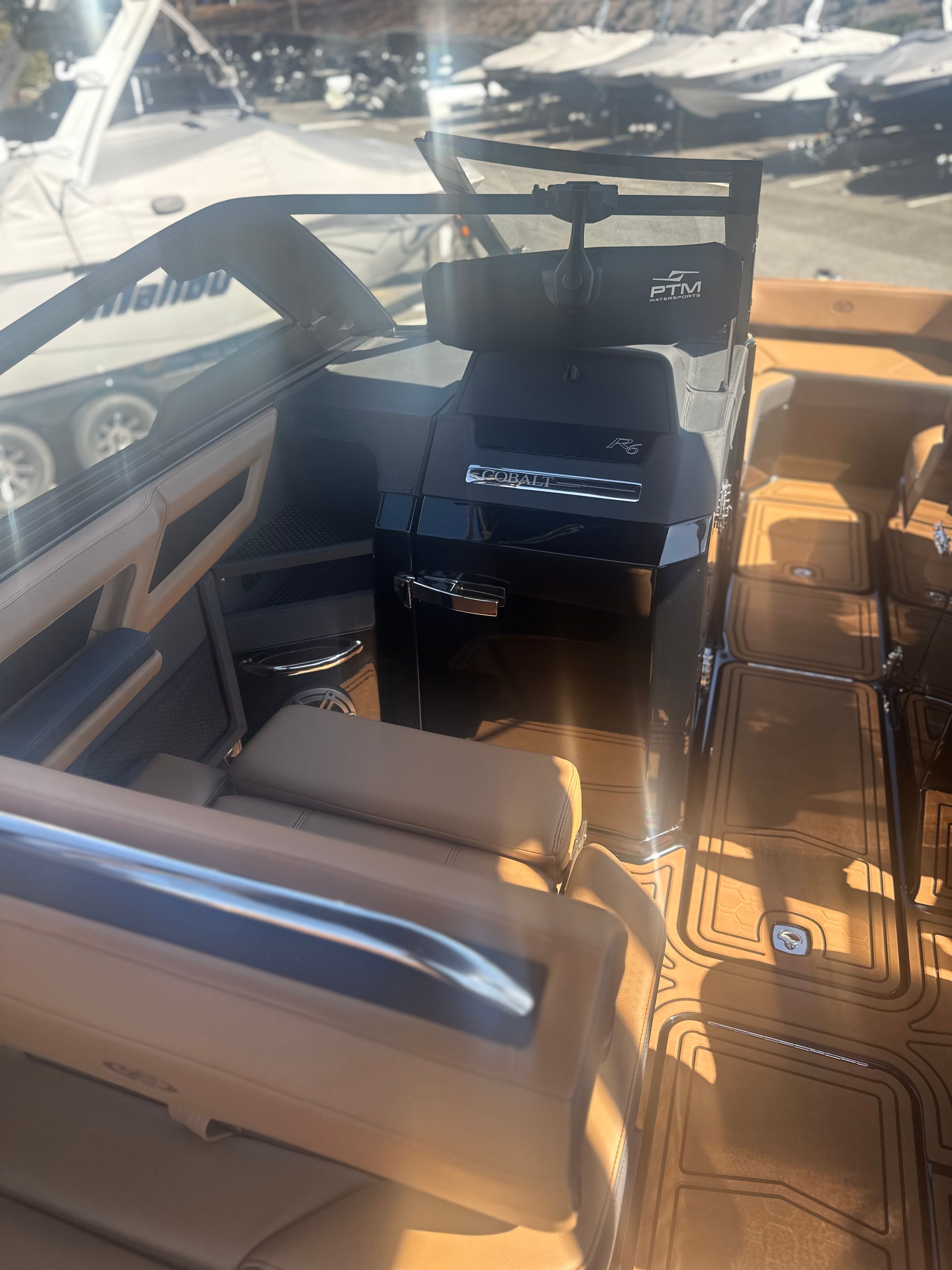 Practicality meets luxury in the Cobalt R6 Surf. The rear facing camera simplifies docking and tight maneuvers, making it easy for boaters of all experience levels to handle the vessel with confidence. The battery maintainer/charger ensures your boat is always ready to go, minimizing downtime and maximizing your time on the water.The folding electric arch and Ebony Bimini provide flexible shade options, while the stainless steel docking lights enhance safety during low-light conditions. The dual Garmin 8610 displays offer intuitive navigation and system monitoring, giving you peace of mind wherever your adventures take you.Storage is thoughtfully integrated throughout the boat, allowing you to stow gear, snacks, and personal items securely. The ergonomic layout makes it easy to access everything you need, so you can focus on enjoying your time on the water.