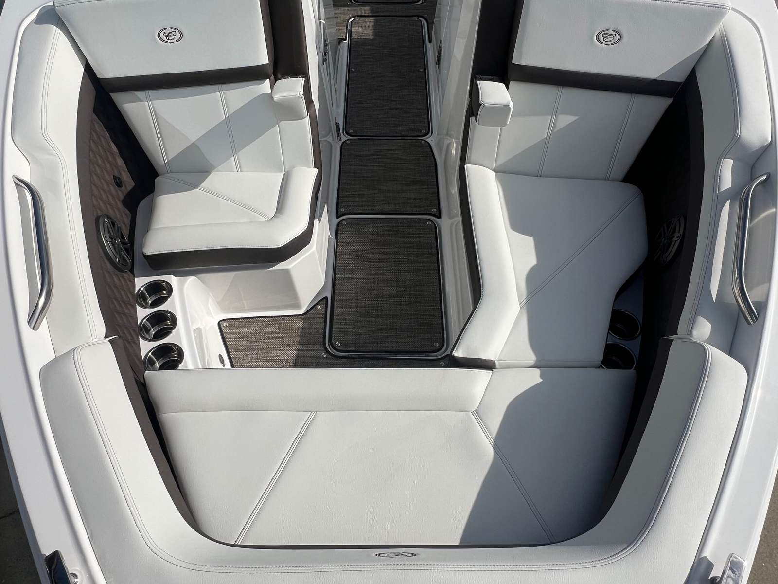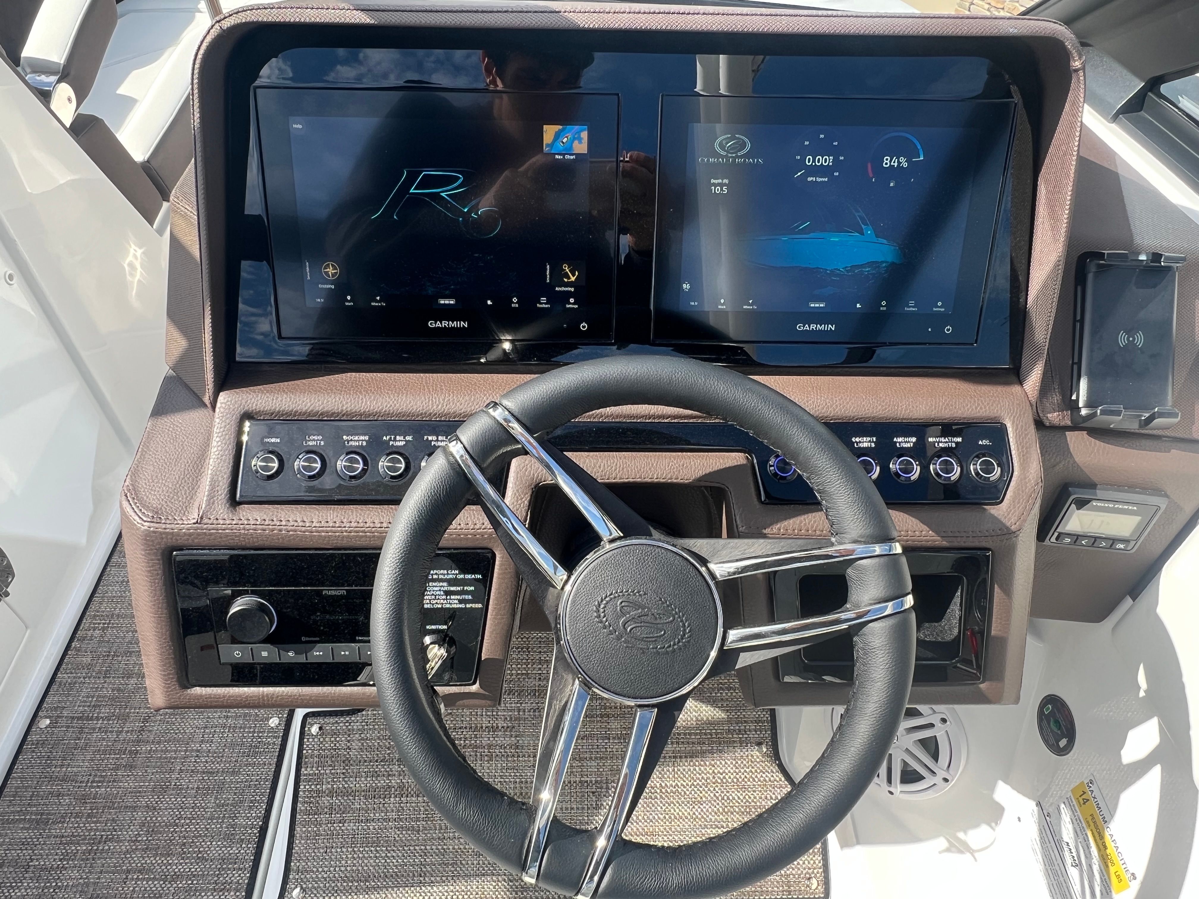Owning the Cobalt R6 means embracing a lifestyle of fun, relaxation, and social connection. The spacious bowrider layout is perfect for entertaining, with plenty of seating for guests to lounge, chat, or soak up the sun. The plush flooring and LED accent lighting create a welcoming environment, whether you are hosting a sunset cocktail hour or enjoying a quiet morning on the water. The advanced cockpit technology ensures that every journey is smooth and enjoyable, while the powerful engine provides the thrill of speed and agility.The R6’s thoughtful design makes it easy to transition from high-energy water sports to laid-back cruising. The bimini top offers shade when you need it, and the ample deck space allows for easy movement throughout the boat. With its combination of luxury finishes and practical features, the Cobalt R6 is designed to maximize your enjoyment on every outing.
