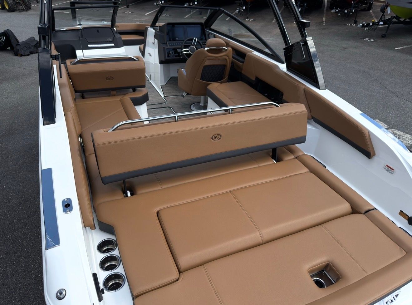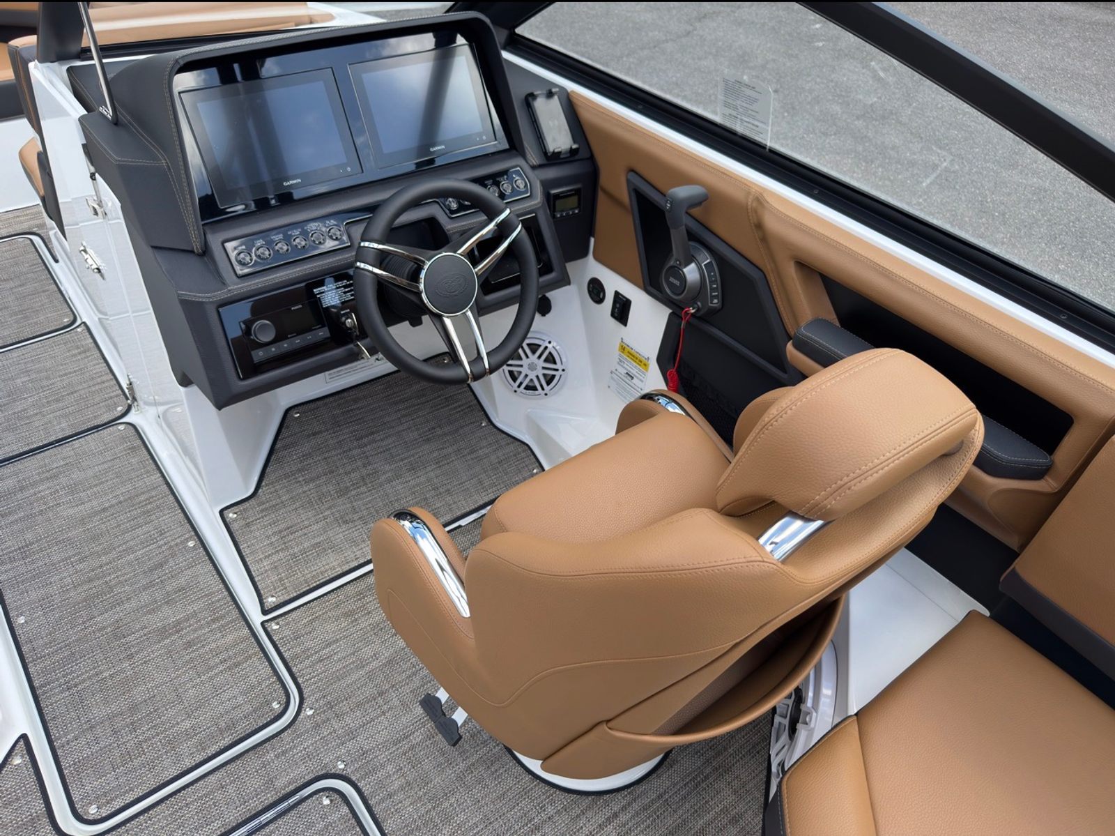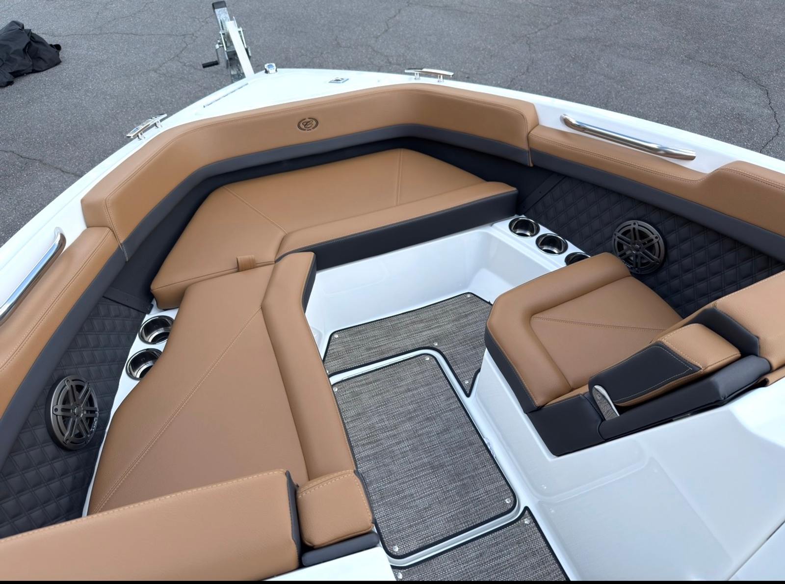 The 2026 Cobalt R6 is loaded with premium features that enhance both comfort and convenience. The Arch, E2 - Black (Folding) with Ebony Bimini provides stylish shade and protection from the sun, while the interior in Caramel and Carbon exudes sophistication and warmth. The solid teak dinette table with cockpit recept is perfect for onboard dining and socializing, adding a touch of elegance to your gatherings.For those who appreciate advanced technology, the glass cockpit with dual Garmin 8610 displays offers intuitive navigation and control, ensuring you stay informed and in command at all times. The stainless steel docking lights not only enhance visibility during evening returns but also add a polished look to the boat’s exterior. The battery maintainer/charger (110V) keeps your systems powered and ready, while the floor covering in Seagrass, Raw Umber provides a comfortable and stylish surface underfoot.Additional features such as the flagpole with flag add a classic nautical touch, making the Cobalt R6 as visually appealing as it is functional.