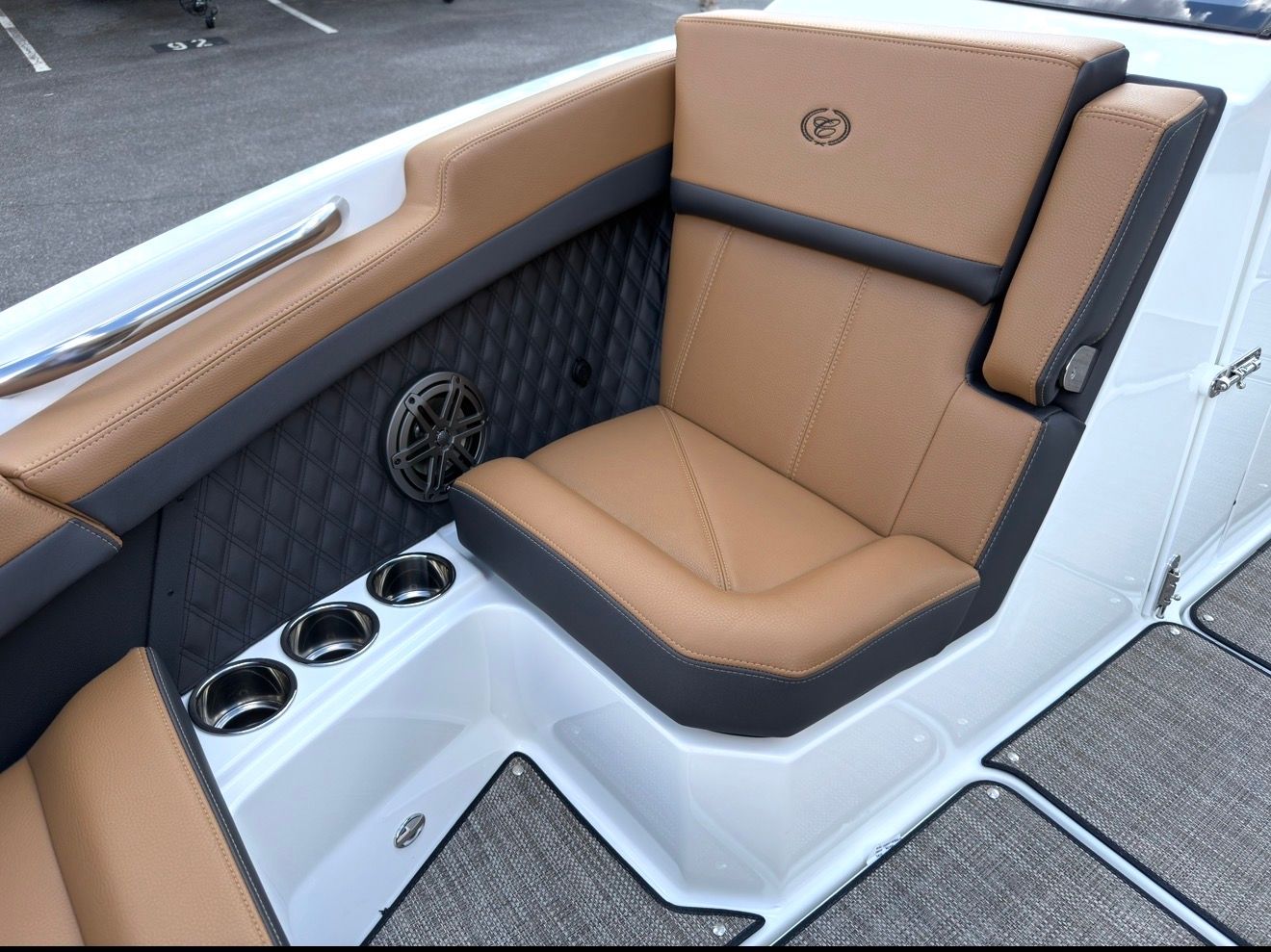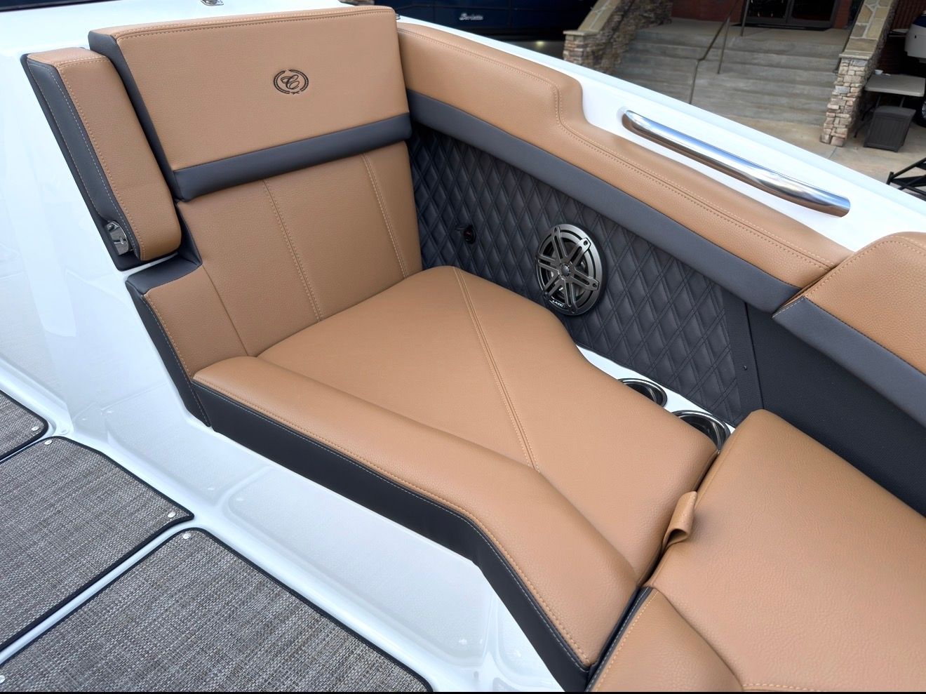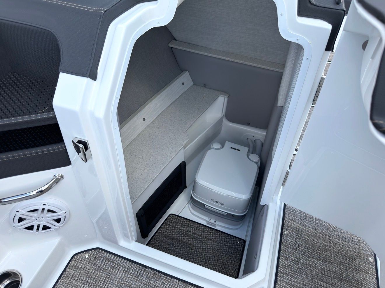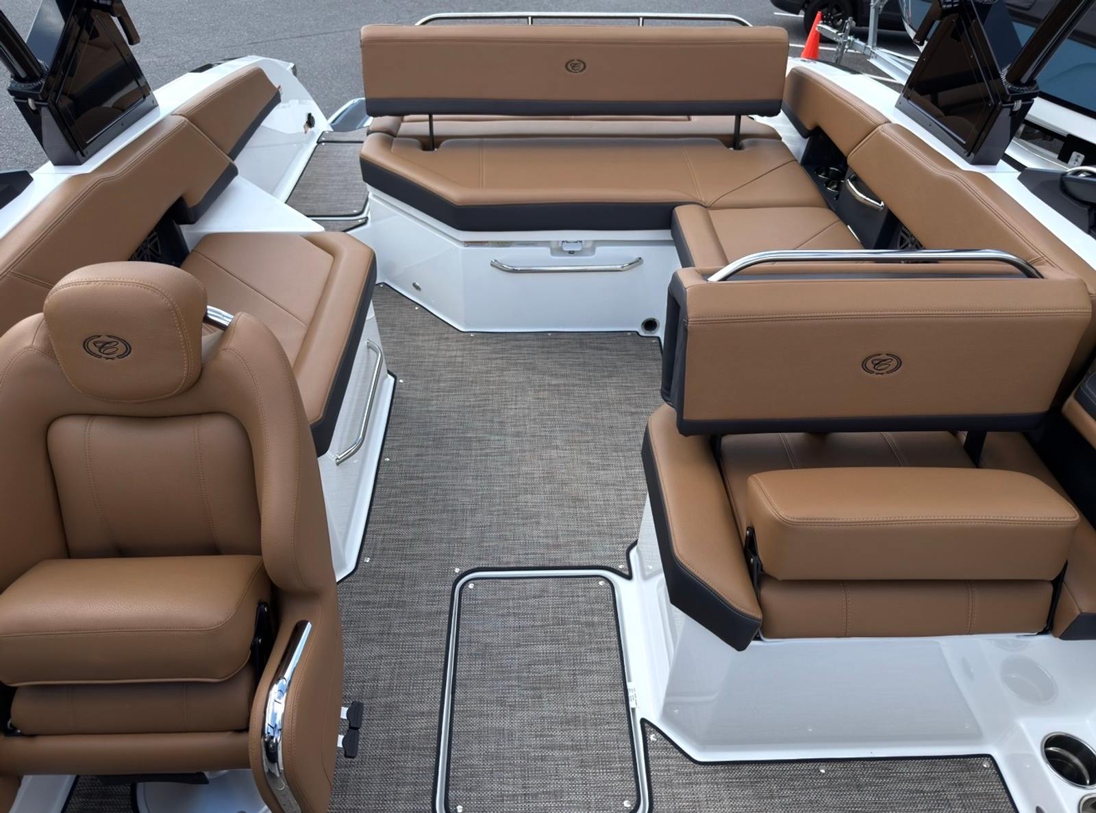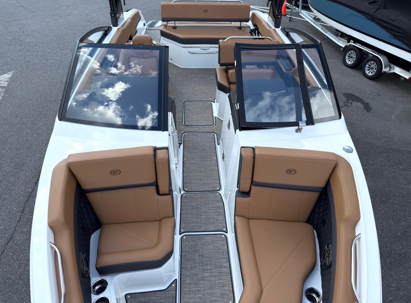 Beyond its luxurious features, the Cobalt R6 Bowrider is engineered for practical enjoyment. The folding arch makes storage and transport more convenient, while the battery maintainer/charger ensures your boat is always ready for spontaneous adventures. The stainless steel docking lights make docking safer and easier, especially in low-light conditions, and the durable Seagrass floor covering is both attractive and easy to maintain.The advanced glass cockpit with dual Garmin 8610 displays simplifies navigation and monitoring, giving you peace of mind as you explore new waters. The spacious cockpit and thoughtful layout provide plenty of room for gear, snacks, and personal items, making day trips and longer excursions equally enjoyable.
