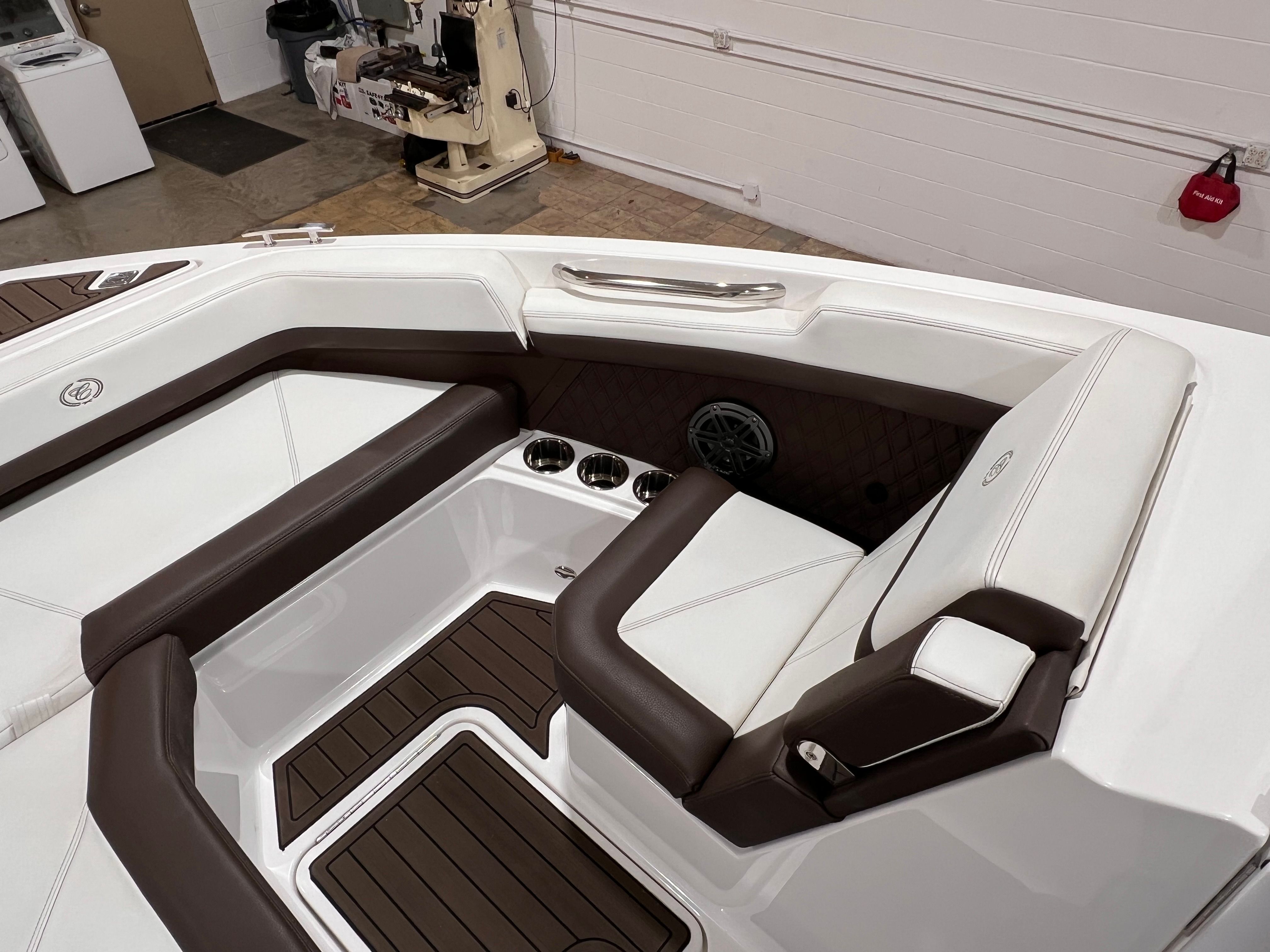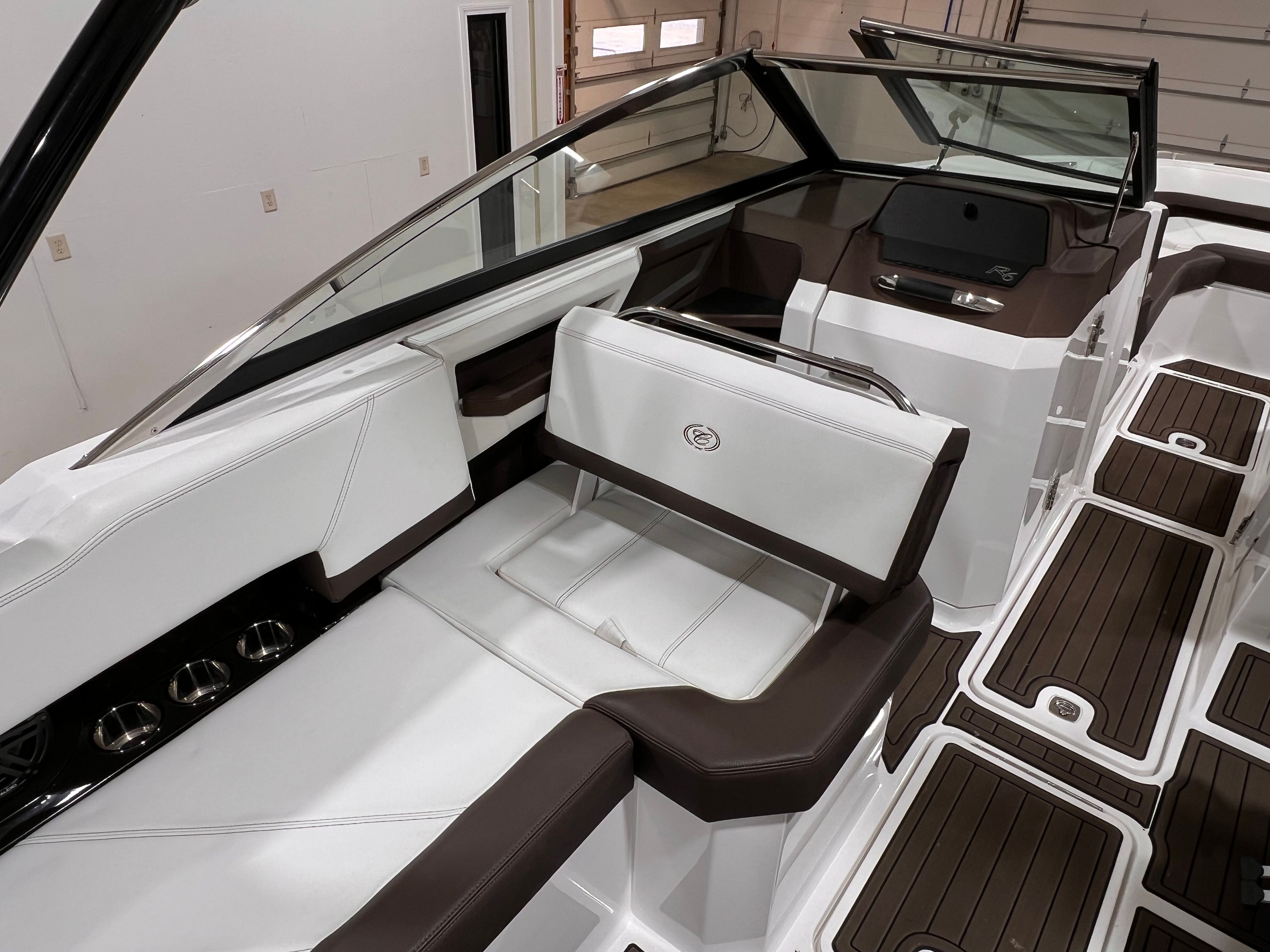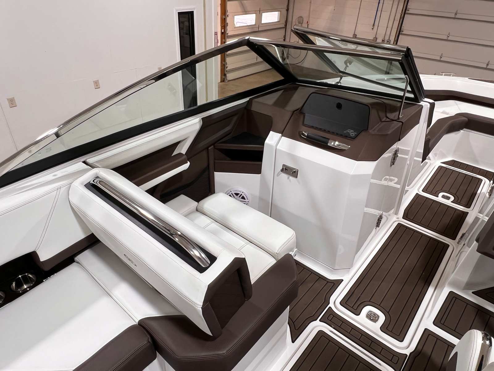 The 2023 Cobalt R6 is loaded with features that enhance both comfort and convenience, making every outing a pleasure. As a premium bowrider boat for sale, the R6 offers a spacious and thoughtfully designed cockpit, plush seating, and high-quality materials throughout. The open bow layout provides plenty of seating for guests, while the ergonomic helm ensures the captain enjoys both comfort and control. The R6’s generous length allows for a roomy swim platform, making it easy to access the water for swimming, lounging, or watersports. Storage compartments are strategically placed to keep your gear organized and out of the way, ensuring a clutter-free environment on board.