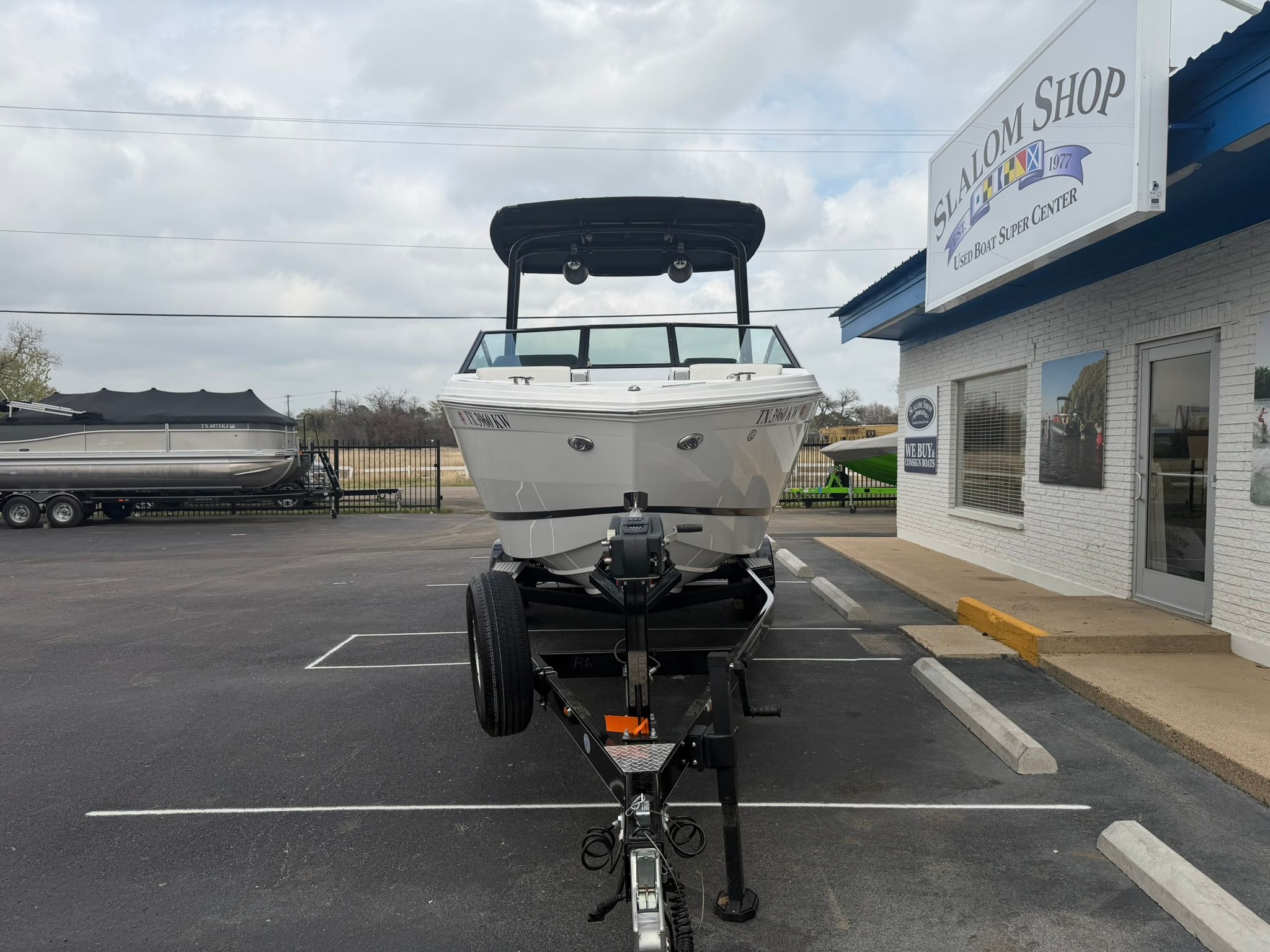 Now available at our Used Boat Super Center in Lewisville, this 2023 Cobalt R6 is a premium luxury bowrider known for its exceptional build quality, performance, and refined design. Finished in a classic white gelcoat with a black boot stripe and a white interior with grey accents, this R6 is powered by a Volvo 5.3L V8 producing 350 horsepower with only 30 hours.
