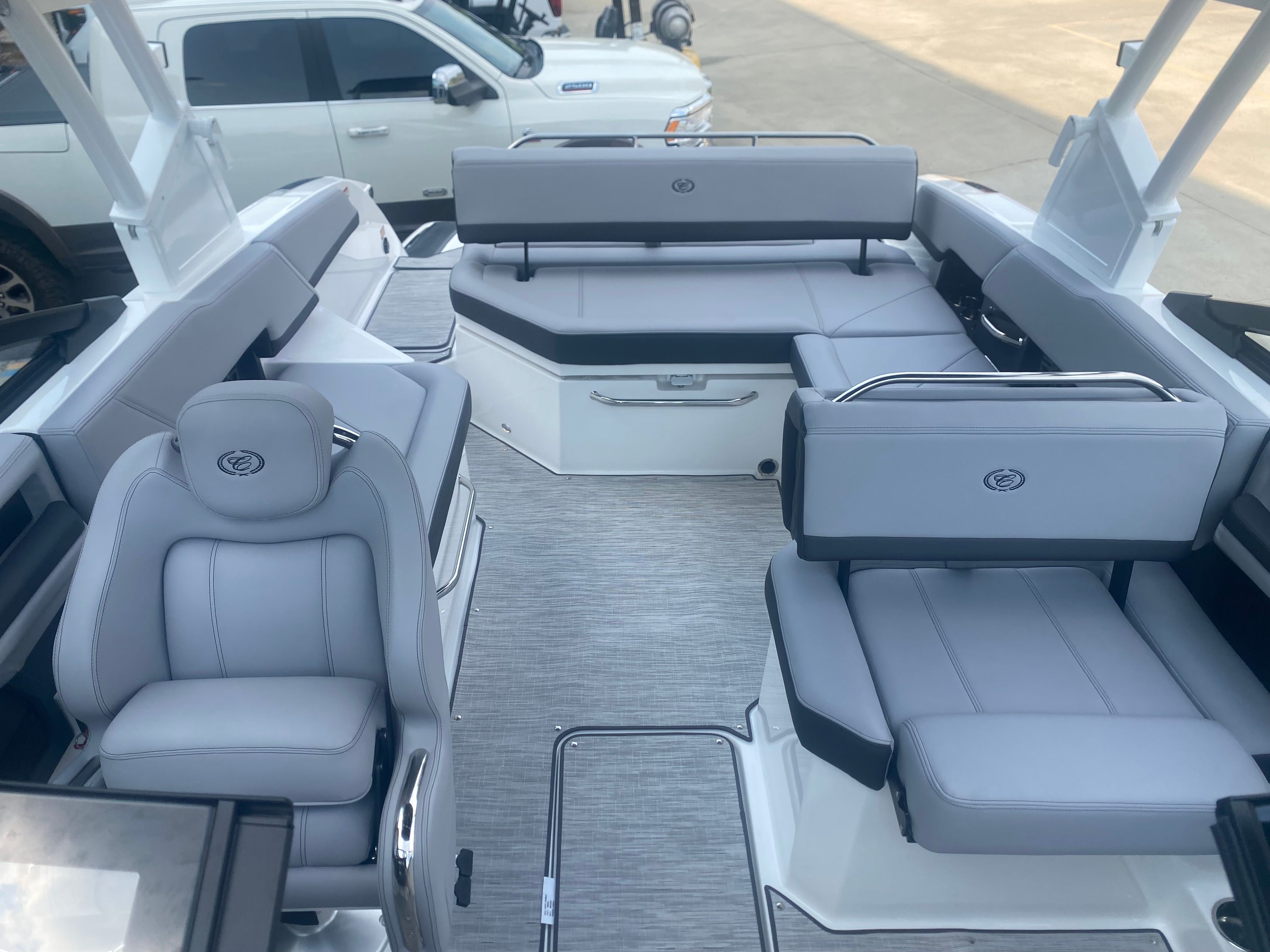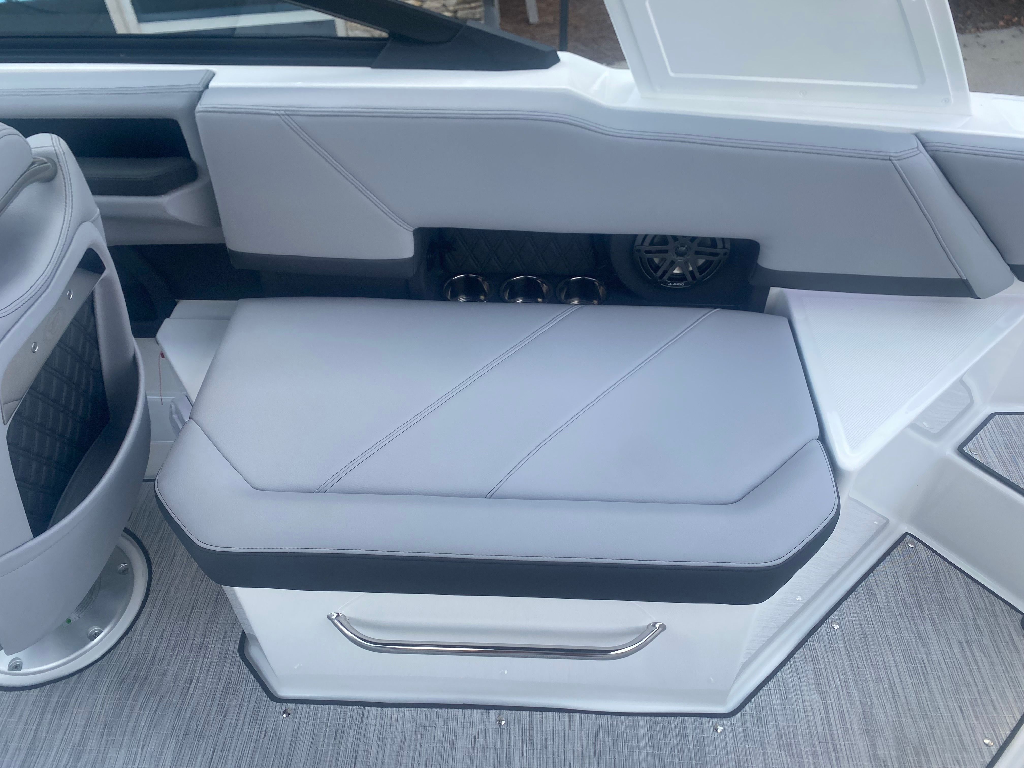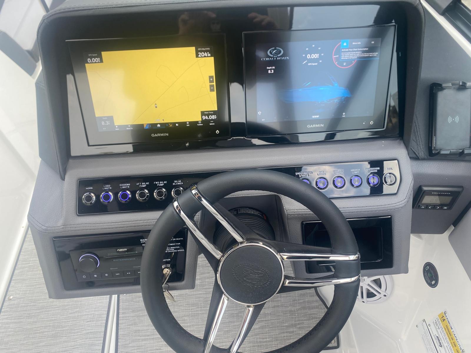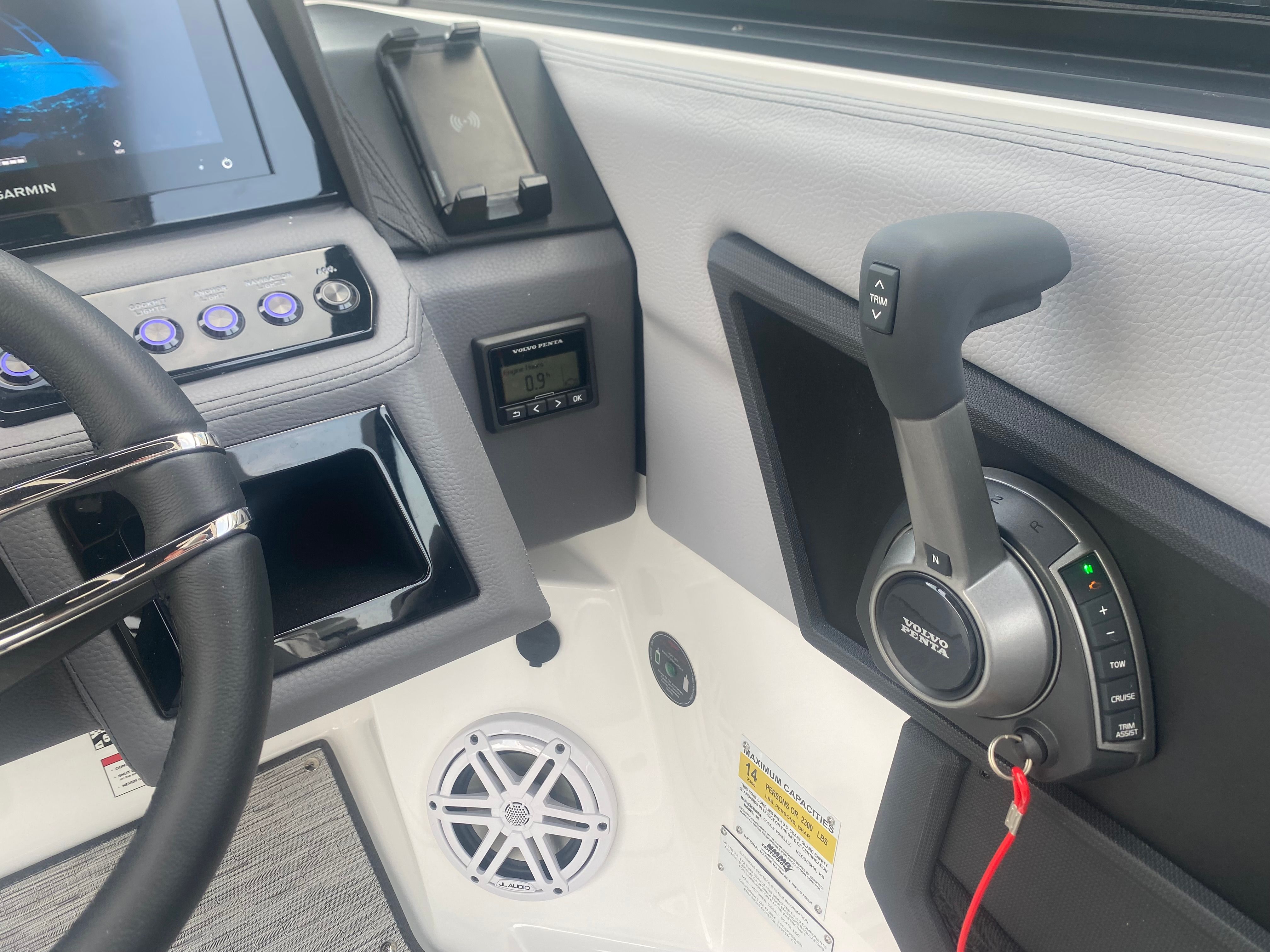 The 2026 Cobalt R6 Bowrider is packed with premium features that elevate your boating experience. The E2 Arch in White (Folding) with a Bimini in Ebony offers both style and functionality, providing shade and protection from the sun while maintaining a sleek profile. Stainless Steel Docking Lights enhance visibility during evening excursions and add a touch of sophistication to the boat’s exterior. The Black Satin Cobalt Letters further accentuate the boat’s elegant branding.Step aboard and you’ll be greeted by the luxurious Interior in Frost/Slate, complemented by Silver Ash Seagrass floor covering. This combination creates a refined and comfortable environment, perfect for relaxing after a swim or entertaining guests. The Glass Cockpit features Dual Garmin 8610 displays, offering advanced navigation and system monitoring at your fingertips. With the Battery Maintainer/Charger (110V), you can keep your boat’s electrical systems in top condition, ensuring readiness for every adventure.