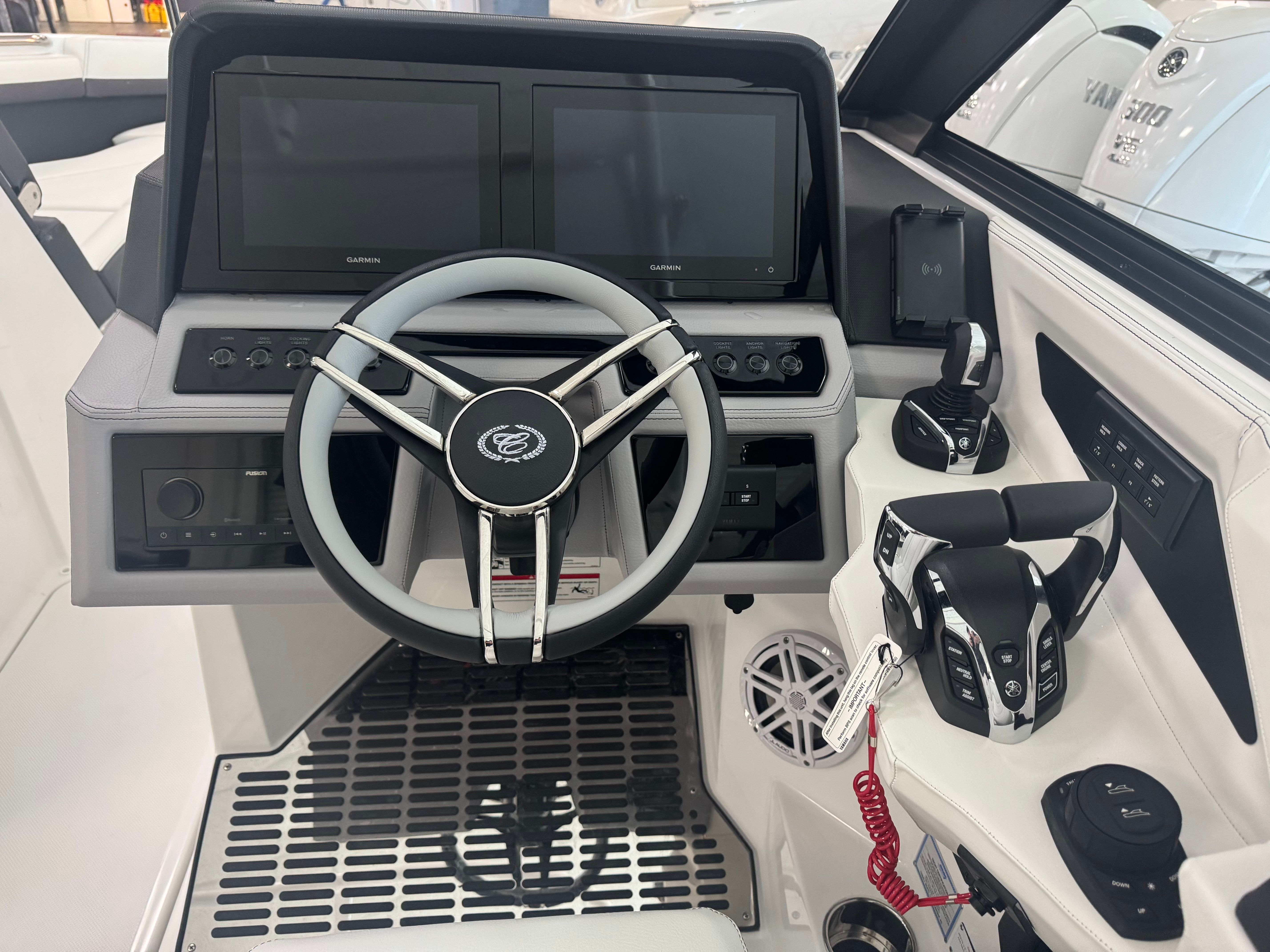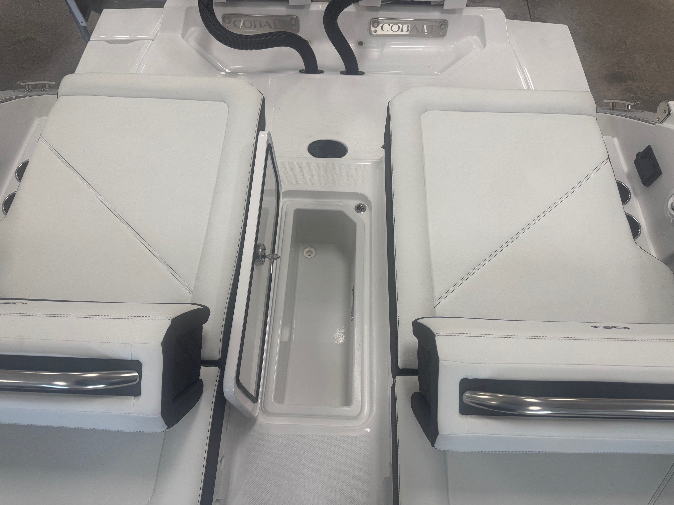 The Cobalt R8 OB is designed with practicality in mind, making ownership as enjoyable as it is exciting. The dual engines not only provide impressive power but also offer enhanced maneuverability for easy docking and tight turns. Fender Clips with Line simplify the process of securing your boat, reducing stress when arriving at the dock.Storage solutions are integrated throughout the boat, allowing you to keep gear, snacks, and personal items organized and out of the way. The Head with Electric Porcelain Toilet adds a level of convenience that is especially appreciated during longer outings, ensuring comfort for all passengers.Fuel efficiency is a hallmark of Cobalt engineering, allowing you to spend more time on the water and less time at the pump. The durable Stainless Steel Foot Tread and high-quality construction ensure your investment is protected for years to come.