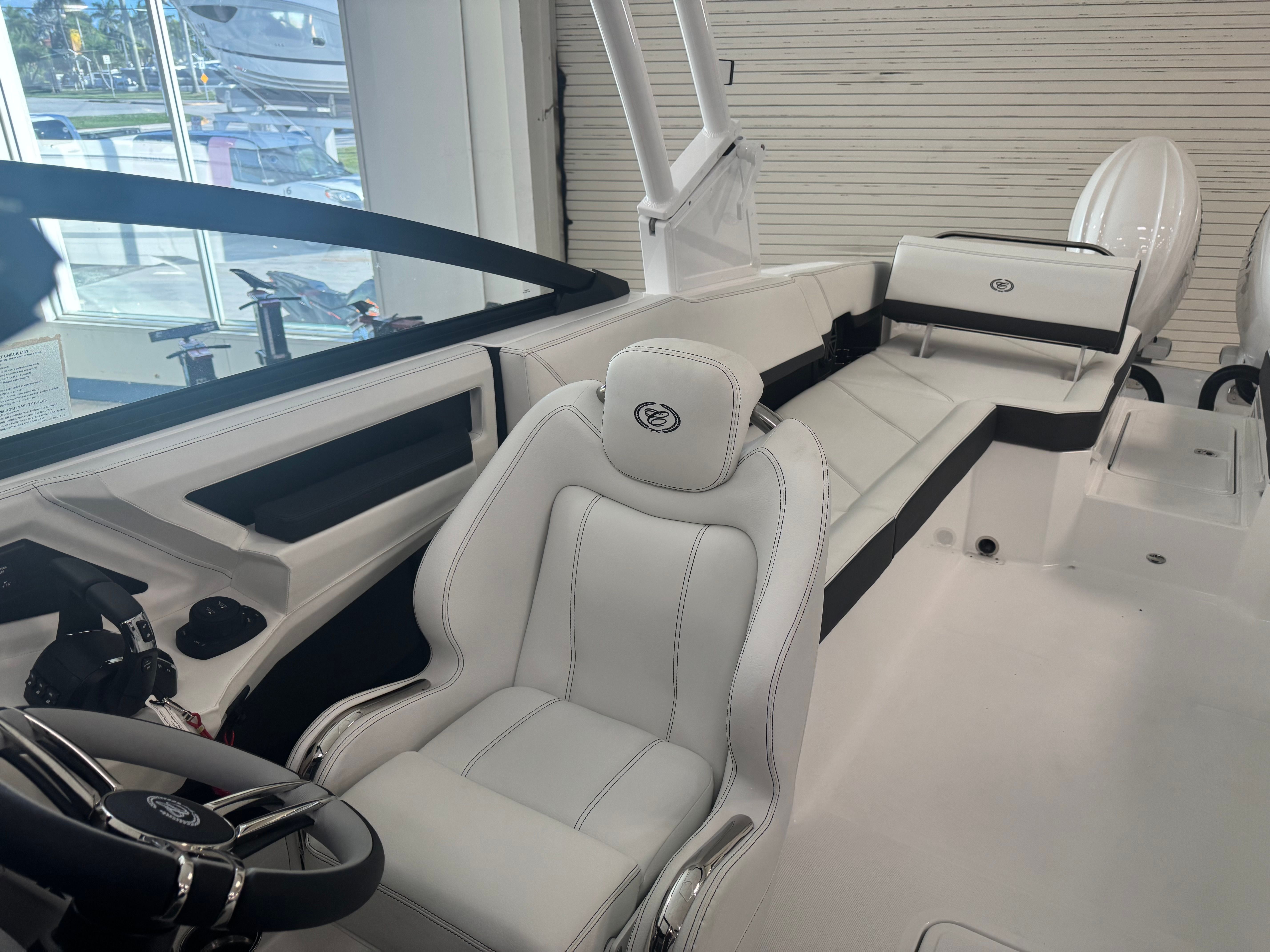 The 2026 Cobalt R8 OB is a brand-new, 27-foot bowrider designed for those who demand both style and substance. Measuring 27.08 feet in length, this boat offers ample space for family and friends, making it perfect for social gatherings, water sports, or relaxing cruises. The R8 OB’s modern lines and bold accent stripe ensure you will turn heads at every marina, while its Obsidian Windshield adds a touch of sophistication and protection from the elements.