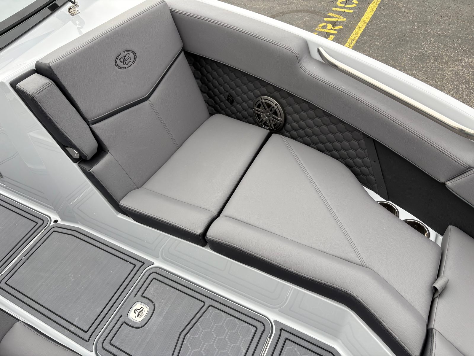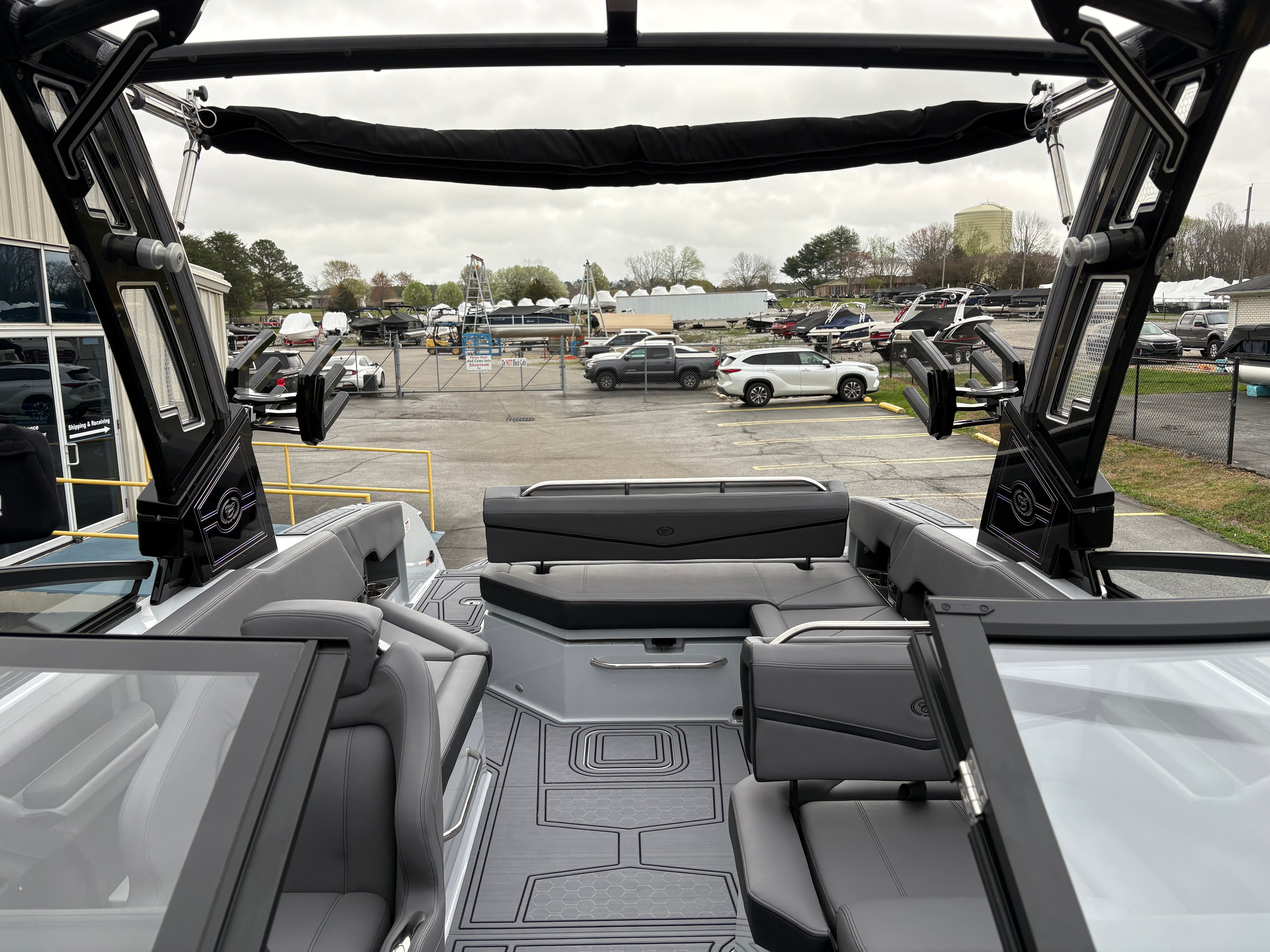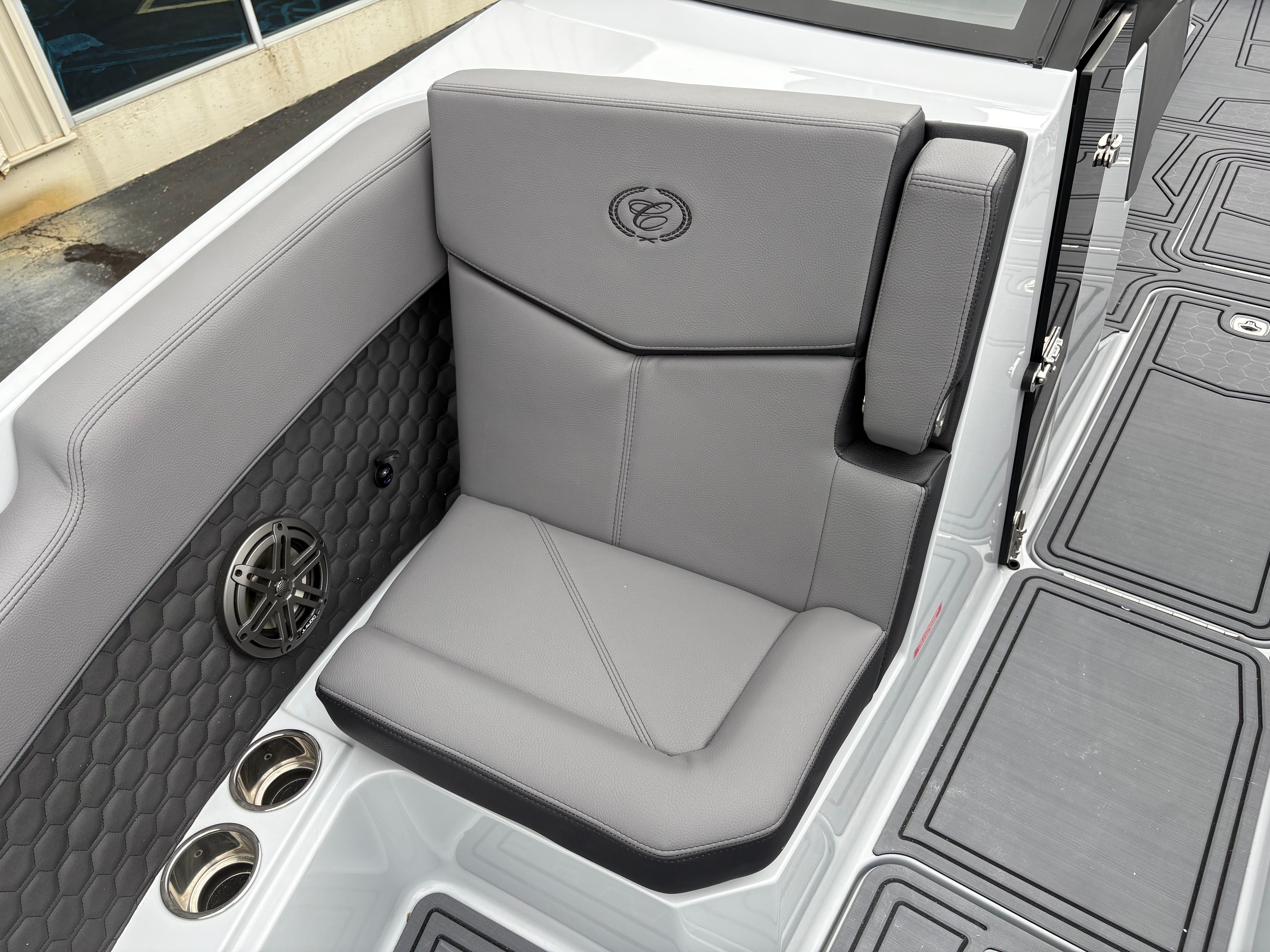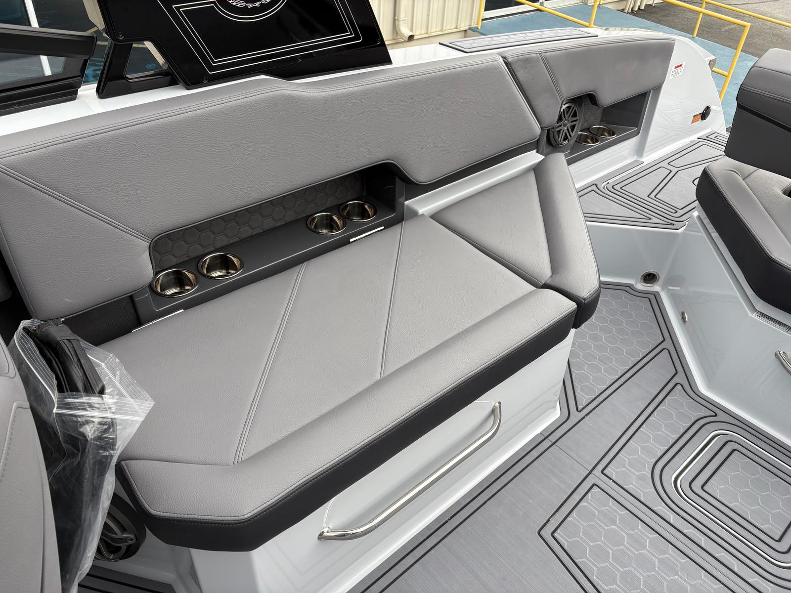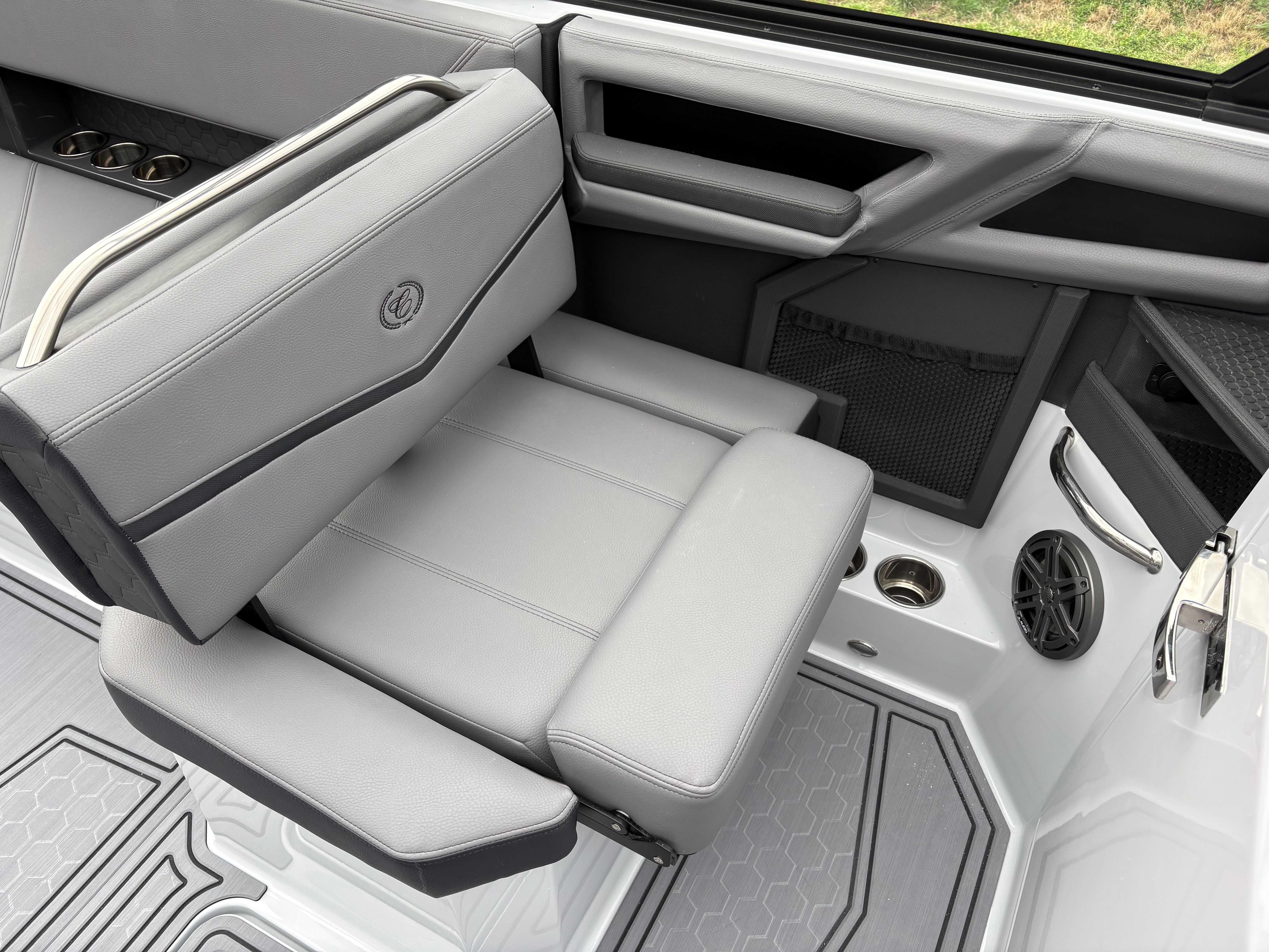 Beyond its impressive performance and stylish design, the 2026 Cobalt R8 Surf offers practical benefits that make boat ownership a breeze. The boat’s generous length provides ample storage for gear, water toys, and personal items, keeping the deck clutter-free and organized. The stainless steel docking lights enhance visibility and safety during nighttime docking, while the battery maintainer/charger ensures your boat is always powered up and ready to go.The El Arch Prisma Black Fold with Bimini adds versatility, allowing you to quickly adapt to changing weather conditions and keep your guests comfortable throughout the day. The forward-drive system simplifies docking and maneuvering in tight spaces, reducing stress and making every trip more enjoyable. With its combination of luxury, performance, and convenience, the R8 Surf is designed to fit seamlessly into your lifestyle.