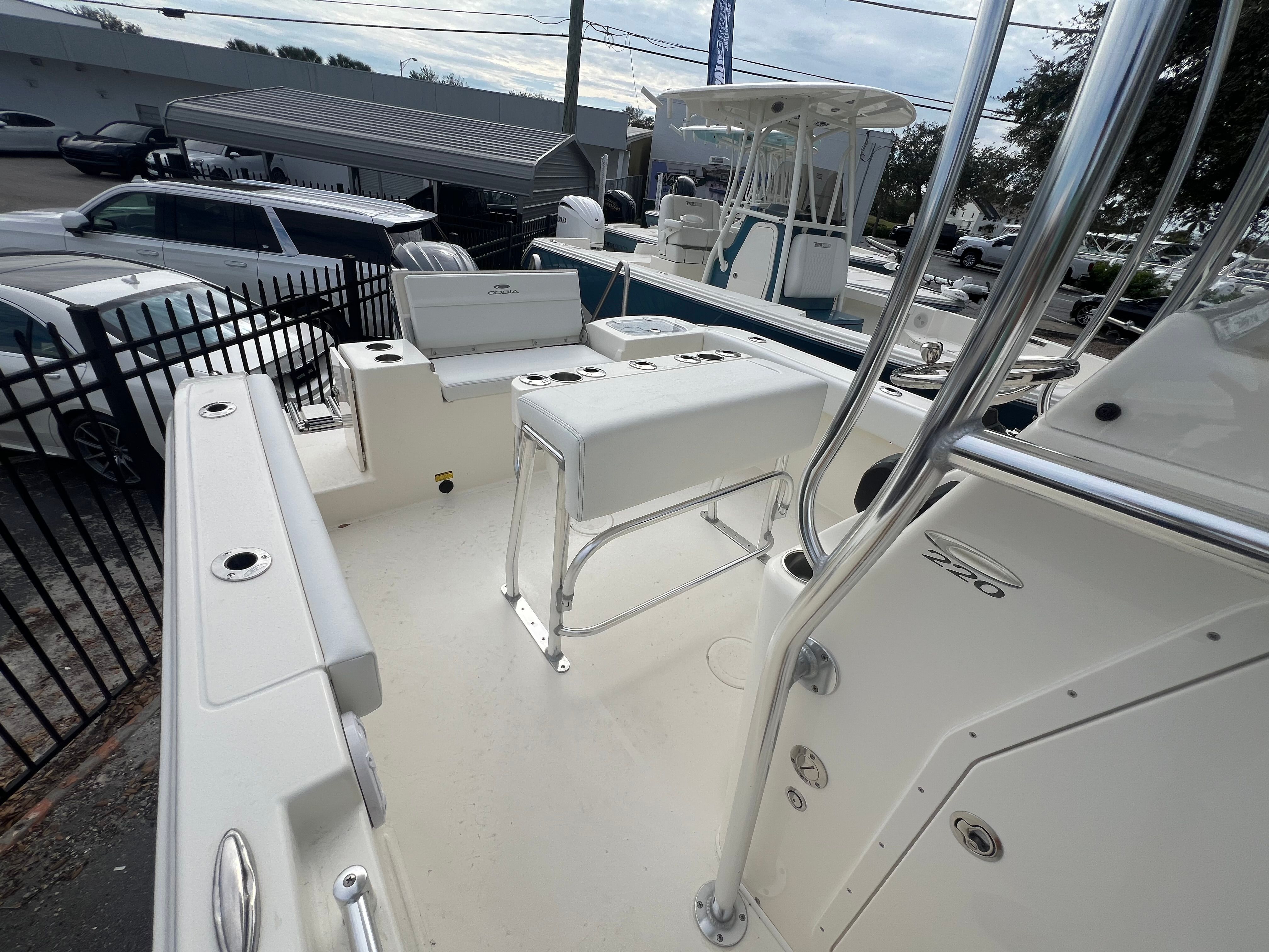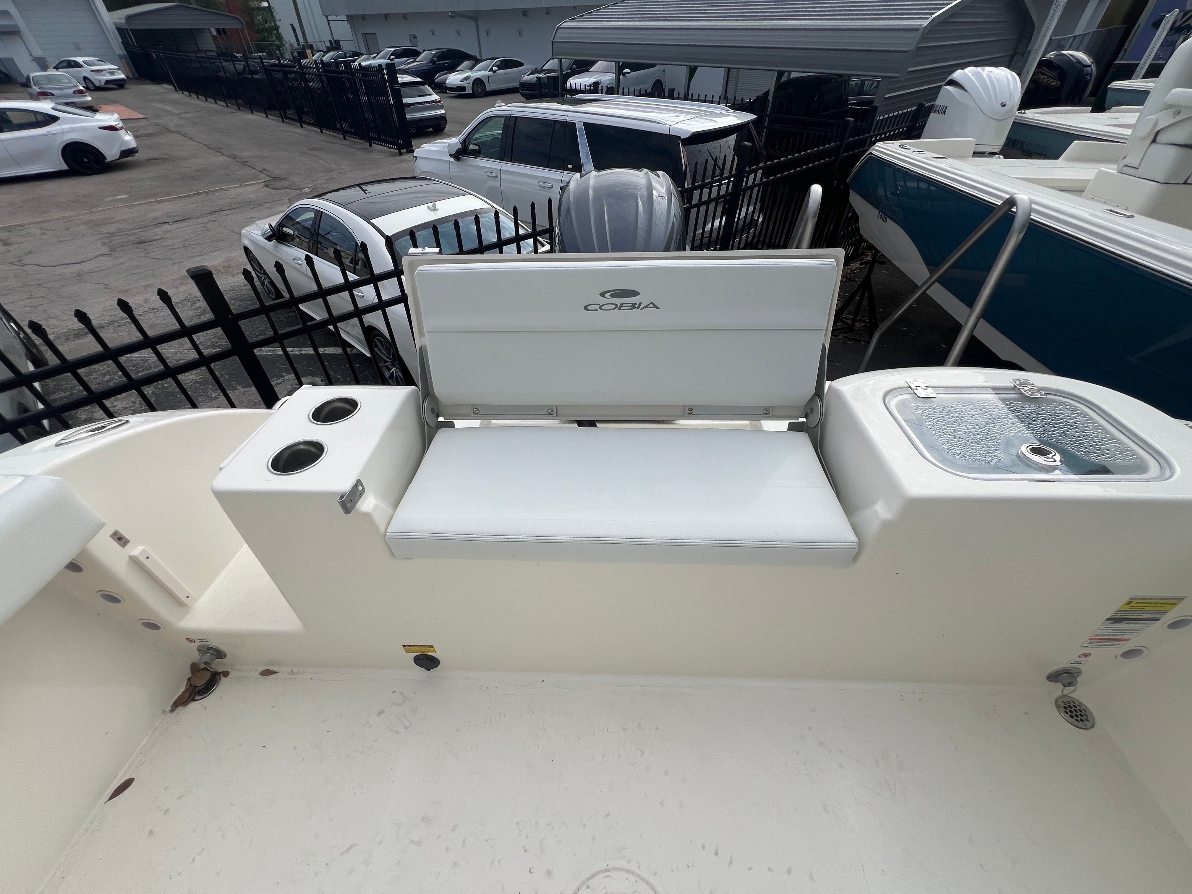 The Cobia 220 CC is designed with practicality in mind, making ownership both easy and enjoyable. Its manageable length of just over 21.5 feet allows for straightforward docking and maneuvering, whether you are at a busy marina or a quiet dock. The efficient Yamaha F200XSA engine ensures you can spend more time on the water and less time at the fuel dock, while the boat’s thoughtful storage solutions keep your equipment and personal items secure and accessible.The pump-out head with a deck fitting adds a level of convenience that is especially appreciated during longer trips, providing comfort and privacy for you and your guests. The robust construction and quality materials used throughout the boat ensure durability and low maintenance, so you can focus on making memories rather than worrying about upkeep.