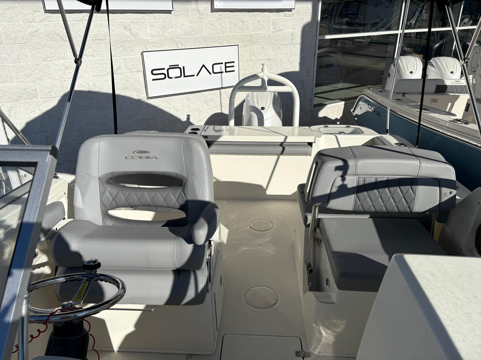 Owning the Cobia 220 DC Dual Console boat means embracing a lifestyle of fun, relaxation, and adventure. The spacious layout is perfect for social gatherings, allowing family and friends to spread out and enjoy the ride. The upgraded steering wheel and digital electric steering make piloting the boat a breeze, even for those new to boating. With the Yamaha 200XSA2 engine, you’ll experience reliable power and efficiency, ensuring you can explore further and stay out longer.The plush cushions and ample seating create a welcoming environment for sunbathing, dining, or simply unwinding with loved ones. The Bimini Top offers protection from the elements, so you can enjoy your time on the water regardless of the weather. The JL Audio stereo system adds a layer of entertainment, transforming every trip into a memorable event.